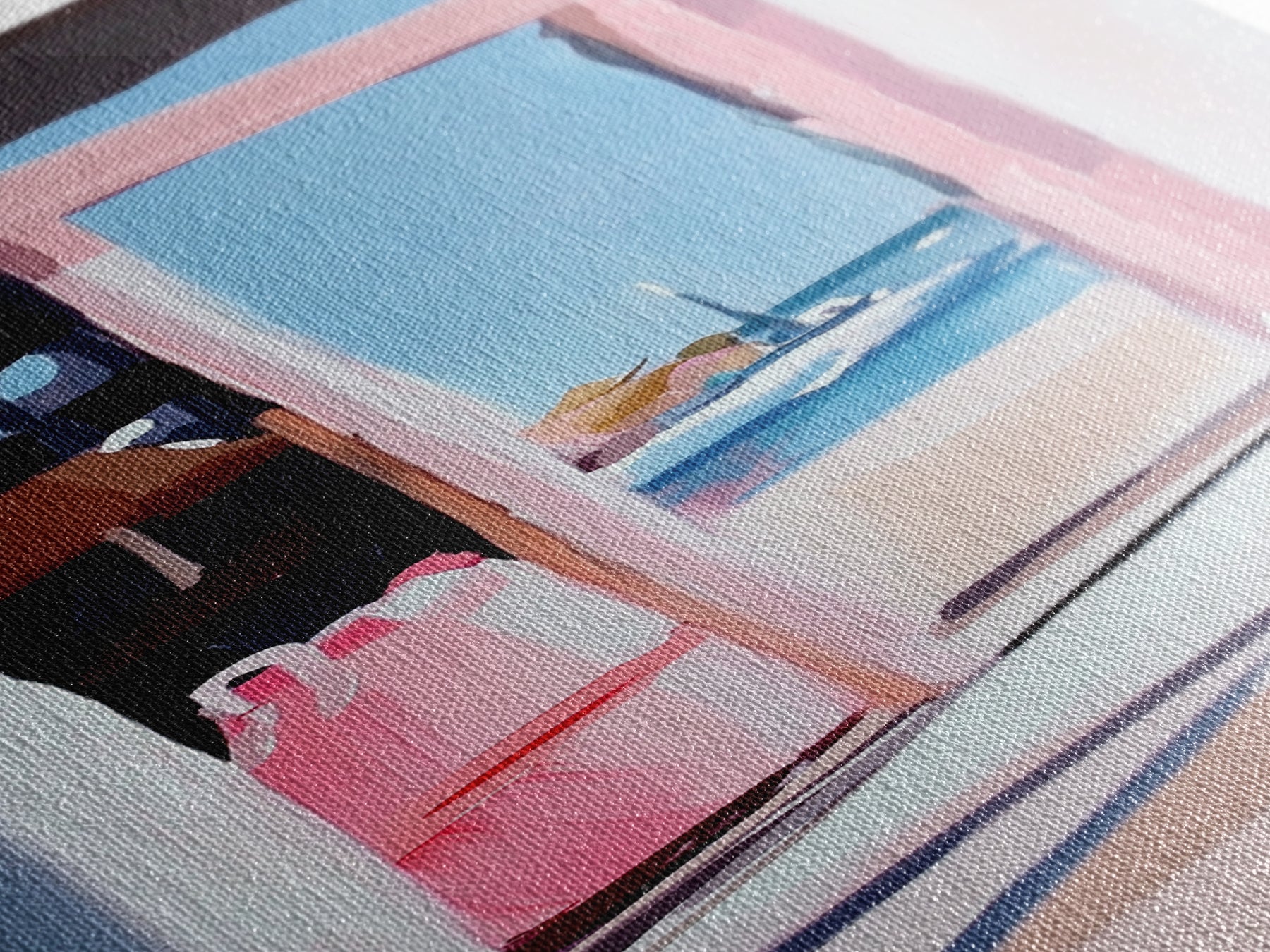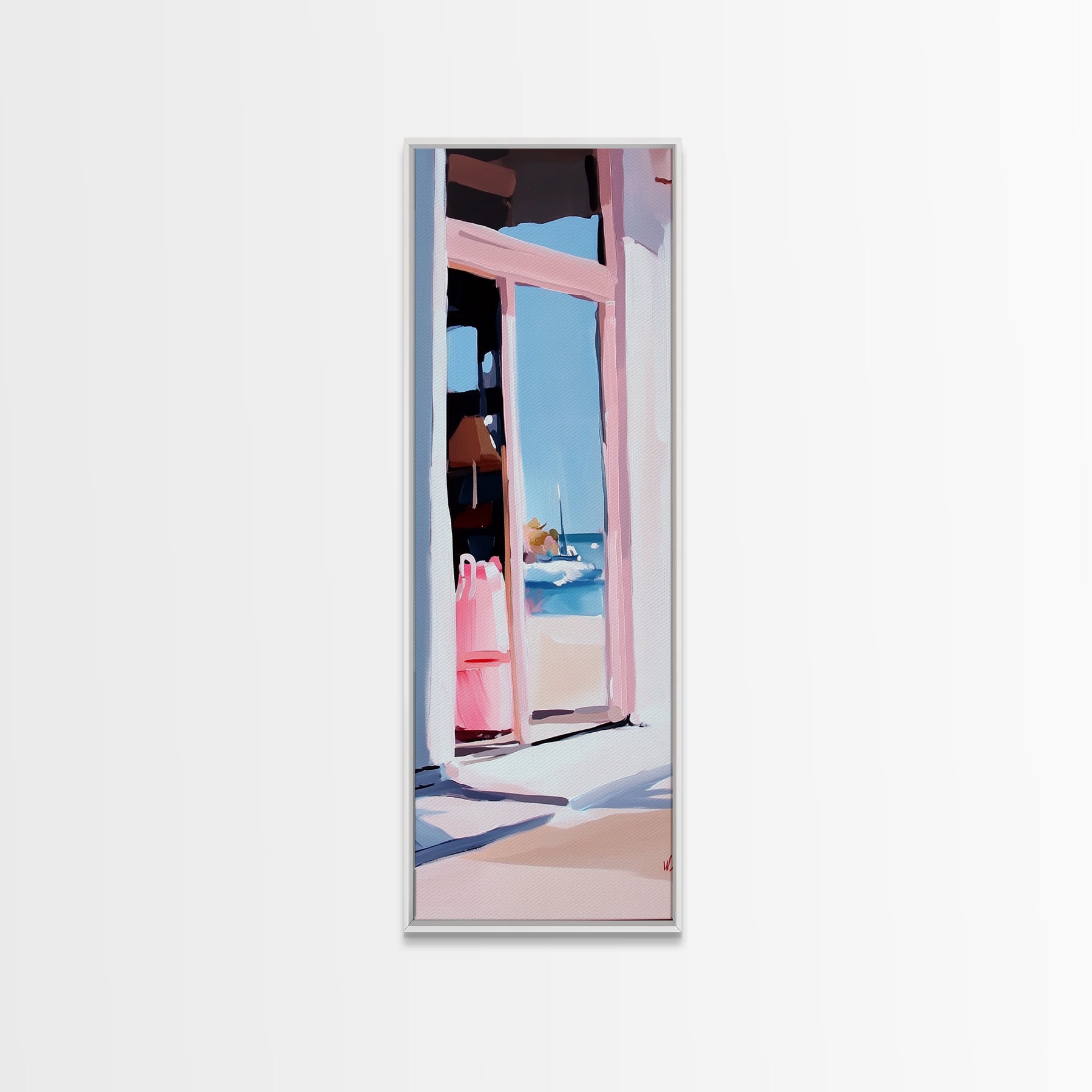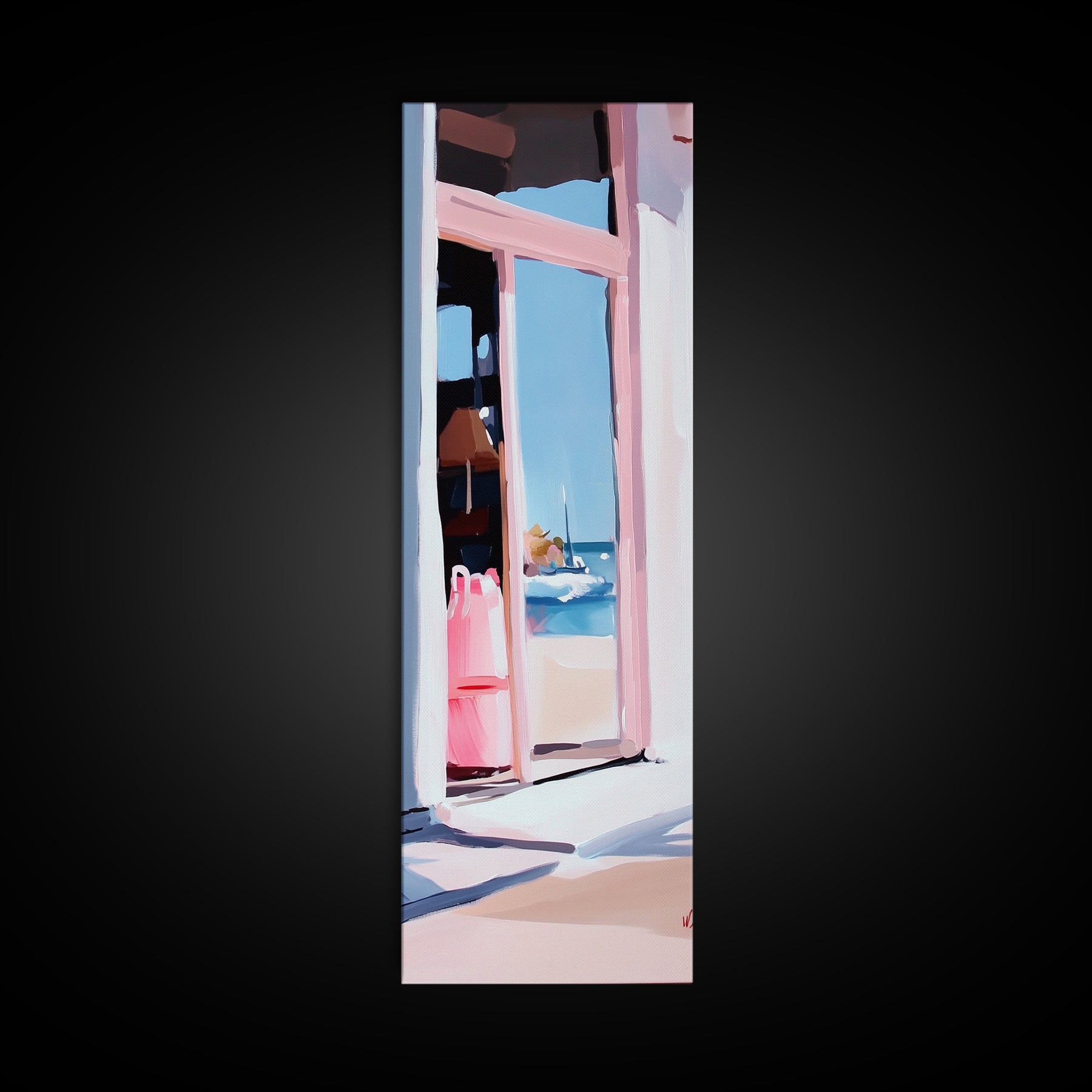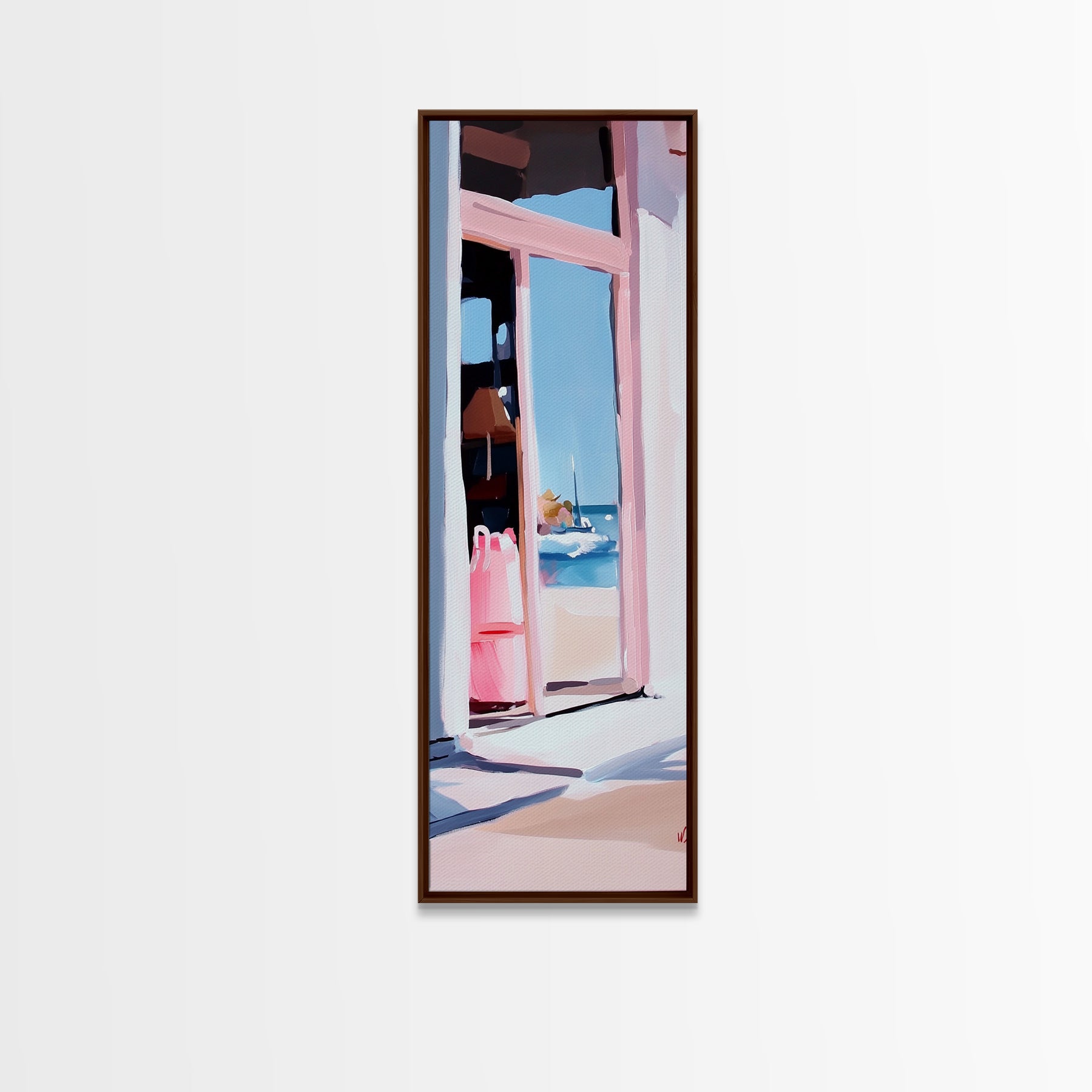 Ocean View, Beach Window, Coastal Reflection, Framed Canvas Print, Dreamy Seaside Scene, Living Room Wall Art, Minimalist Beach House