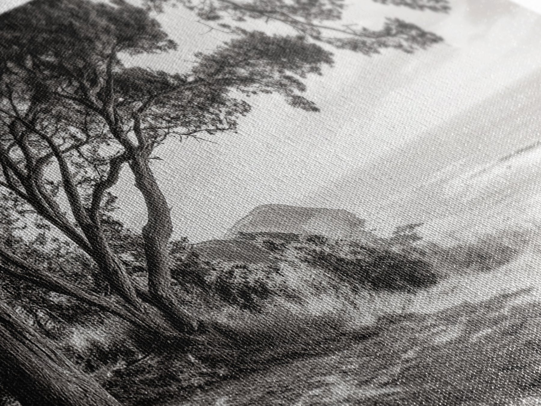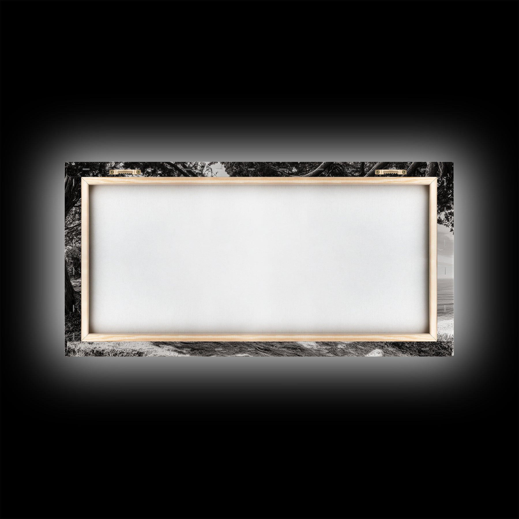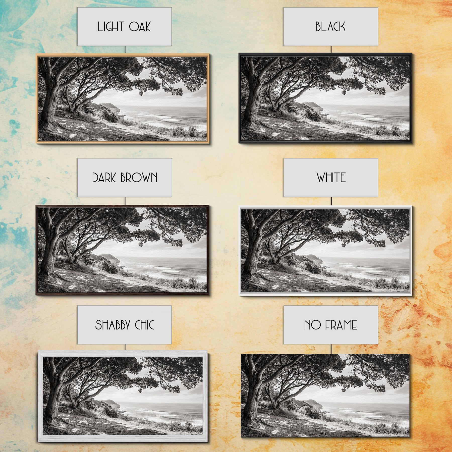 Ocean View, Coastal Trees, Cliffside Vista, Light and Shadows, Framed Canvas Print, landscape wall art, modern beach decor, boho living room