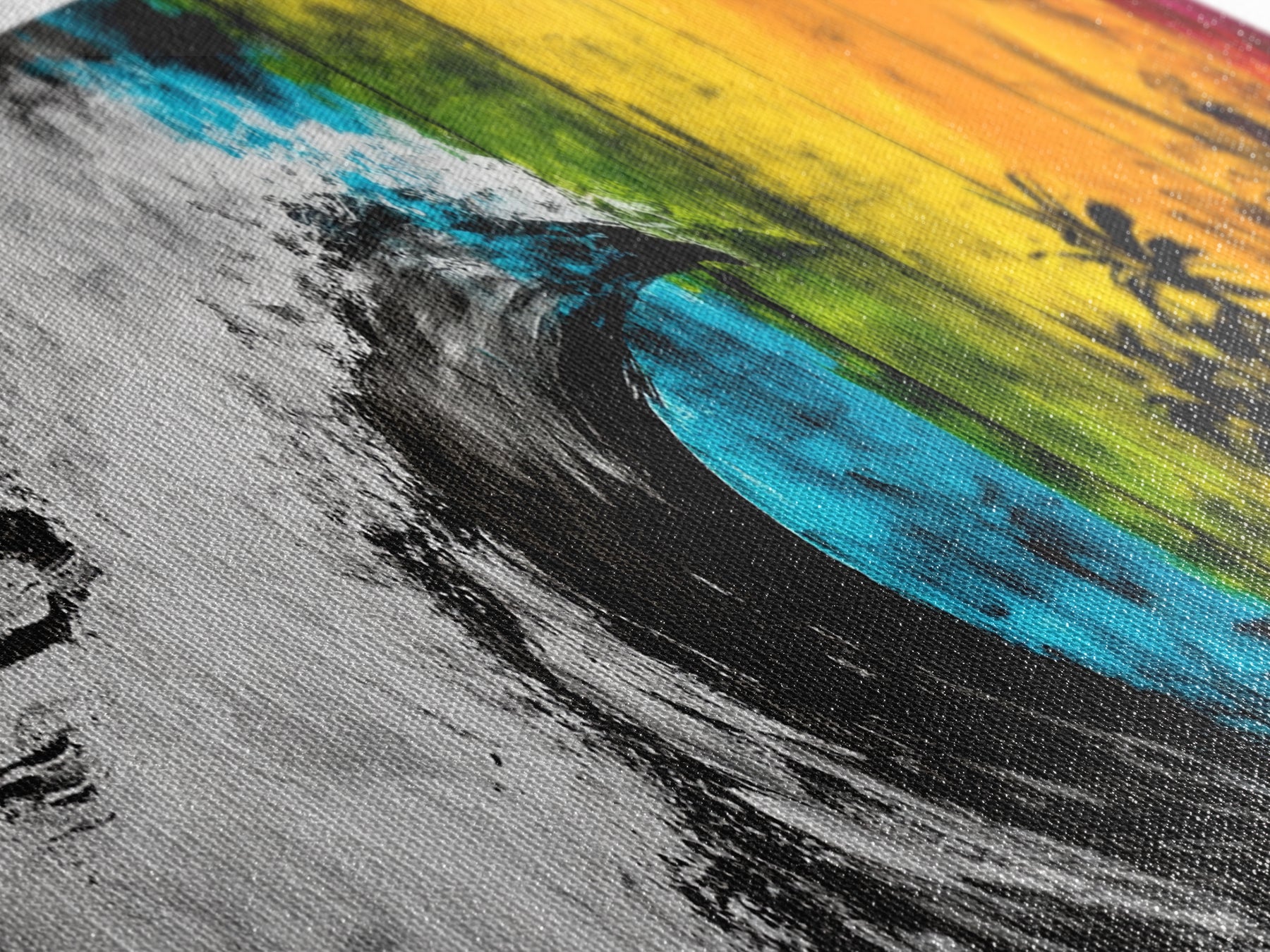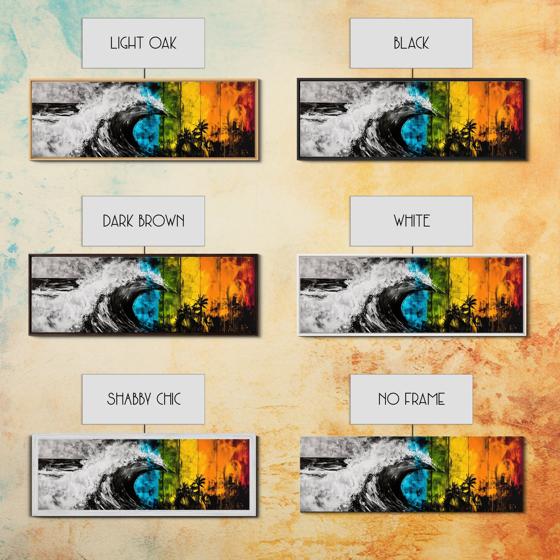 Ocean Wave Painting, Coastal Wall Art, Beach Sunset Decor, Tropical Nature Print, Vibrant Abstract Art, Framed Canvas Print