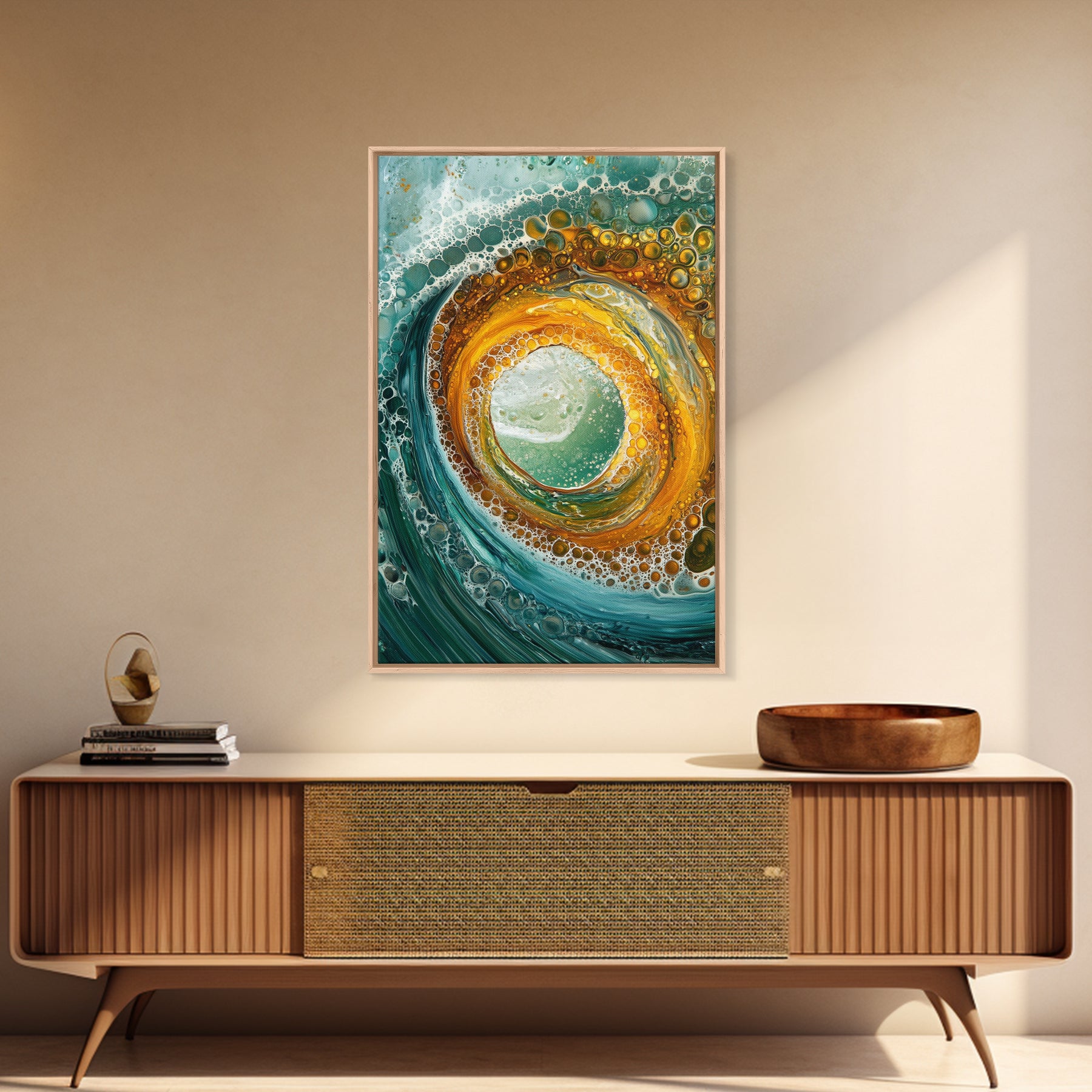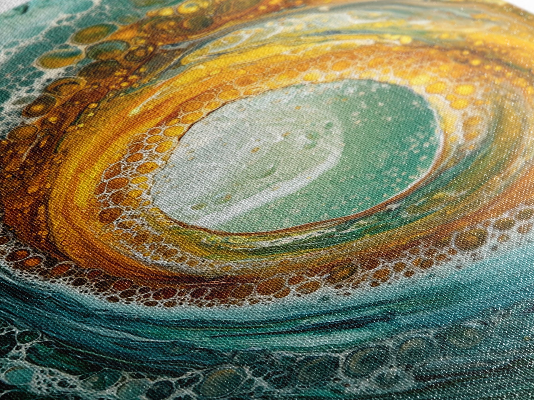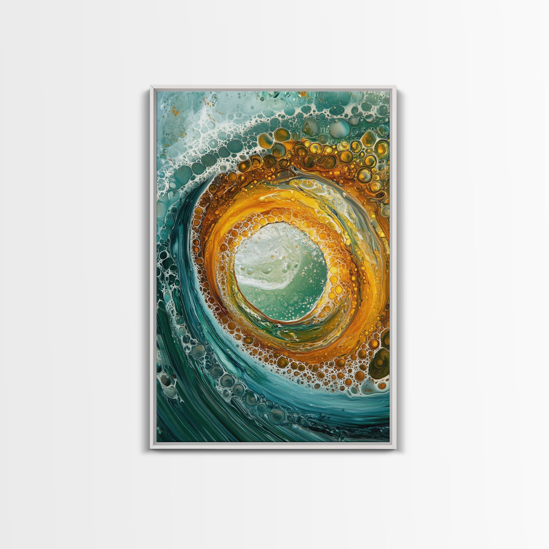 Ocean Wave Swirl Canvas Print | Abstract Beach Wall Art | Turquoise Gold Painting | Coastal Home Decor | Surfer Wall Art