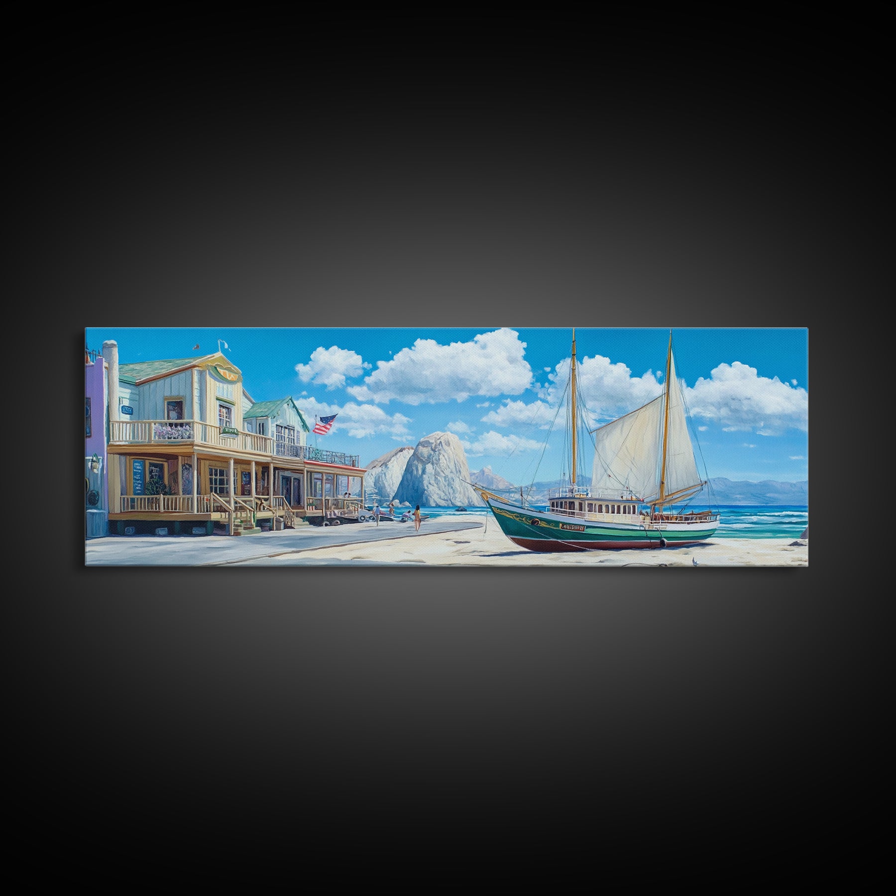 Panoramic Nautical Painting Print of Maine, Beach Art, Beach Decor, Seascapes Painting, Nautical Landscape Painting, Horizontal Art