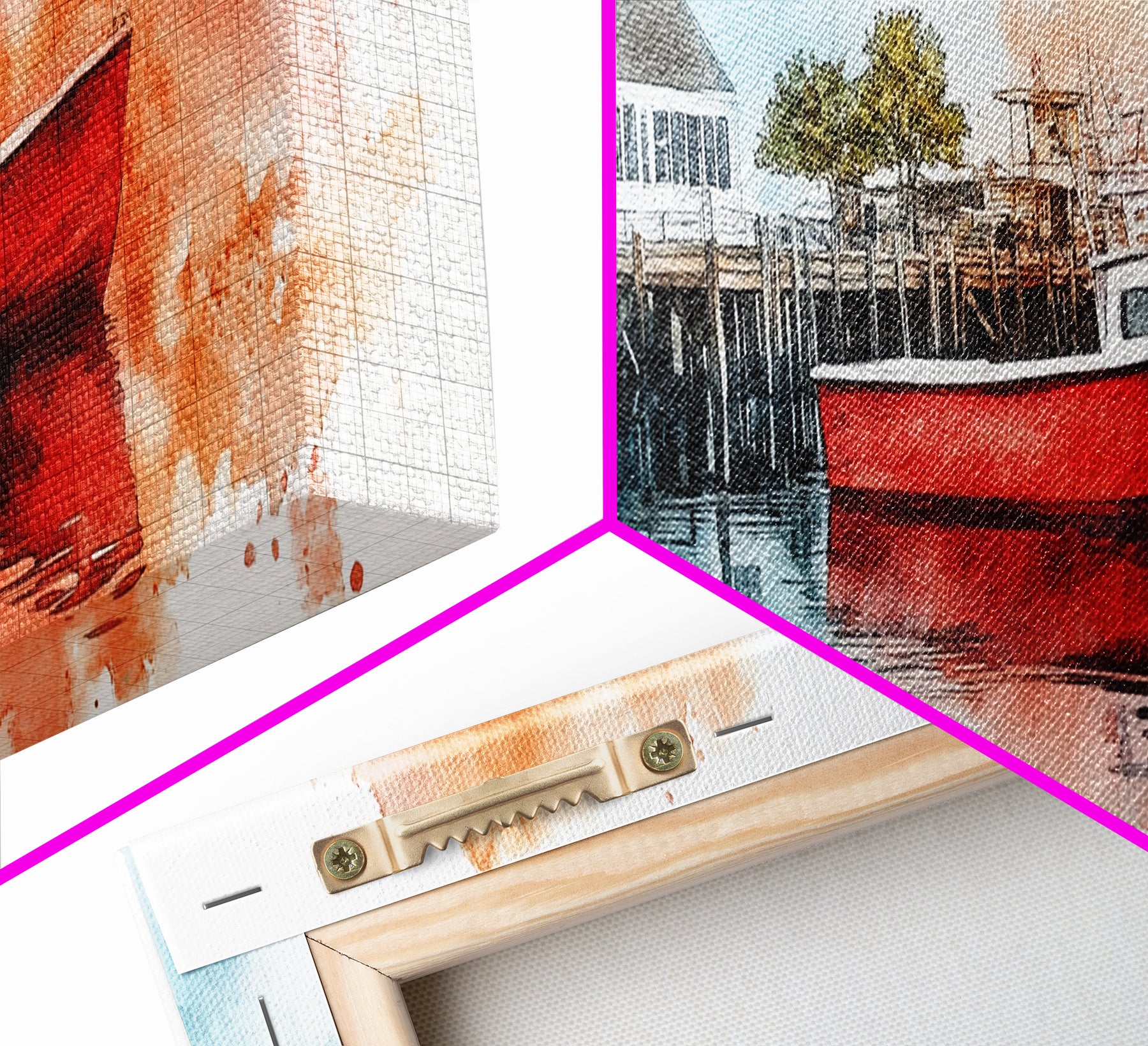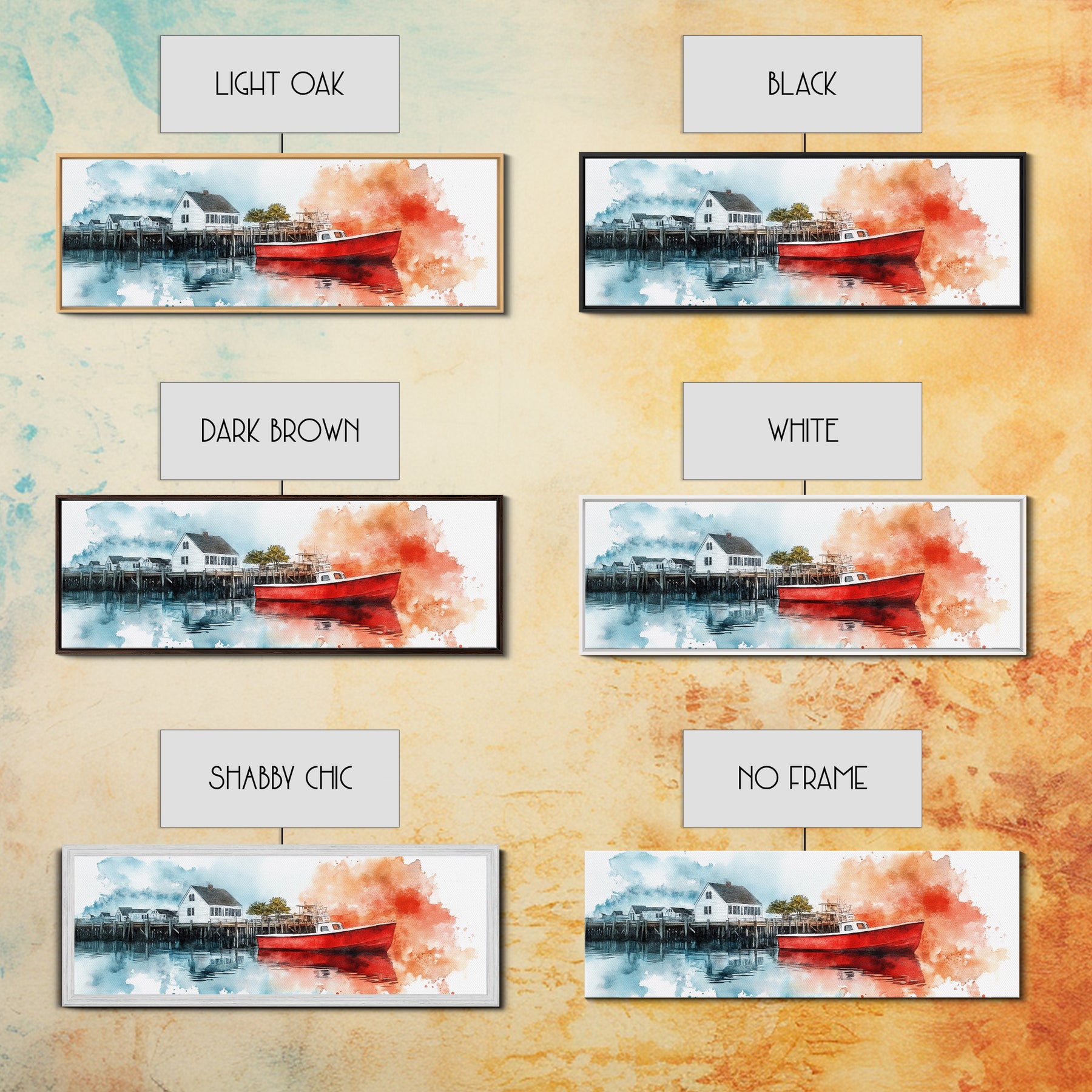 Panoramic Nautical Seacape Painting, Framed Canvas Print - Nantucket Wall Art - Beach House Art - Painting of Nantucket
