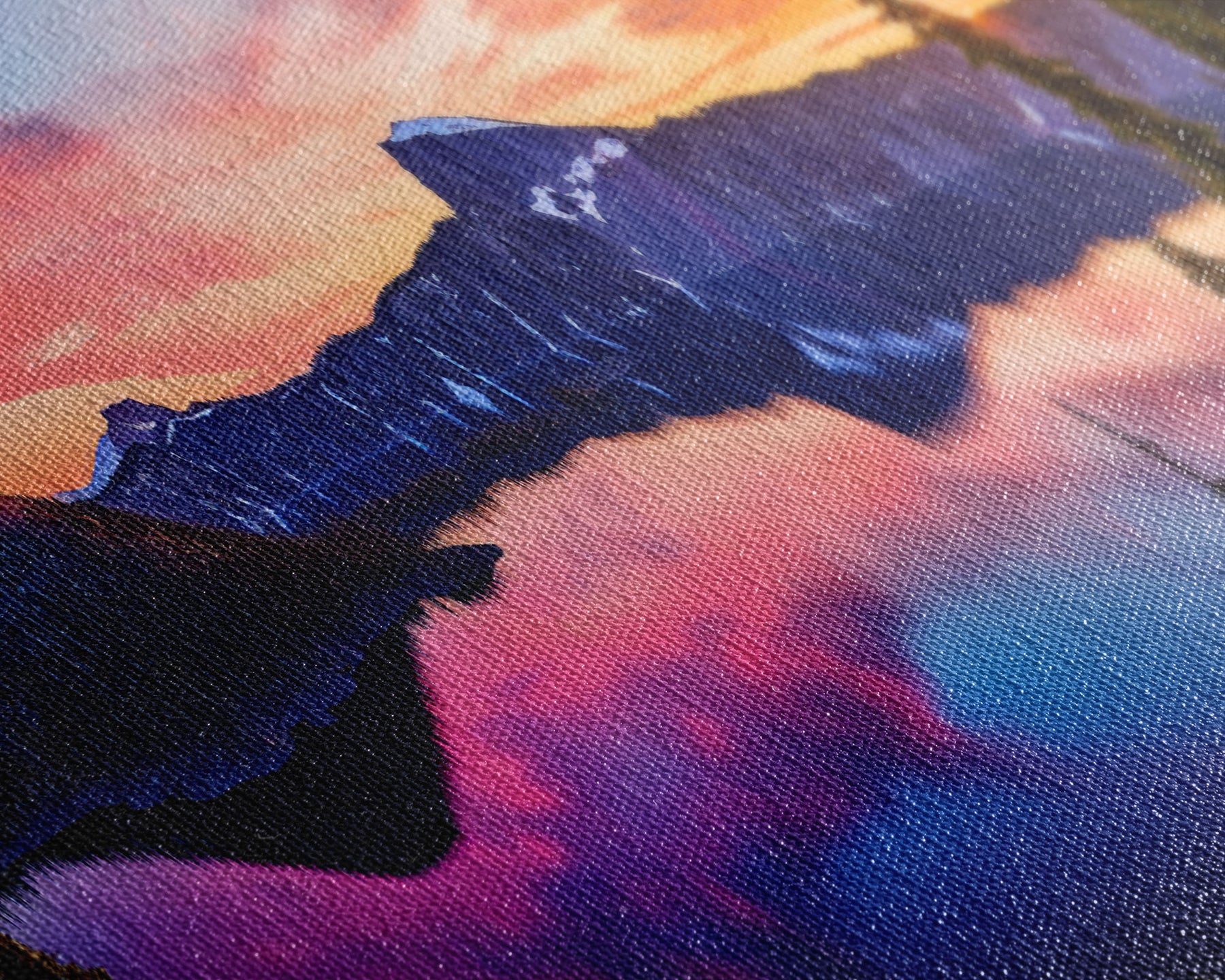 Most of our canvases are made in the USA, with the exception of canvases ordered with the light oak unstained frames, and any large canvases (24x48, 30x60, 16x48 and 20x60) ordered WITH a frame. These are temporarily made in and shipped from Europe, while we try to find a more consistent supplier in the USA.
