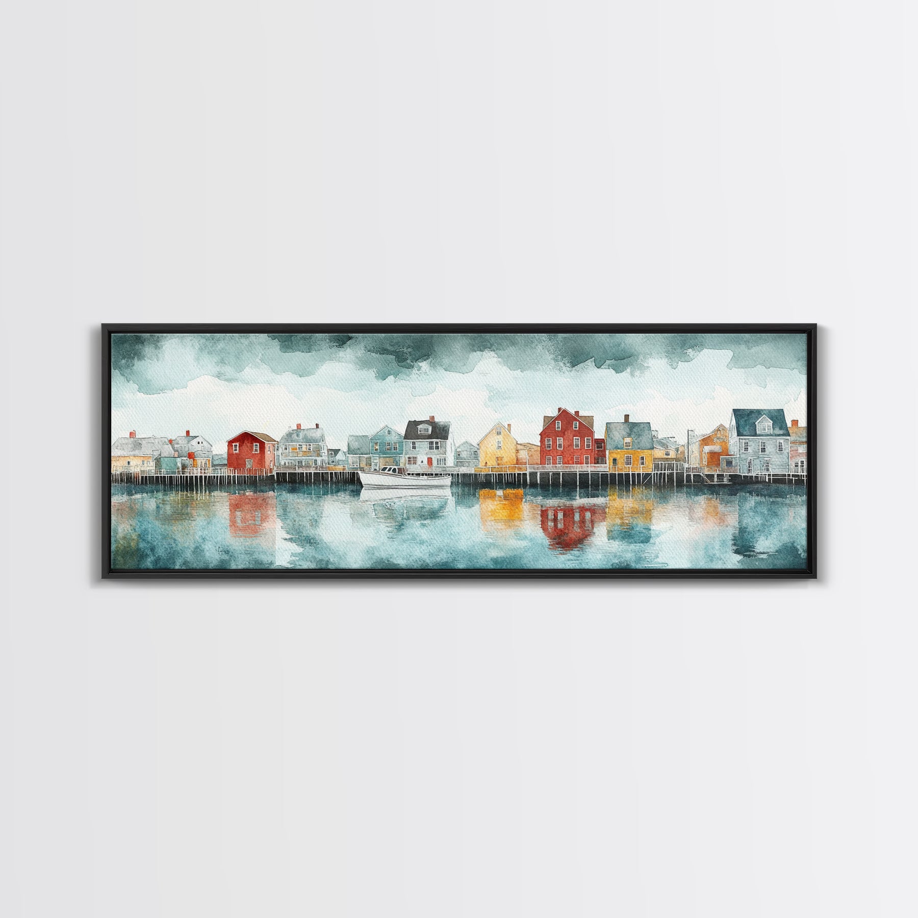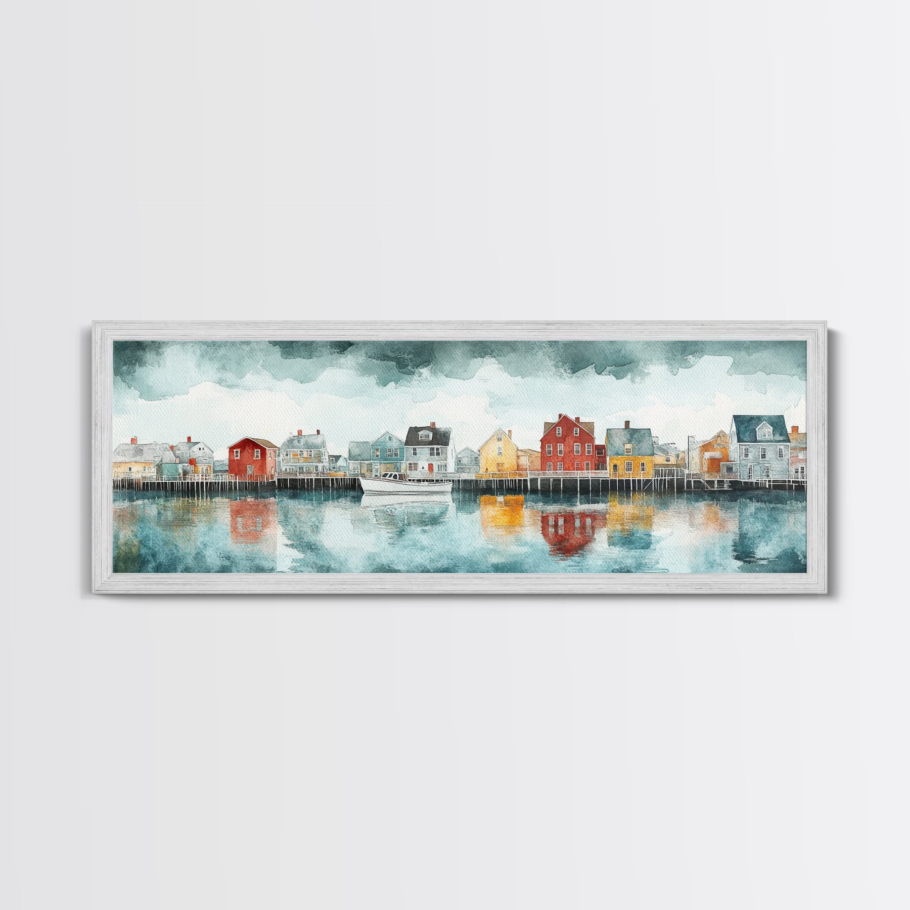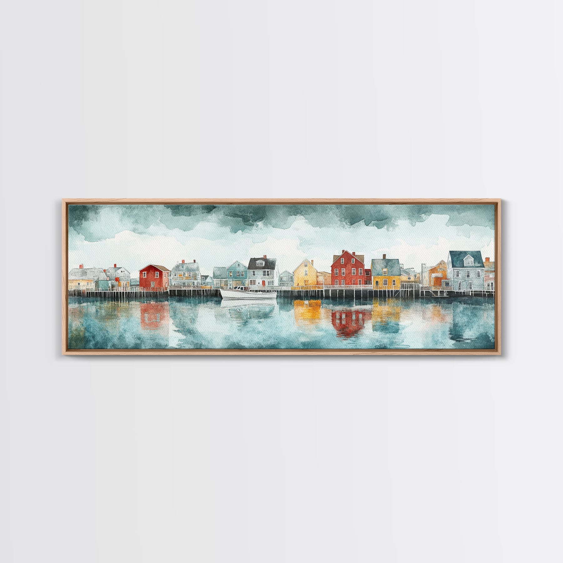 Panoramic Painting Print of Nantucket, Framed Canvas Print, Nantucket Painting, nautical seascape landscape painting, Nautical Decor