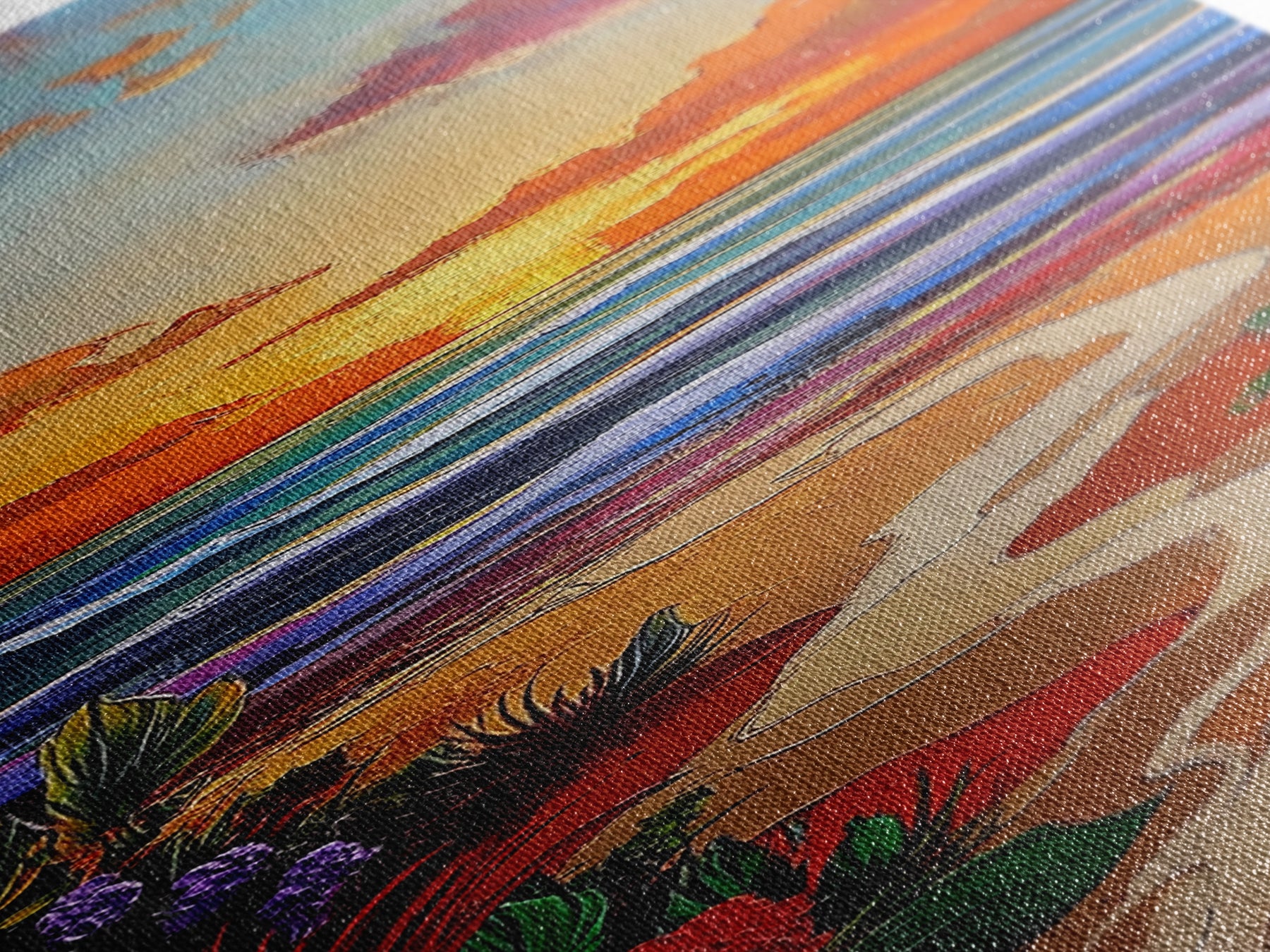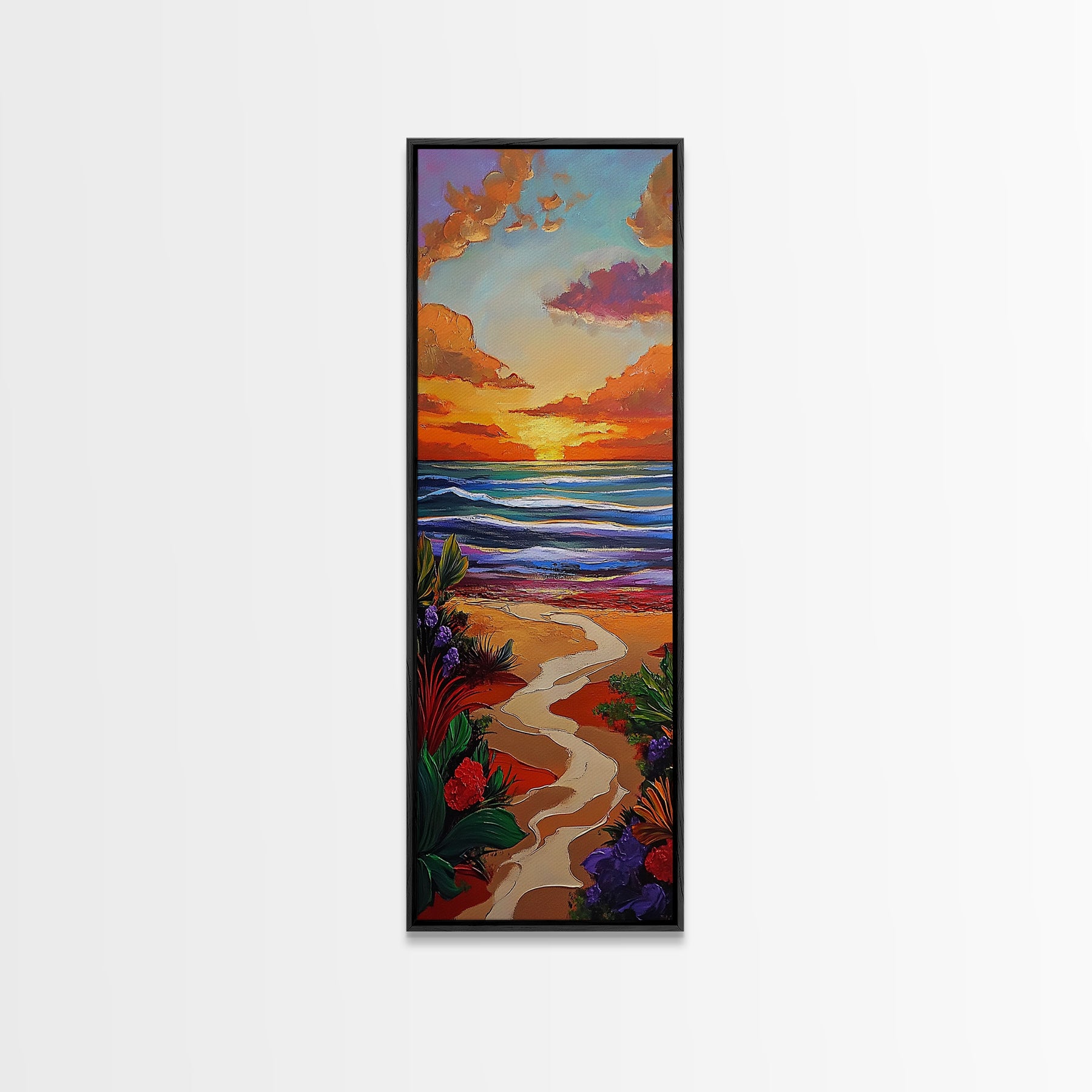 Path Beach, Sunset, Tropical Canvas Print scenic path to ocean wall decor, vibrant beach sunset artwork, tropical boho art, entryway art
