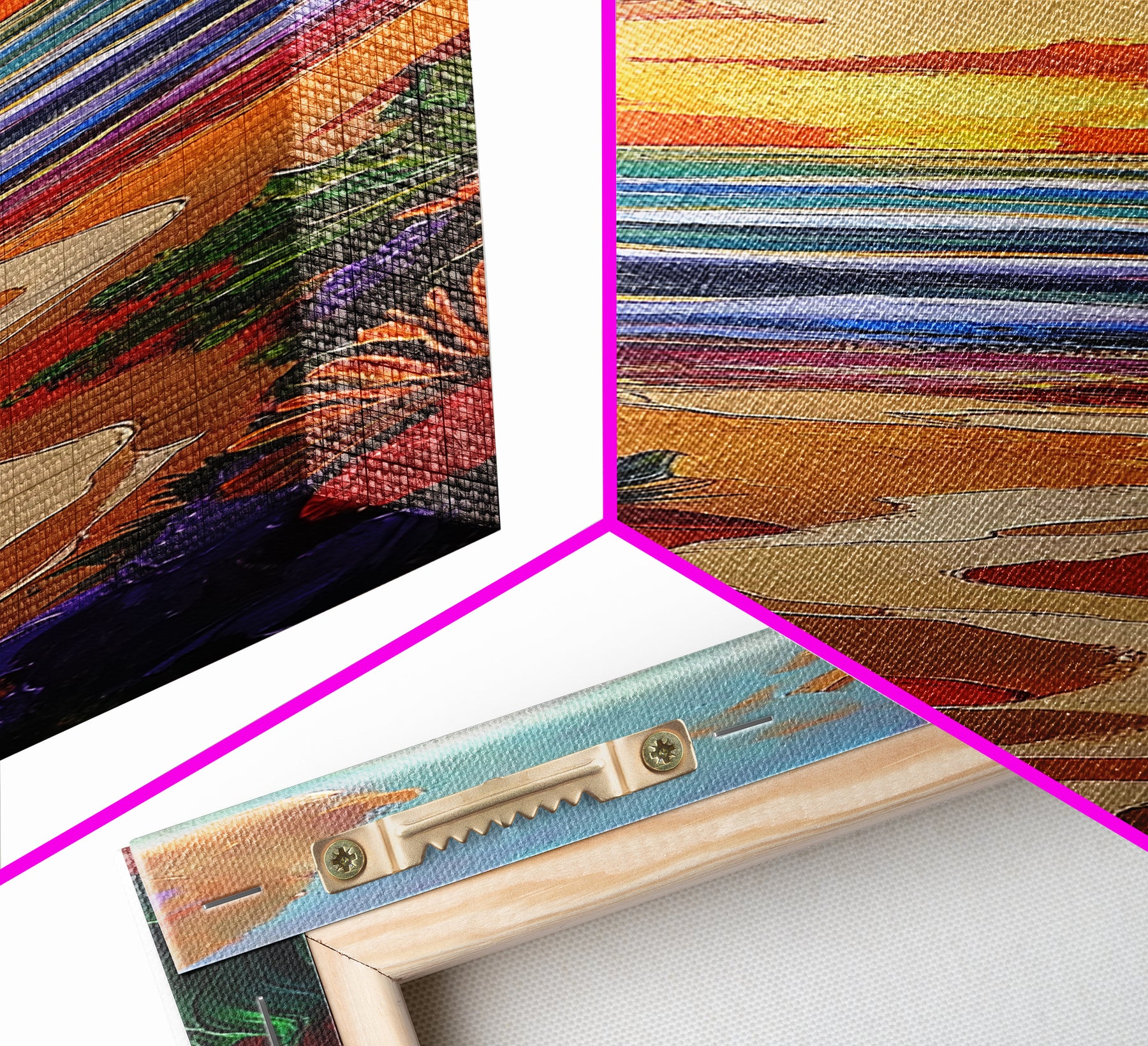 Hello and thank you for taking the time to view our modern high quality giclée artwork! We offer both posters and stretched canvas prints. Our posters are printed on Ultra Matte 60 lb / 230 GSM high quality photo paper, with a thickness of 10 mil. Our canvases are printed on museum grade 350 GSM canvas material with ECO friendly archival grade ink, then hand stretched and stapled over premium, FSC certified and shrink resistant frames. Designed and built to last a lifetime.