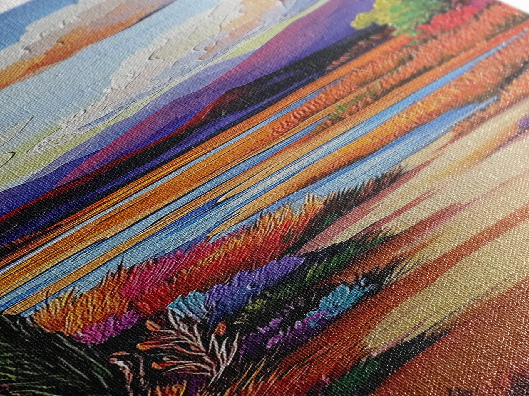 Most of our canvases are made in the USA, with the exception of canvases ordered with the light oak unstained frames, and any large canvases (24x48, 30x60, 16x48 and 20x60) ordered WITH a frame. These are temporarily made in and shipped from Europe, while we try to find a more consistent supplier in the USA.
