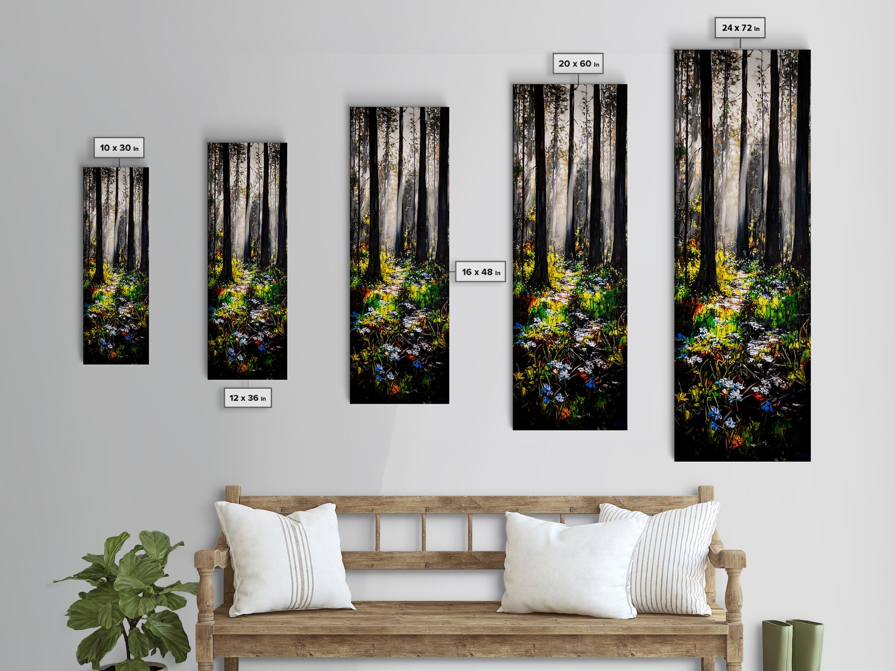 *Optional frames add a total of 1.5 inches to each dimension, for example a 10x20 canvas with a frame will be 11.5 by 21.5 inches total. All framed canvas are 1.5" total depth.