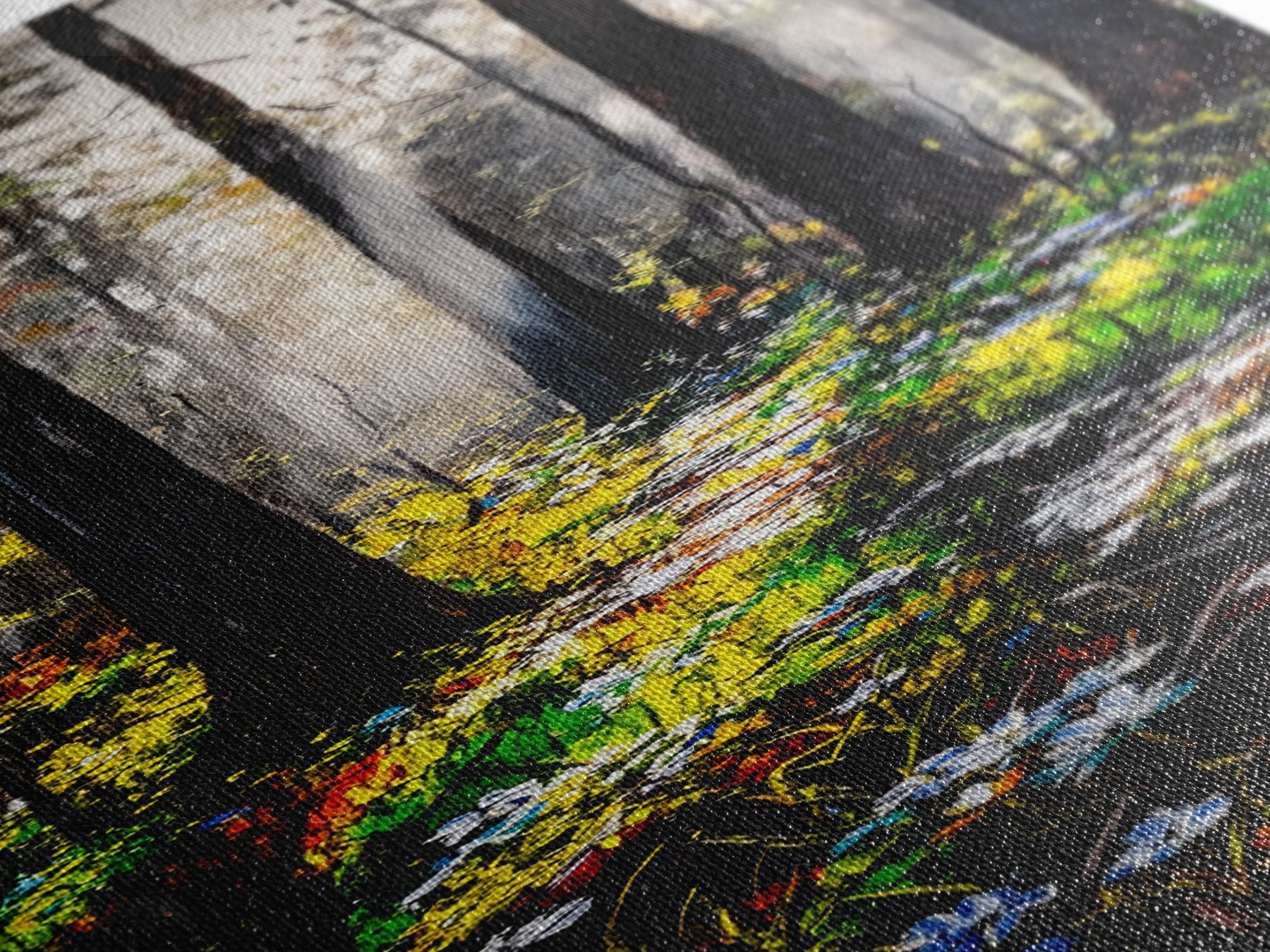 Most of our canvases are made in the USA, with the exception of canvases ordered with the light oak unstained frames, and any large canvases (24x48, 30x60, 16x48 and 20x60) ordered WITH a frame. These are temporarily made in and shipped from Europe, while we try to find a more consistent supplier in the USA.