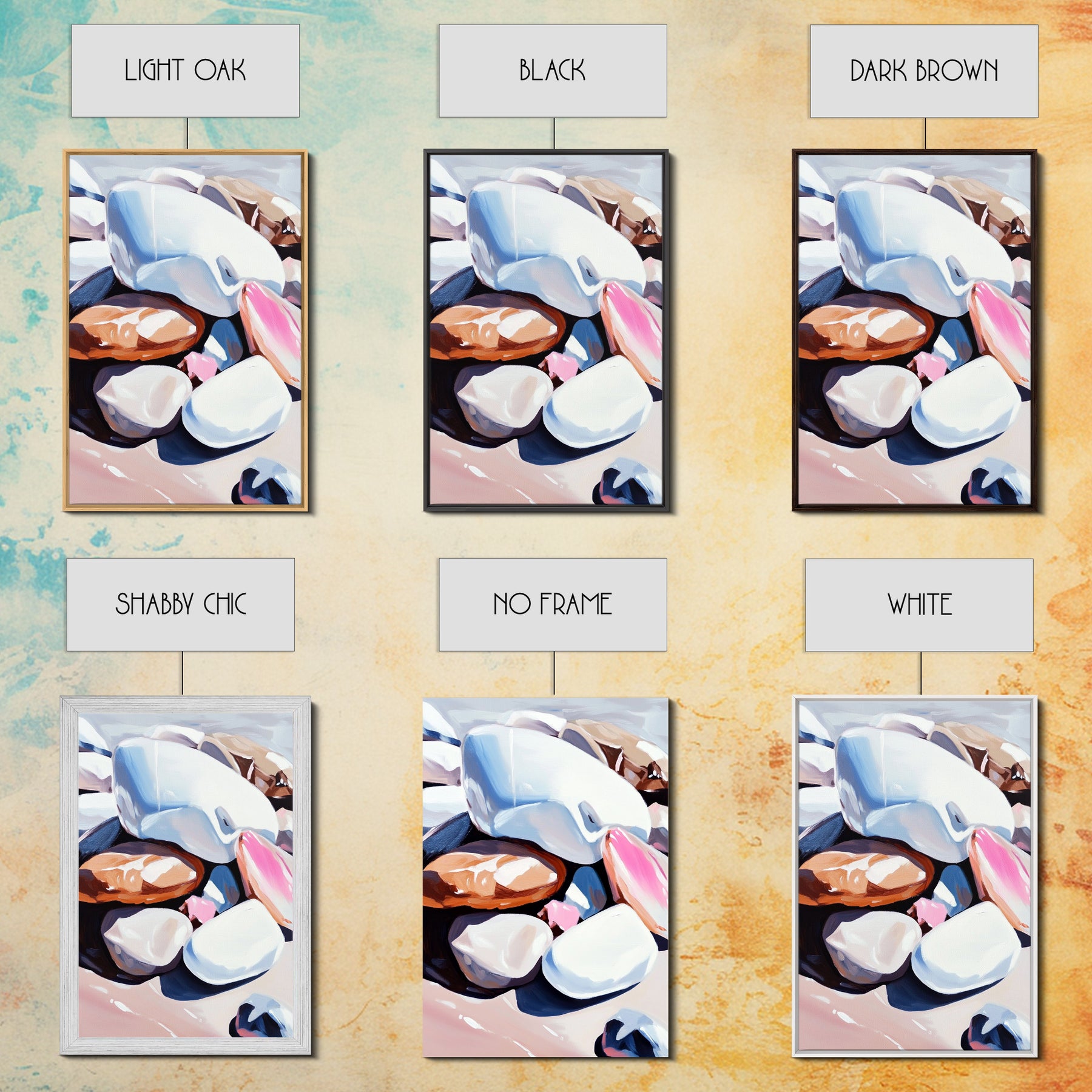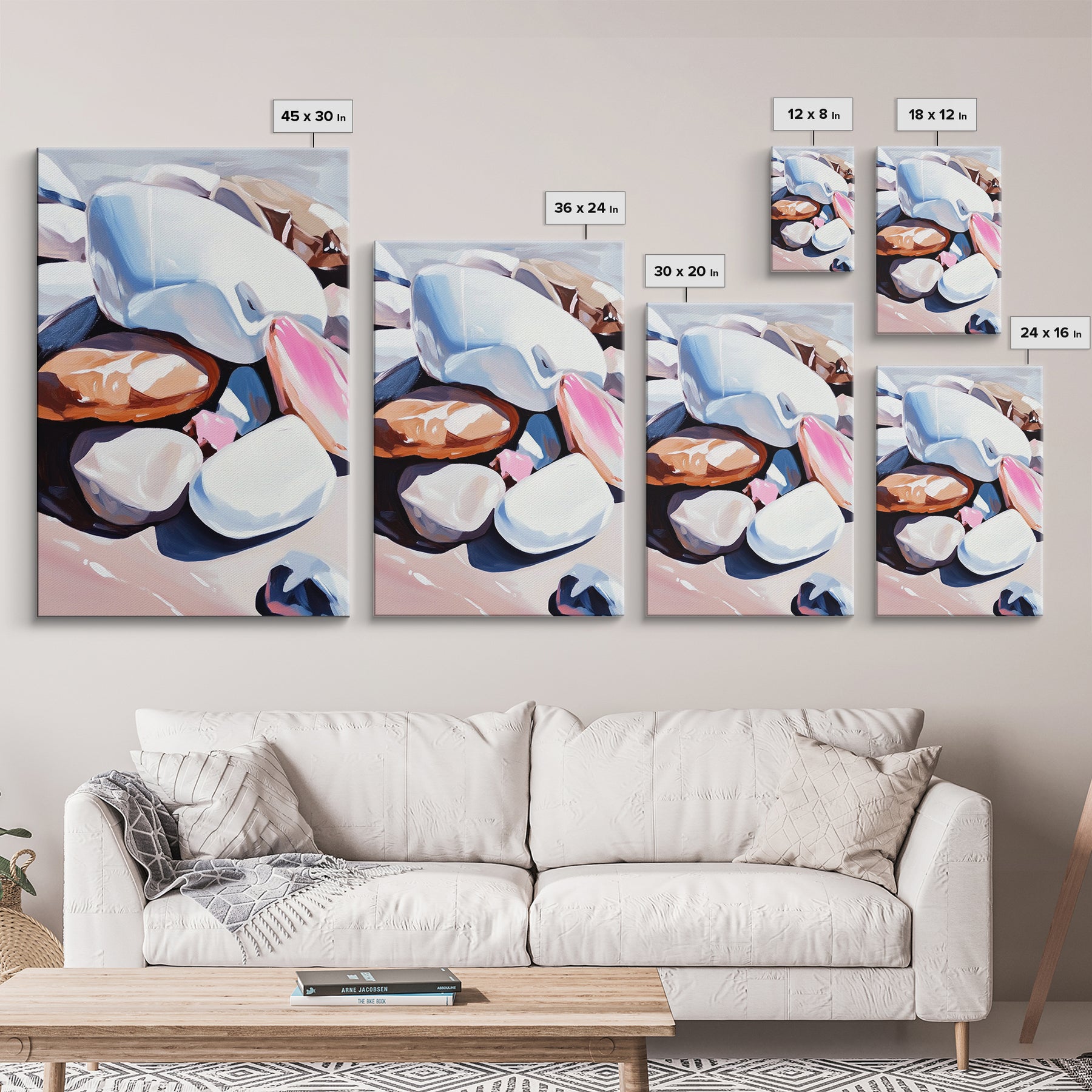 Pebble Beach, Coastal Rock Art, Natural Elements, Earthy Aesthetic, Minimalist Canvas Print, Zen Decor, Tranquil Living Room Art