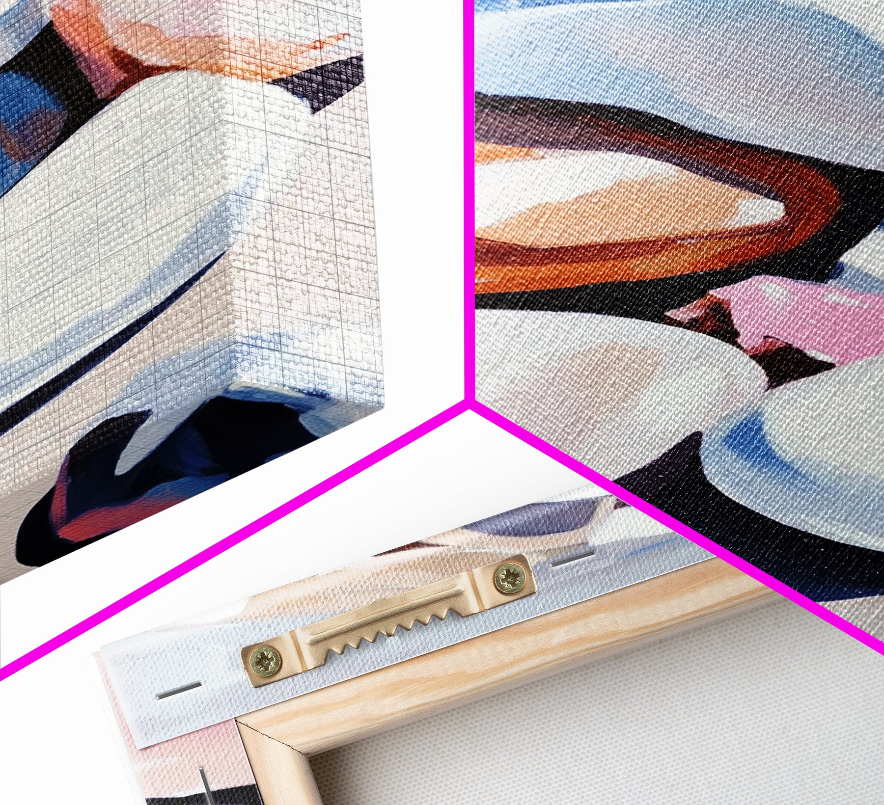 Hello and thank you for taking the time to view our modern high quality giclée artwork! We offer both posters and stretched canvas prints. Our posters are printed on Ultra Matte 60 lb / 230 GSM high quality photo paper, with a thickness of 10 mil. Our canvases are printed on museum grade 350 GSM canvas material with ECO friendly archival grade ink, then hand stretched and stapled over premium, FSC certified and shrink resistant frames. Designed and built to last a lifetime.