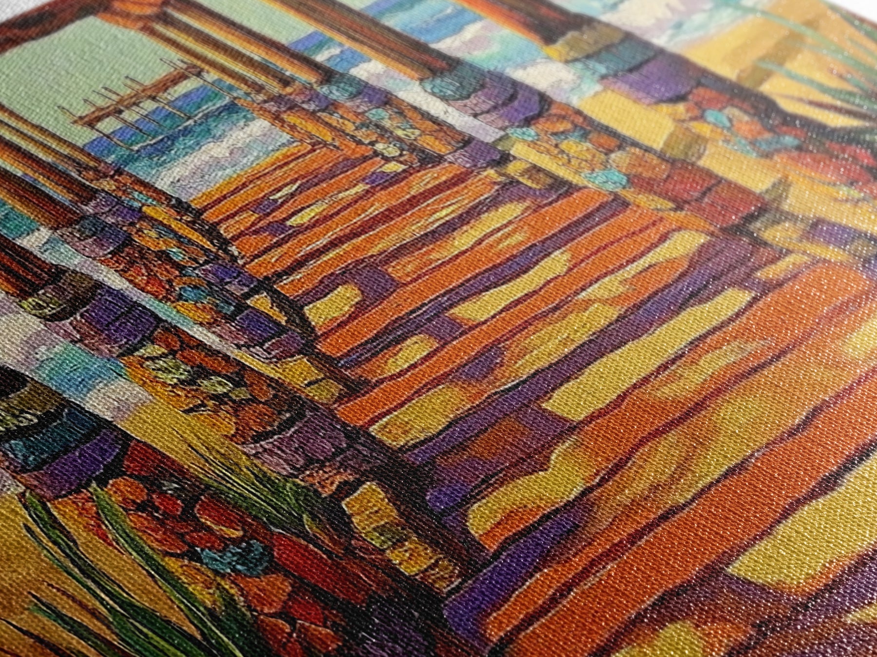 Most of our canvases are made in the USA, with the exception of canvases ordered with the light oak unstained frames, and any large canvases (24x48, 30x60, 16x48 and 20x60) ordered WITH a frame. These are temporarily made in and shipped from Europe, while we try to find a more consistent supplier in the USA.