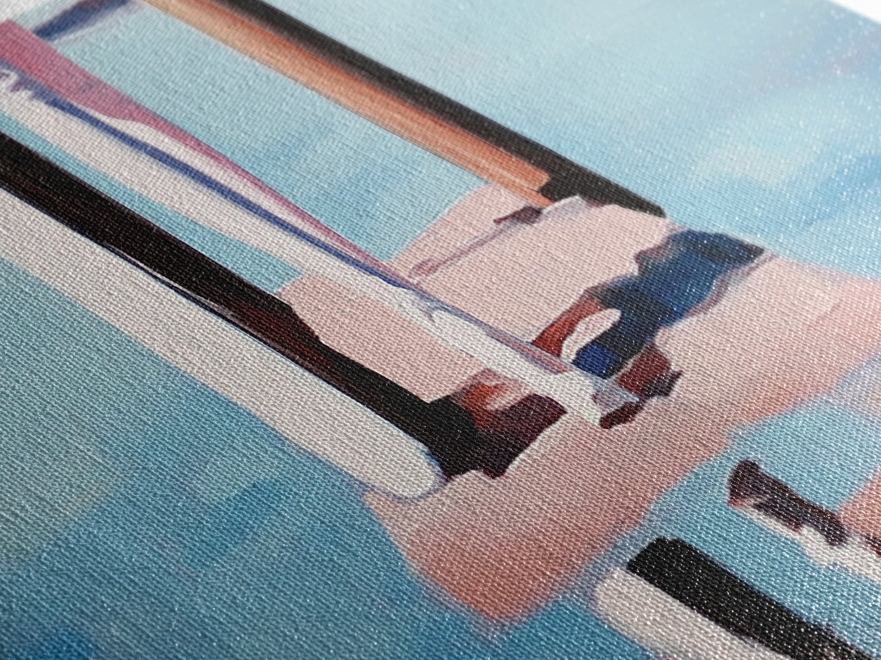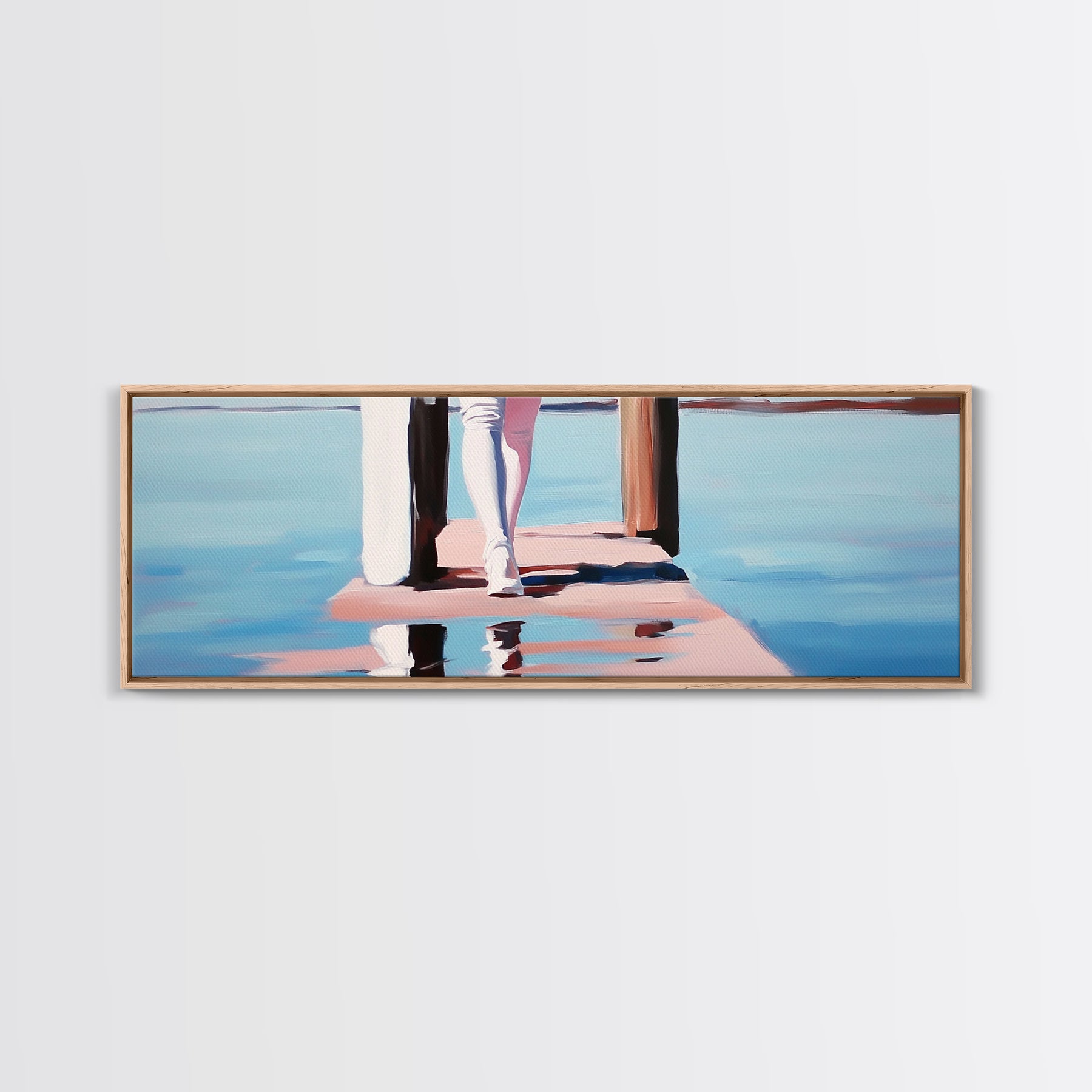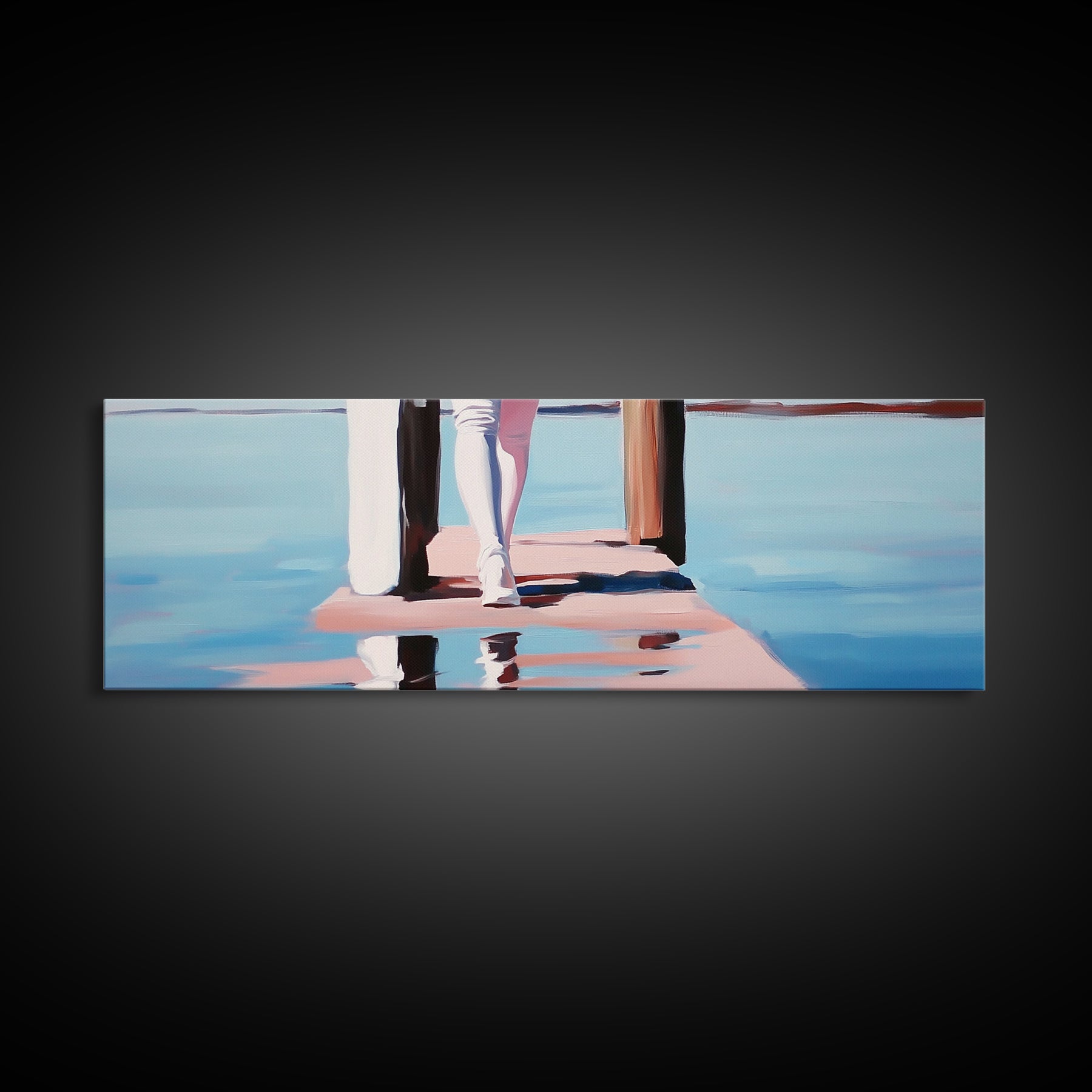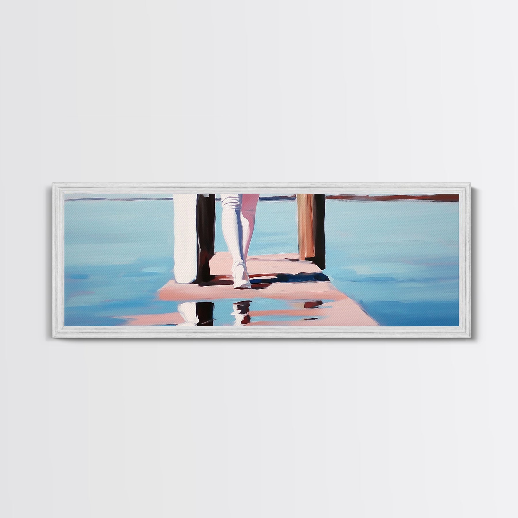 Pier Walk, Ocean Art, Coastal Landscape, Tranquil Water, Seaside Painting, Nautical Home Decor, Modern Art, Framed Canvas Print