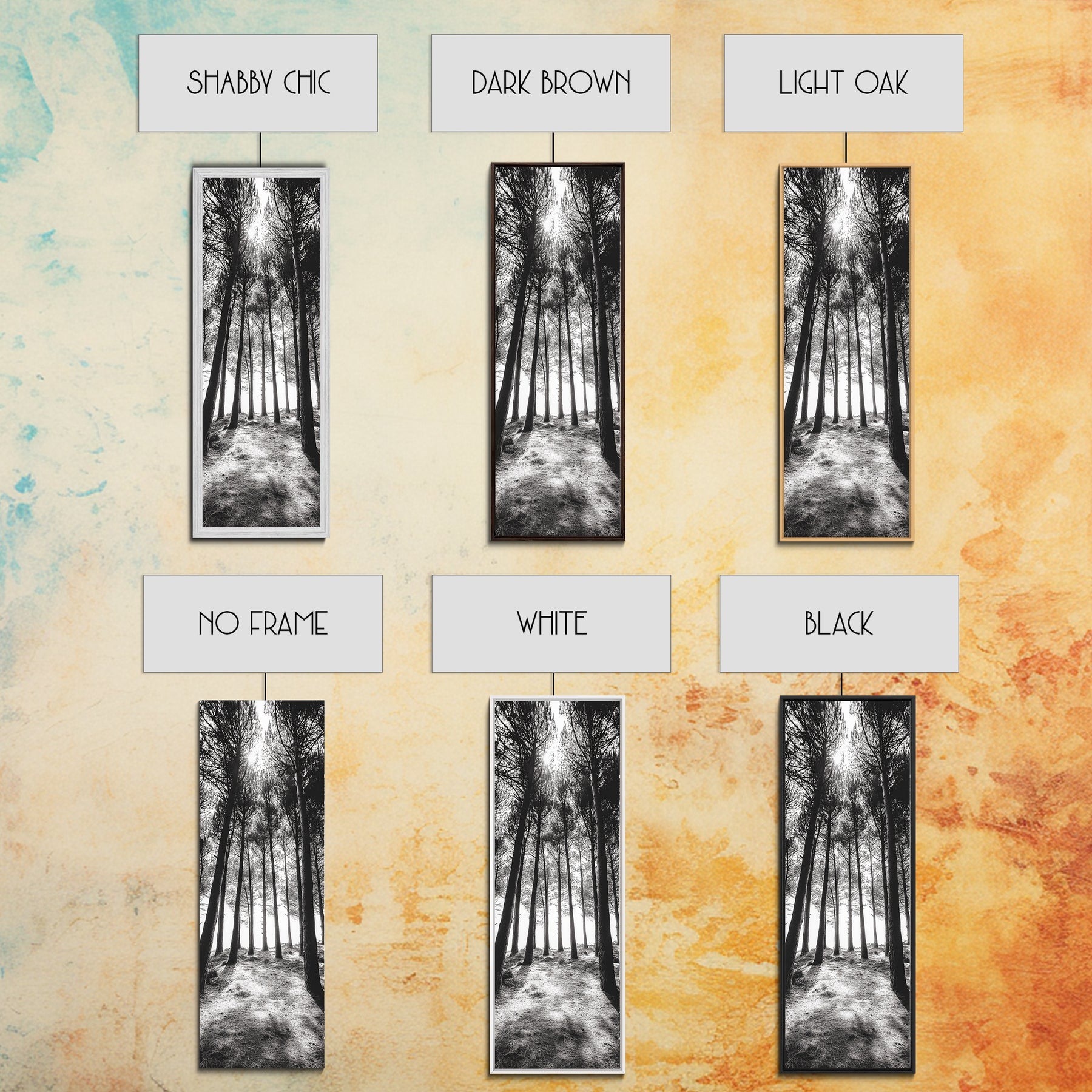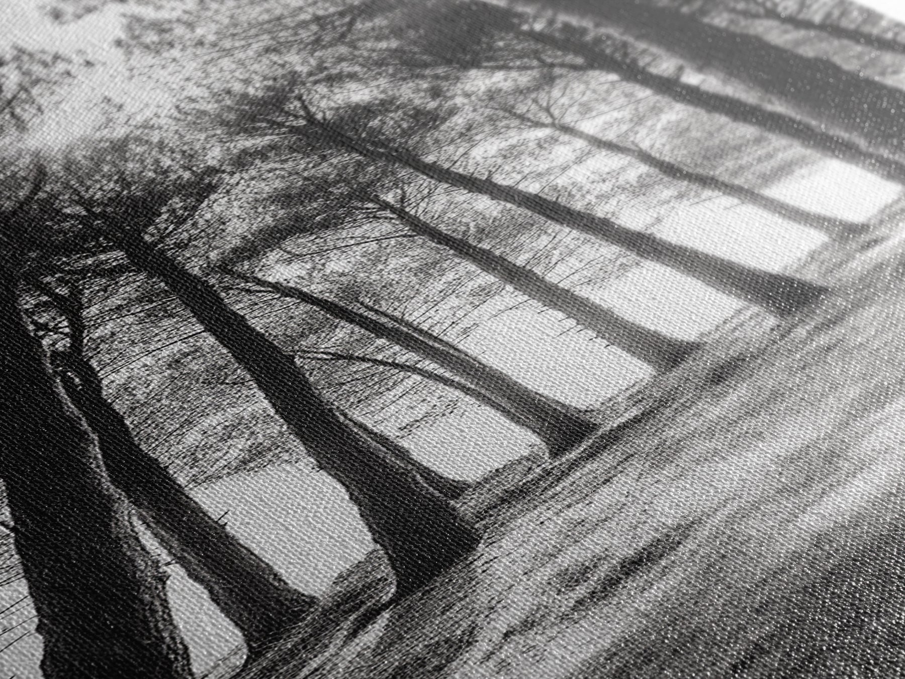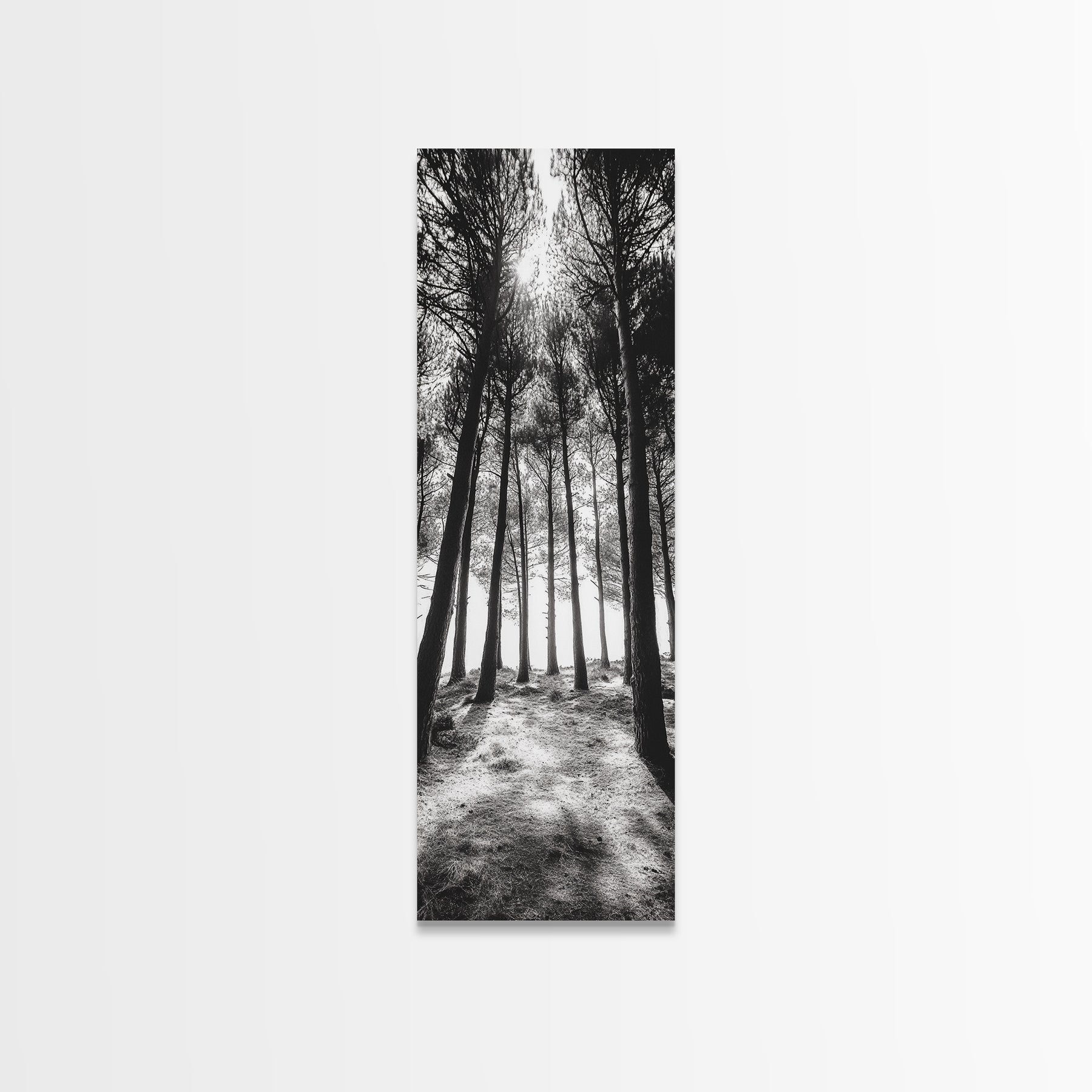 Pine Forest Glow, Woodland Landscape, Monochrome Nature, Boho Style, Framed Canvas Print, Entryway Print, Living Room Wall Art, Game Room Art