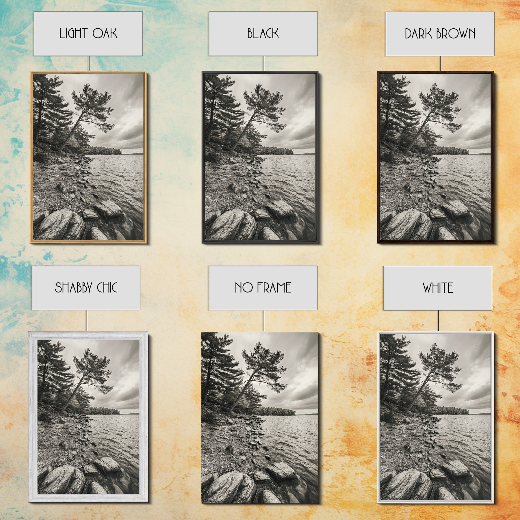 *Optional frames add a total of 1.5 inches to each dimension, for example a 10x20 canvas with a frame will be 11.5 by 21.5 inches total. All framed canvas are 1.5" total depth.