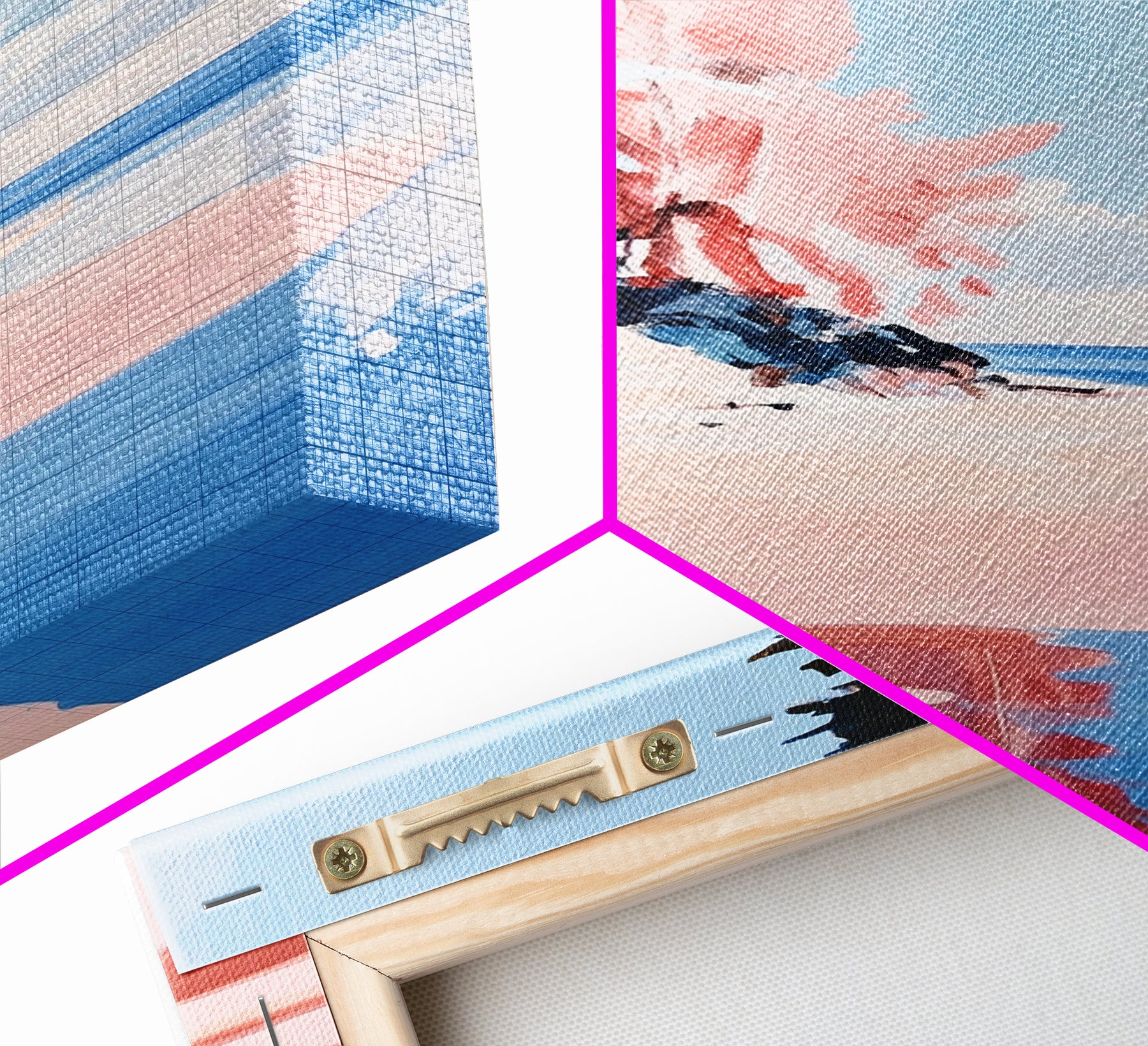 Hello and thank you for taking the time to view our modern high quality giclée artwork! We offer both posters and stretched canvas prints. Our posters are printed on Ultra Matte 60 lb / 230 GSM high quality photo paper, with a thickness of 10 mil. Our canvases are printed on museum grade 350 GSM canvas material with ECO friendly archival grade ink, then hand stretched and stapled over premium, FSC certified and shrink resistant frames. Designed and built to last a lifetime.