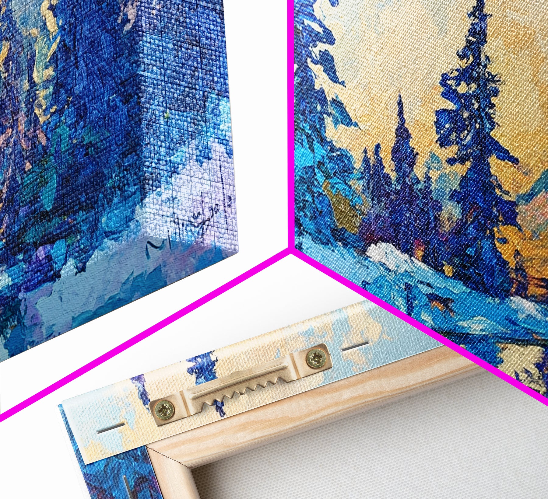*SHIPPING: Every canvas is carefully wrapped in bubble wrap and foam corner protectors, and shipped fully assembled and ready to hang with sawtooth hangers in a flat box. All you need is a hammer!