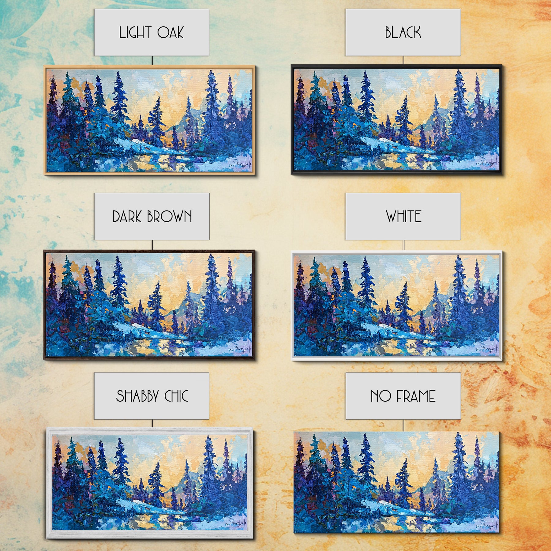 *Optional frames add a total of 1.5 inches to each dimension, for example a 10x20 canvas with a frame will be 11.5 by 21.5 inches total. All framed canvas are 1.5" total depth.