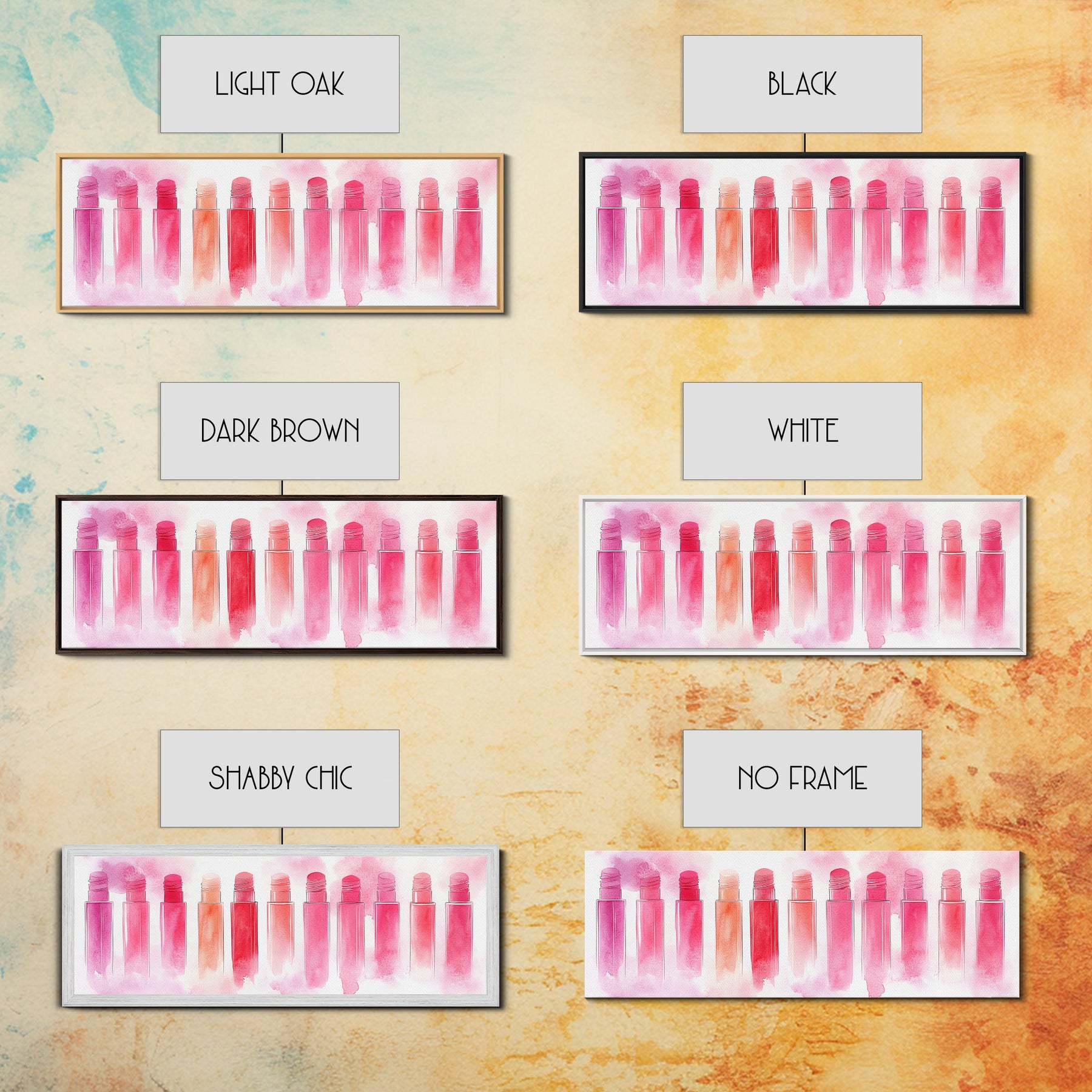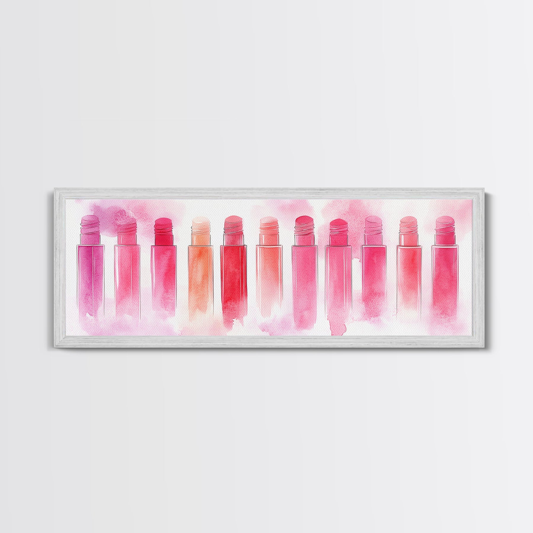 Pink Abstract Art Framed Canvas Print Featuring Lip Gloss Collection, Feminine Living Room Artwork, Boho Dorm Decor Gift Idea
