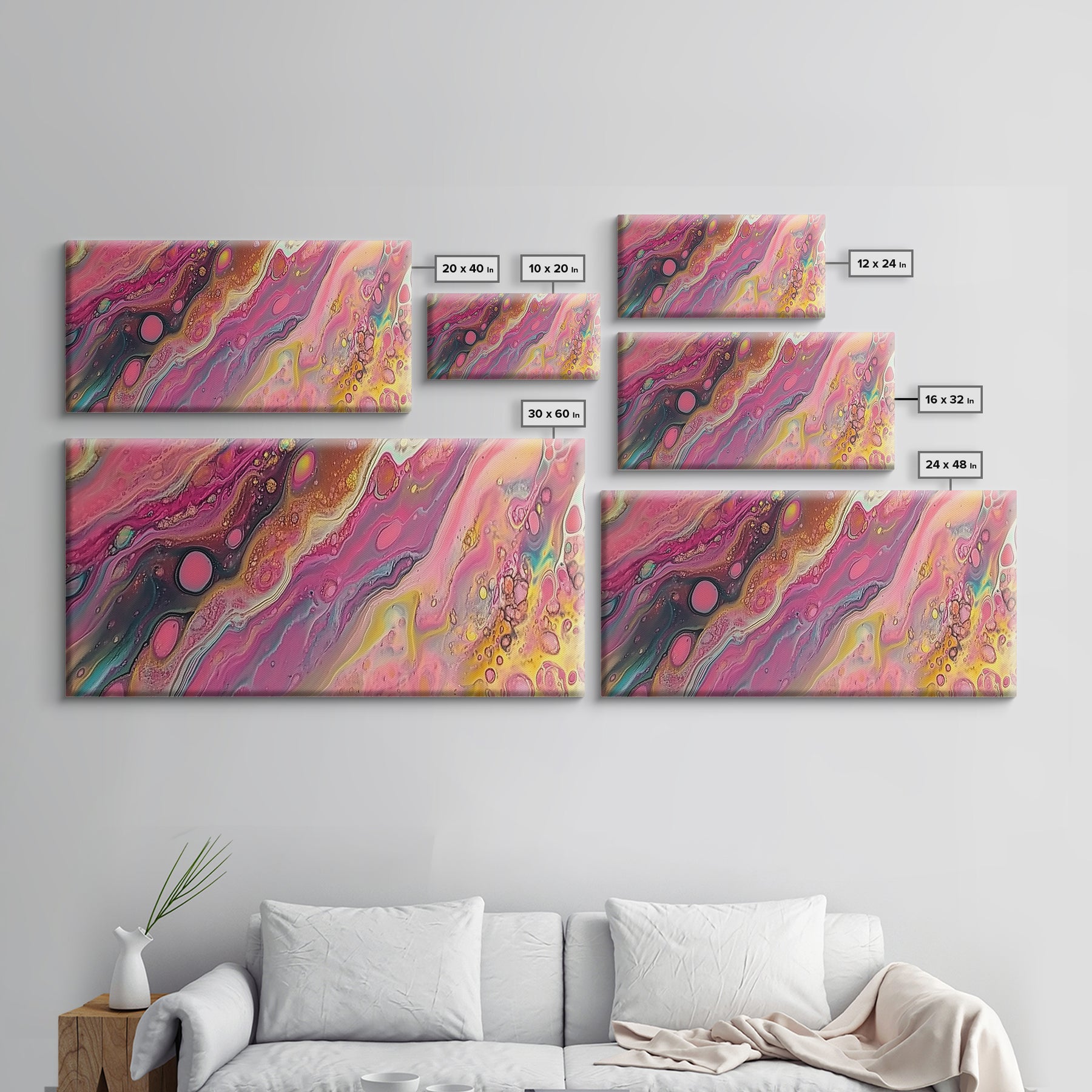 Pink Abstract, fluid art, cosmic energy, modern painting, blotter art, moody wall art, extra wide art, Framed Canvas Print, therapy art