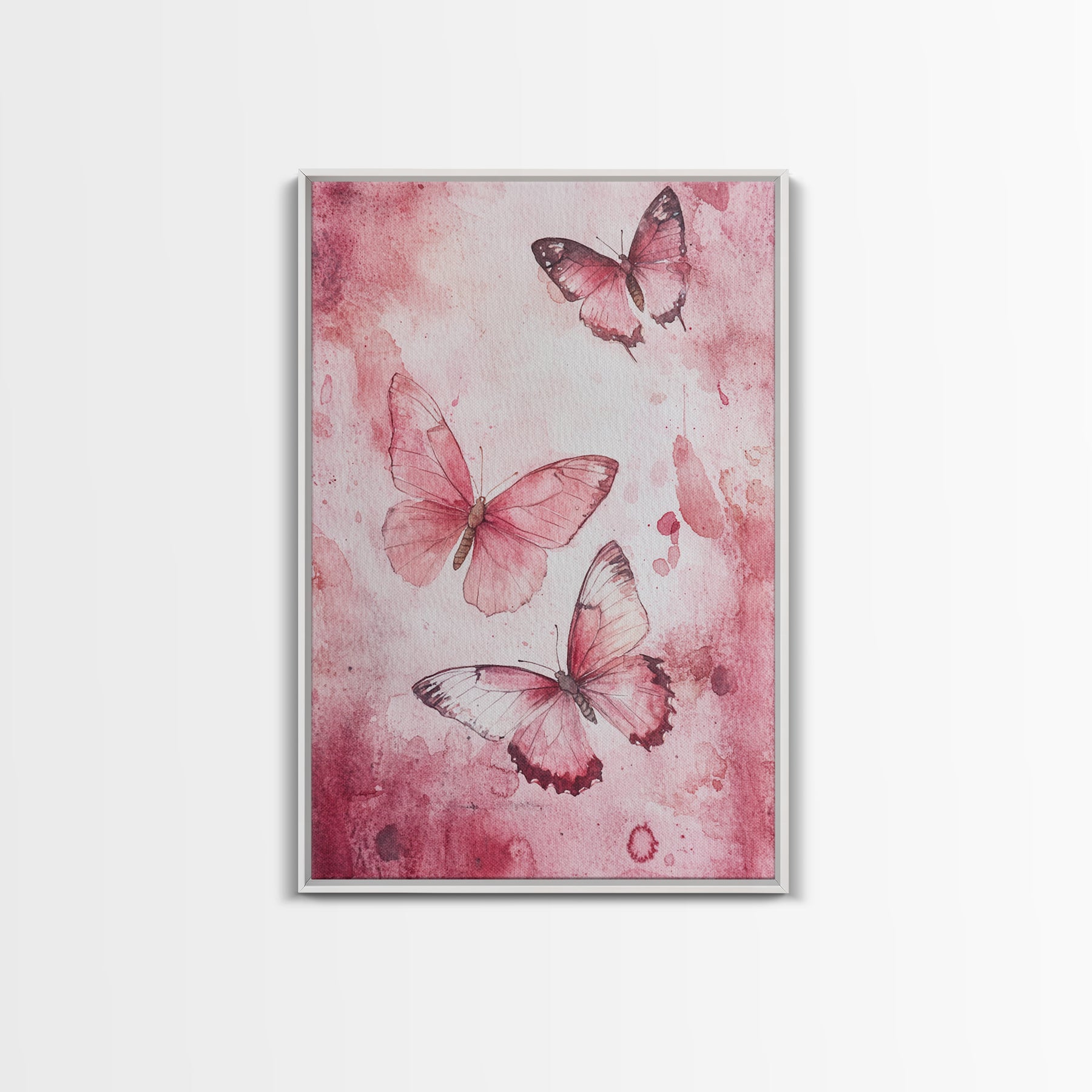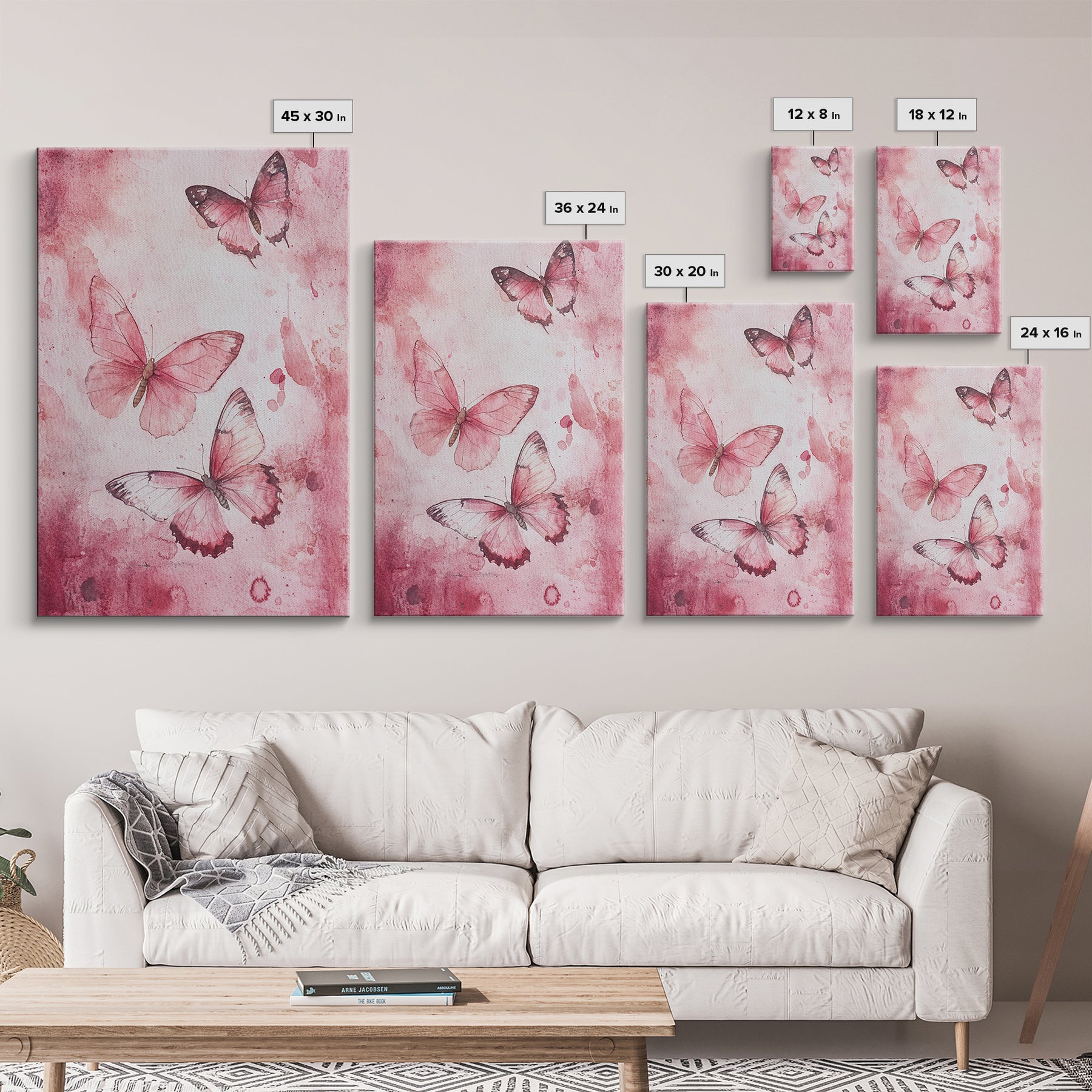 Pink Butterfly Botanical Prints Canvas Print Soft Whimsical Nature Inspired Bedroom or Living Room Art Light Pink Wall Decor