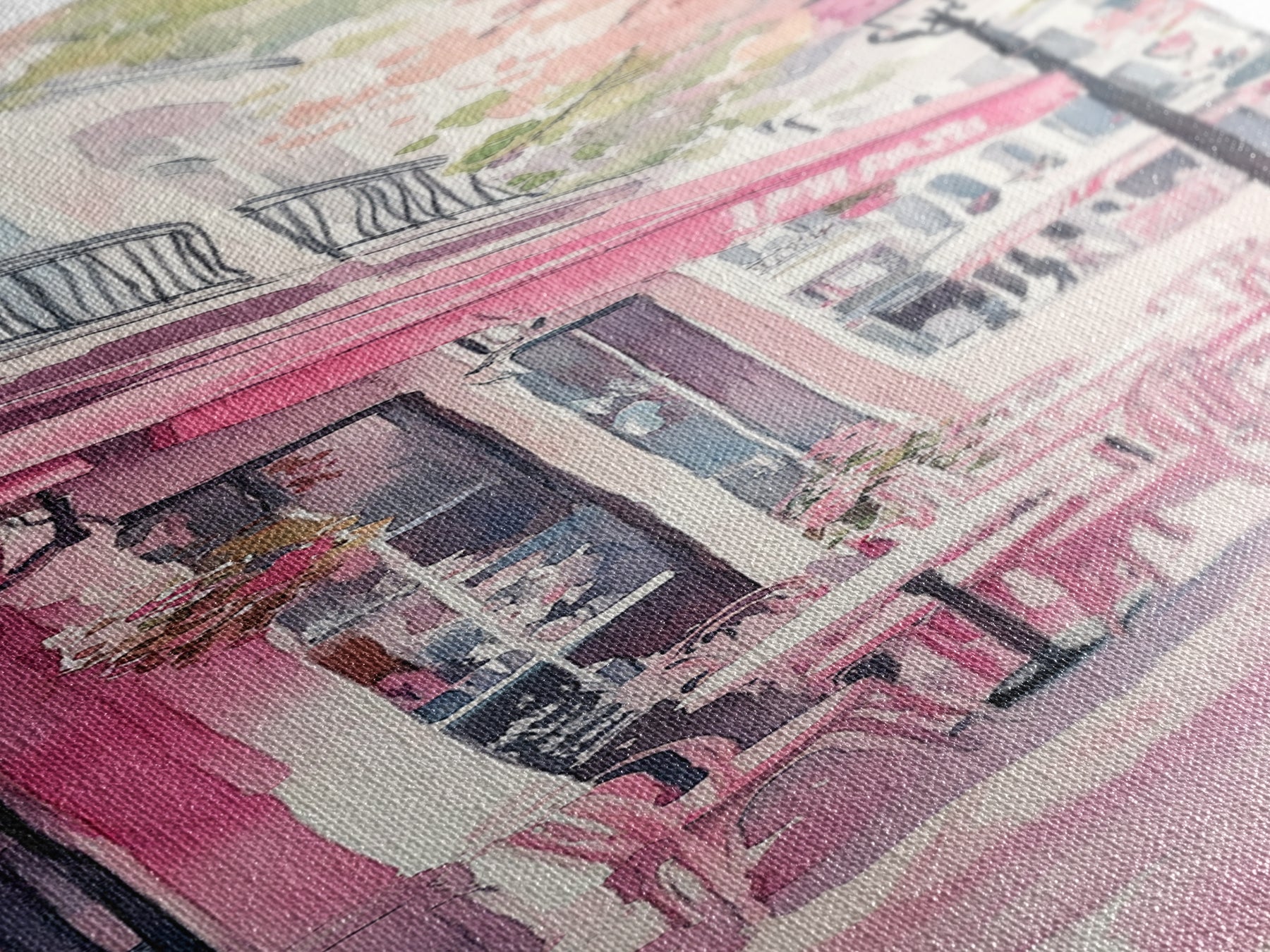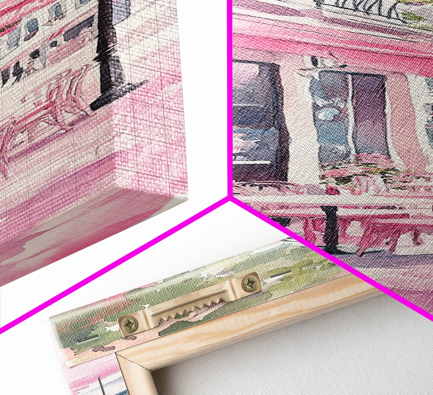 Pink Café Canvas Print Romantic French Bistro Painting Coastal Cowgirl Wall Art Above Bed Art Guest Room Gift Living Room Rustic Decor