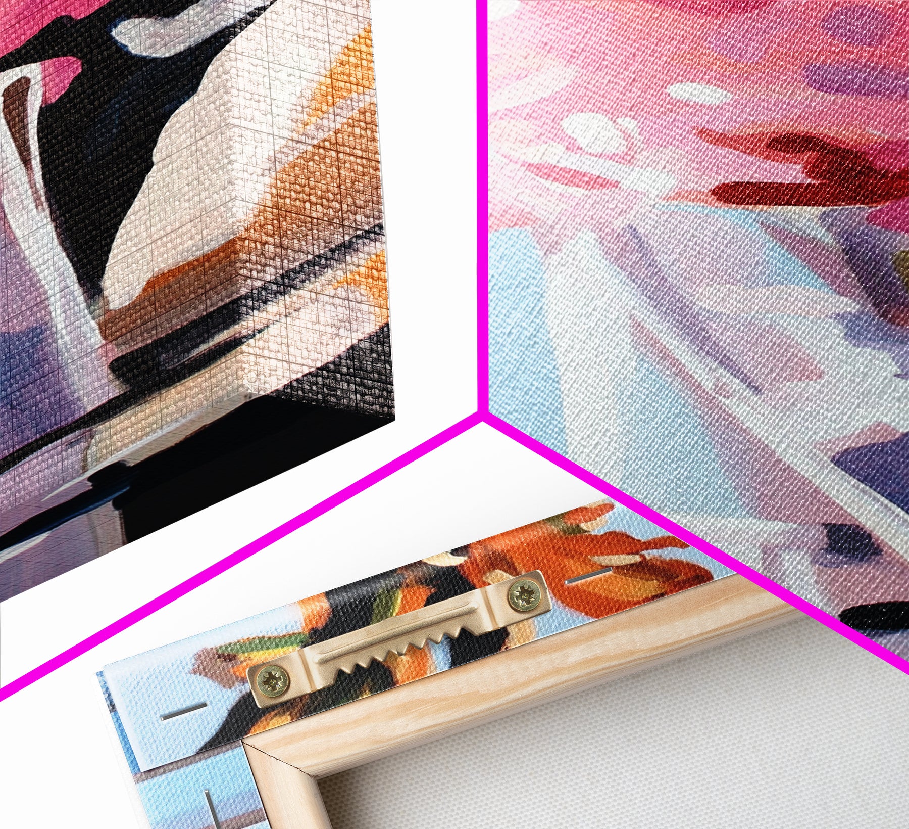 Hello and thank you for taking the time to view our modern high quality giclée artwork! We offer both posters and stretched canvas prints. Our posters are printed on Ultra Matte 60 lb / 230 GSM high quality photo paper, with a thickness of 10 mil. Our canvases are printed on museum grade 350 GSM canvas material with ECO friendly archival grade ink, then hand stretched and stapled over premium, FSC certified and shrink resistant frames. Designed and built to last a lifetime.