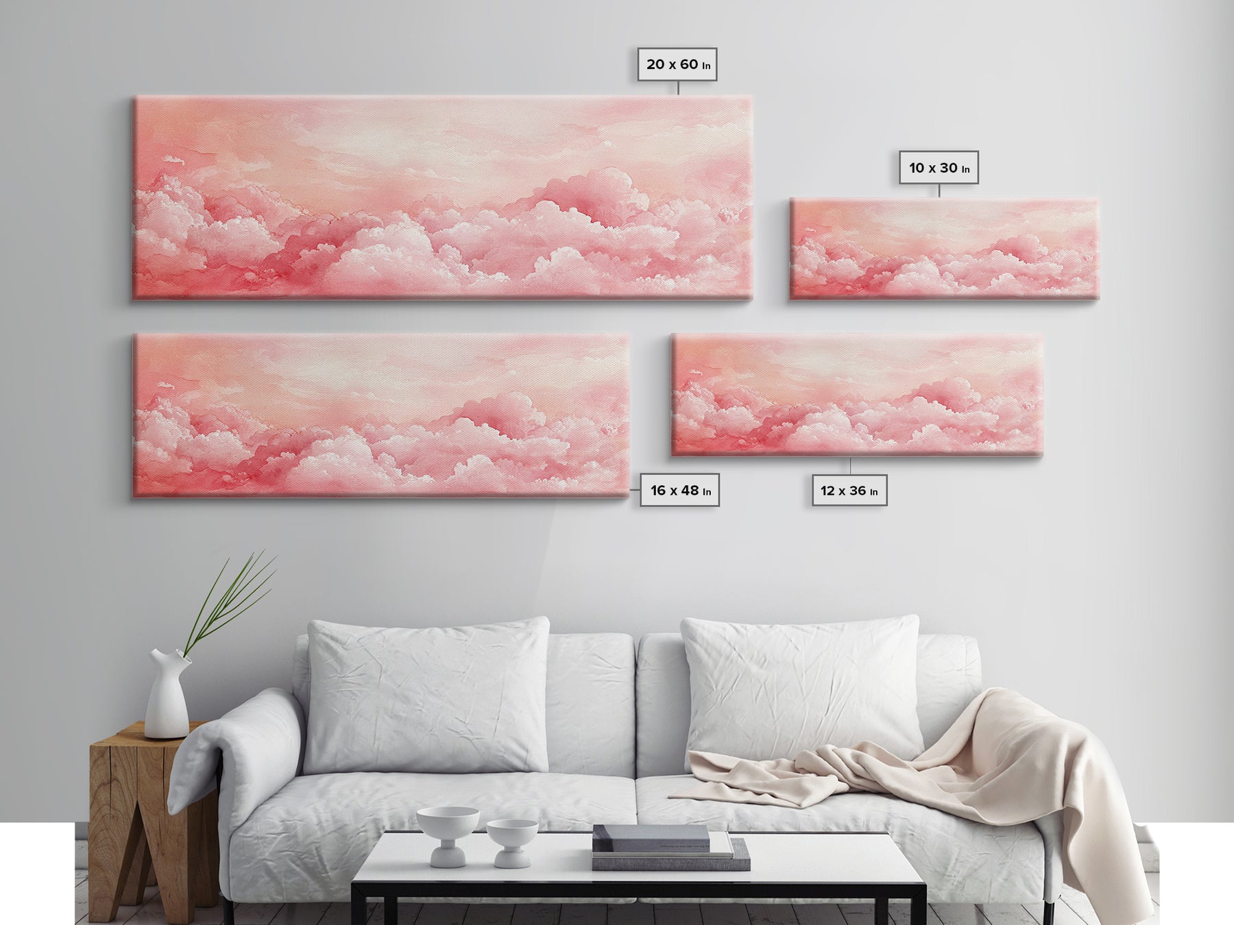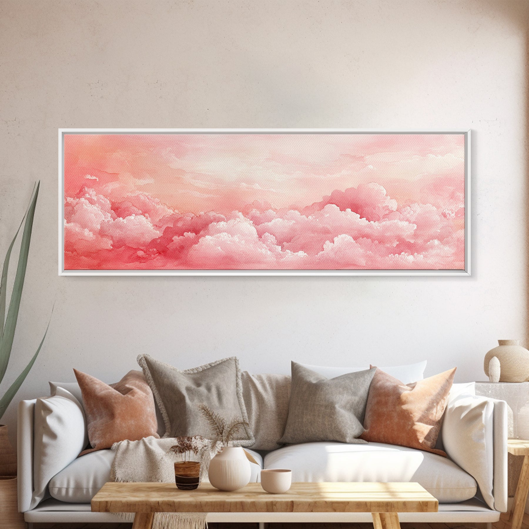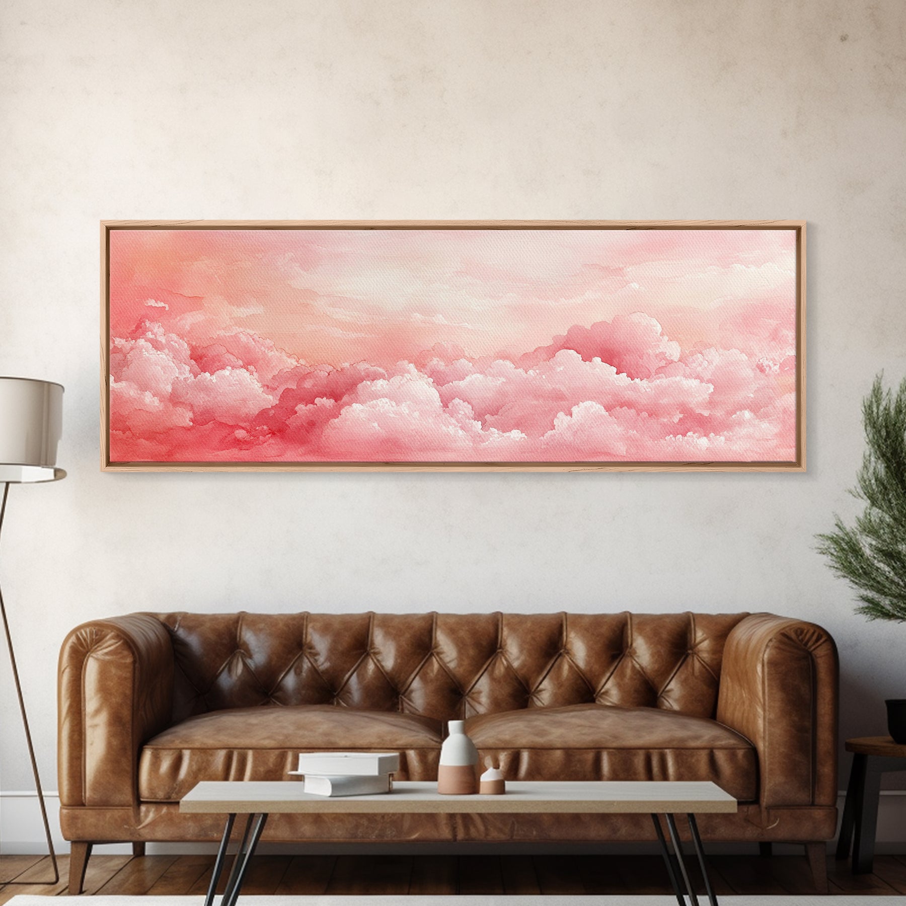 Pink Cloudscape Framed Canvas Print Light Pink Wall Art Above Sofa Horizontal Art Moody Sky Coastal Decor Gift Idea For Her Bedroom Art