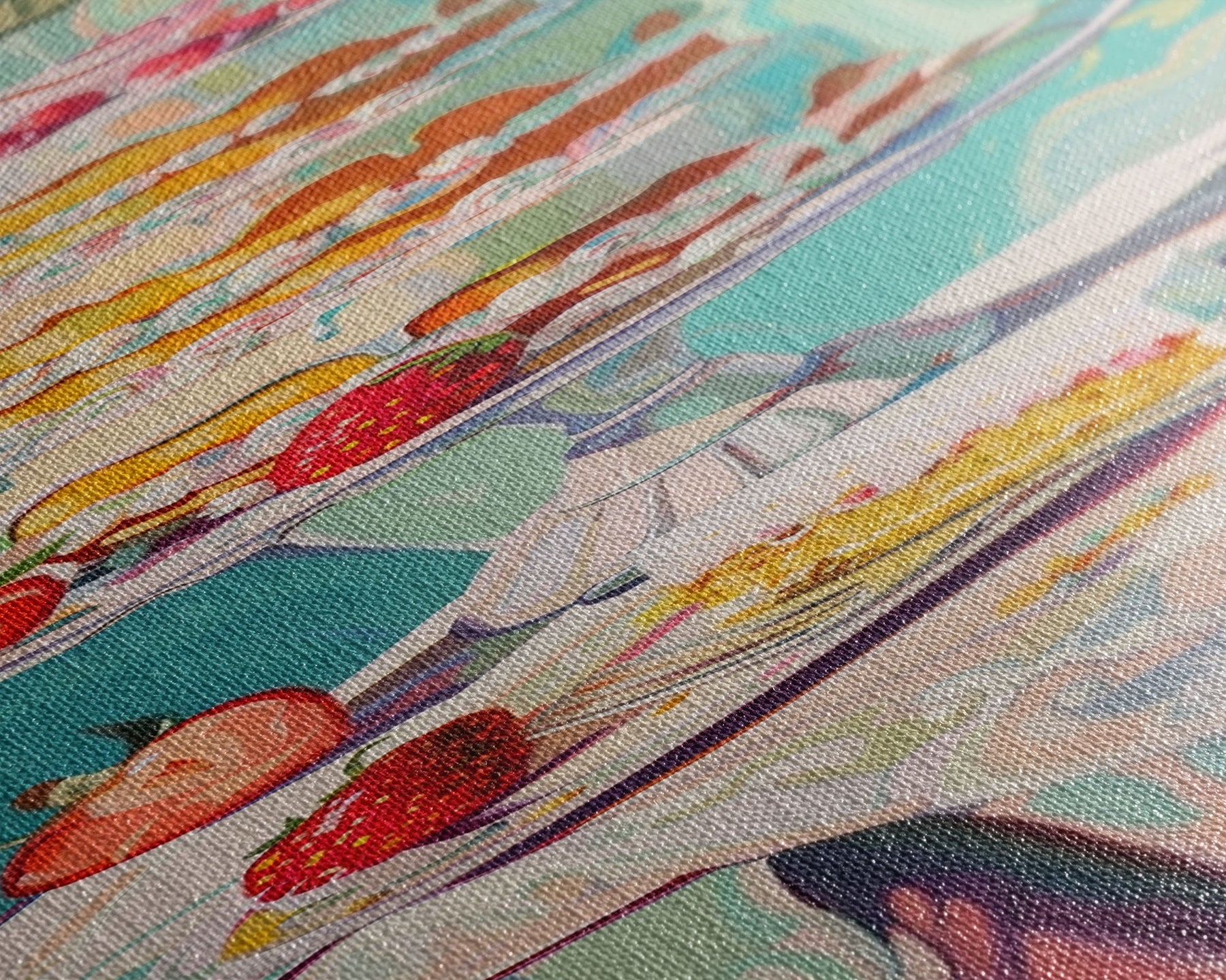 Most of our canvases are made in the USA, with the exception of canvases ordered with the light oak unstained frames, and any large canvases (24x48, 30x60, 16x48 and 20x60) ordered WITH a frame. These are temporarily made in and shipped from Europe, while we try to find a more consistent supplier in the USA.