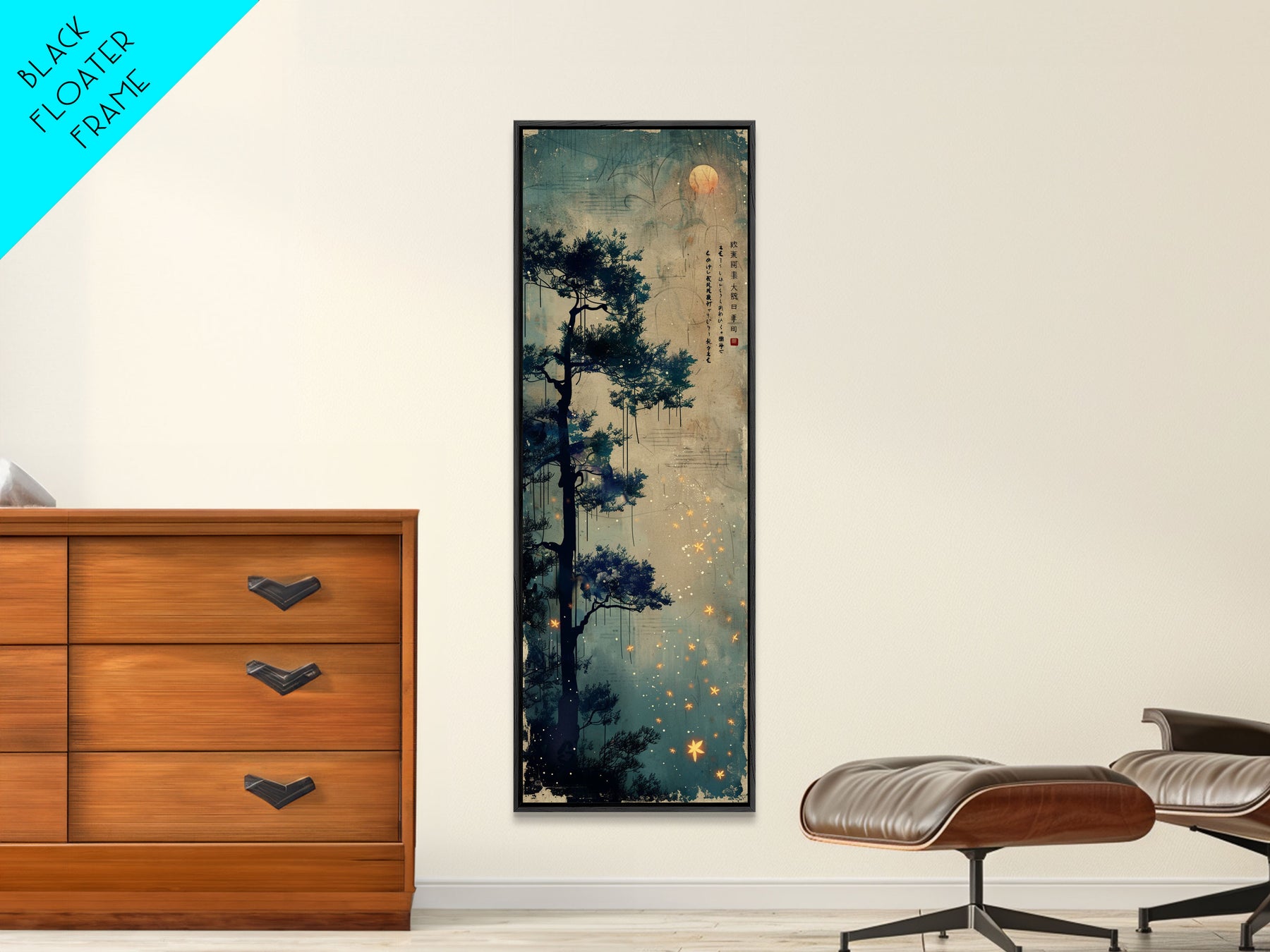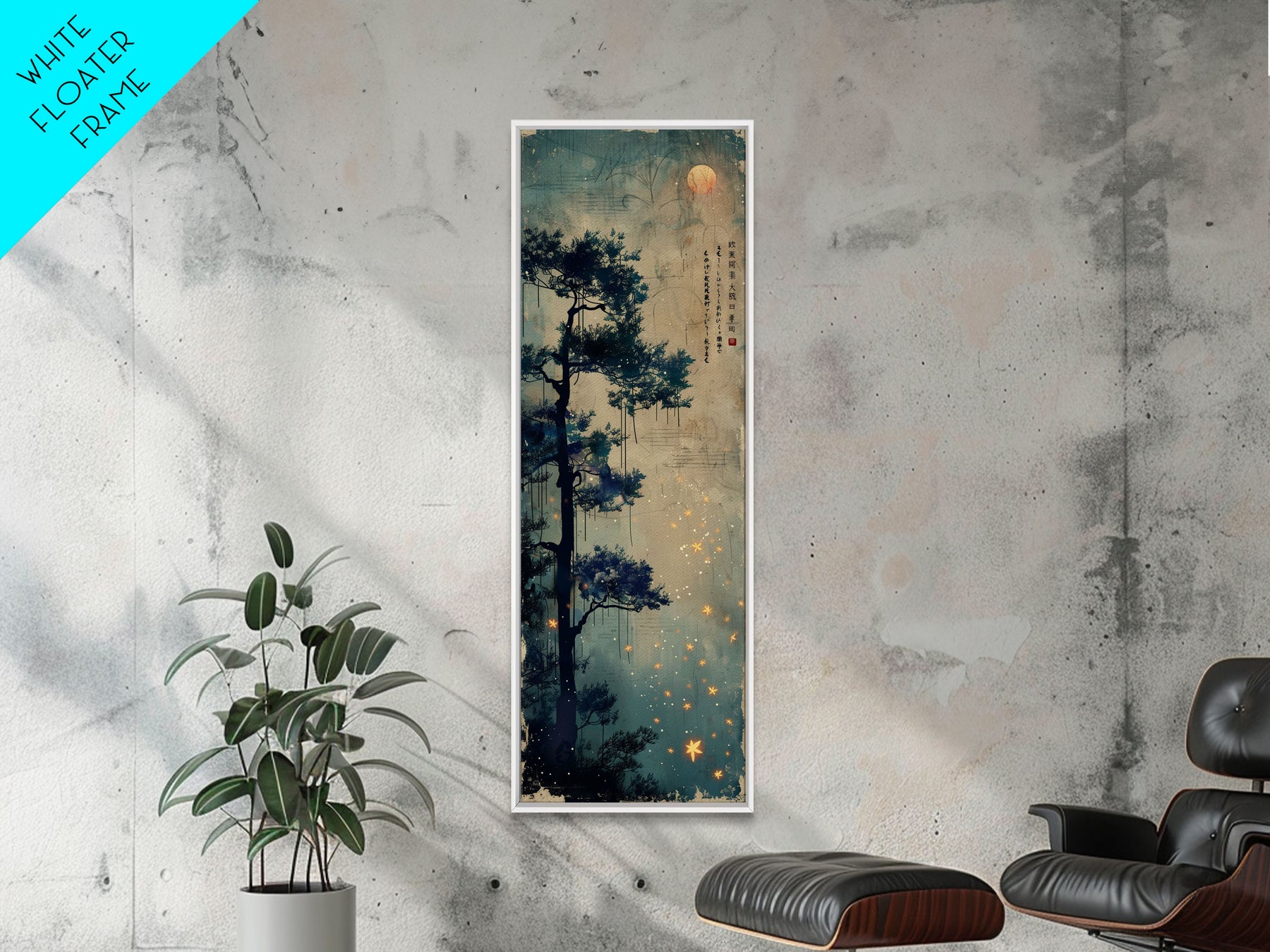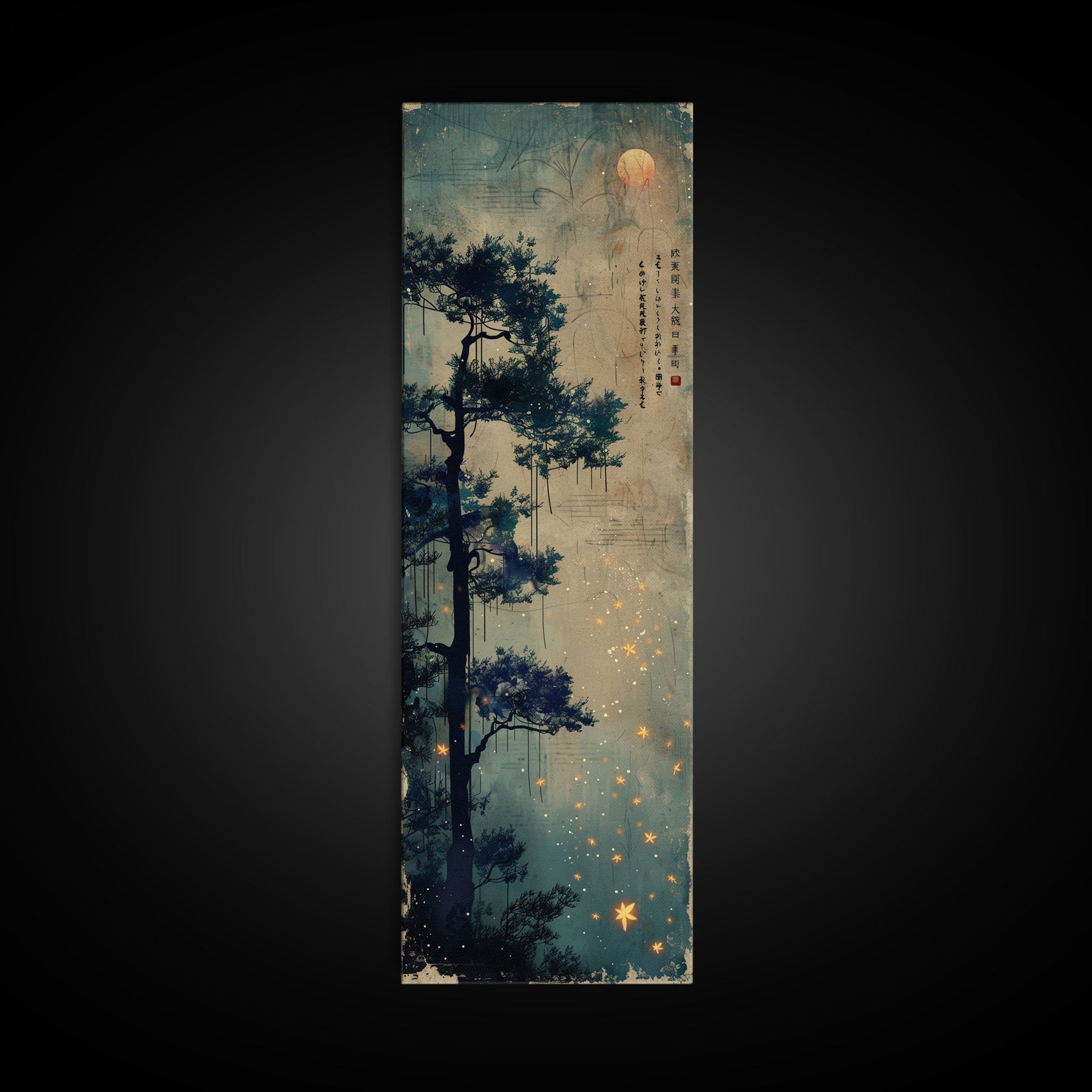 Pine Tree, Moonlit Sky, Japanese Art, Skinny Art, Tall Art, Framed Canvas Print, Ukiyo-e Style
