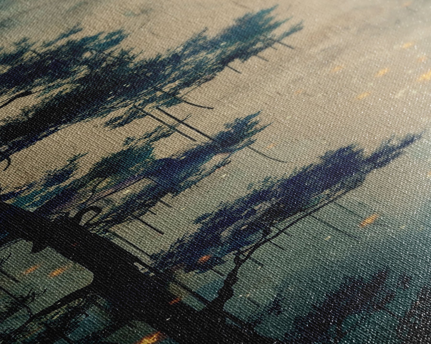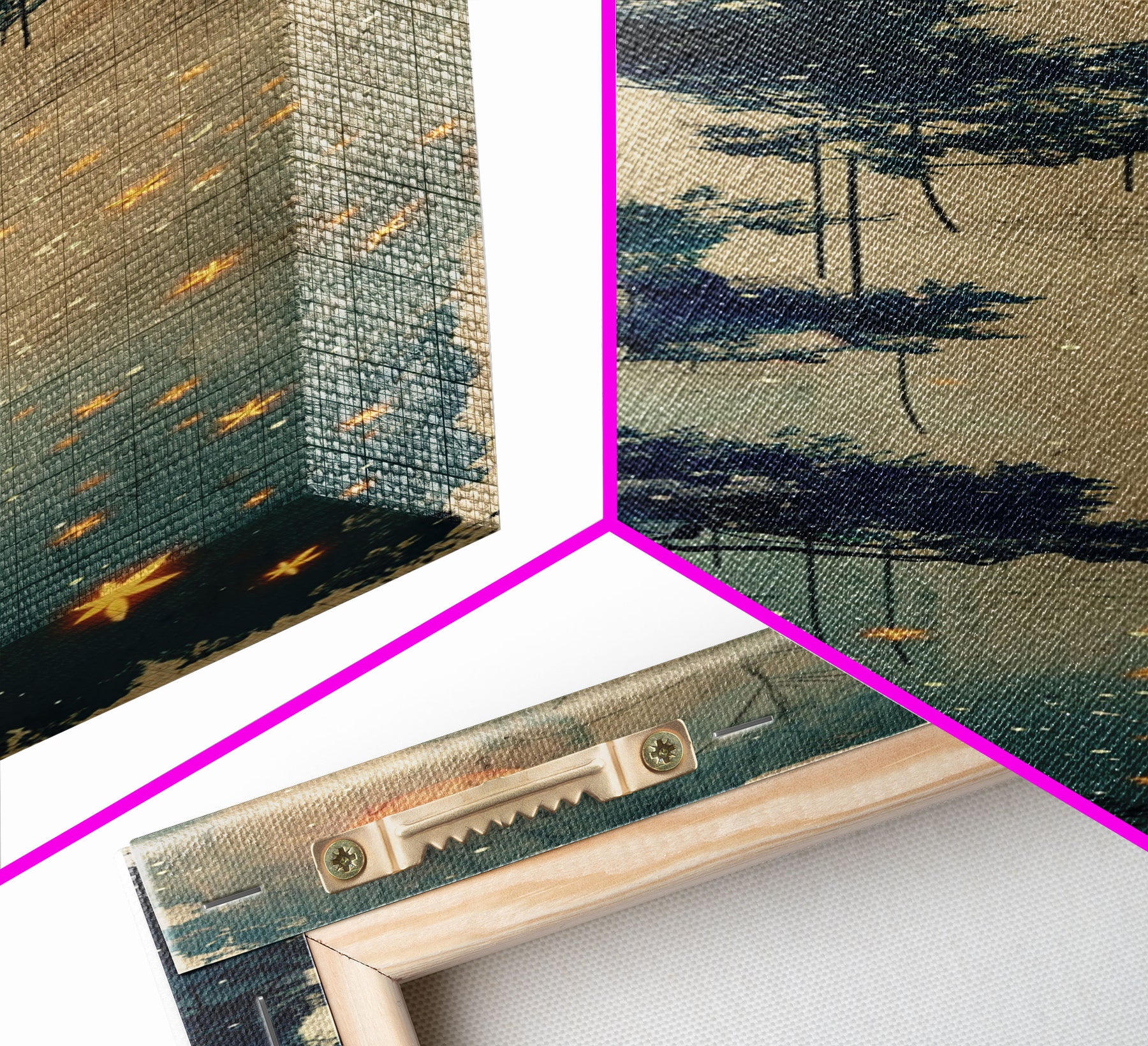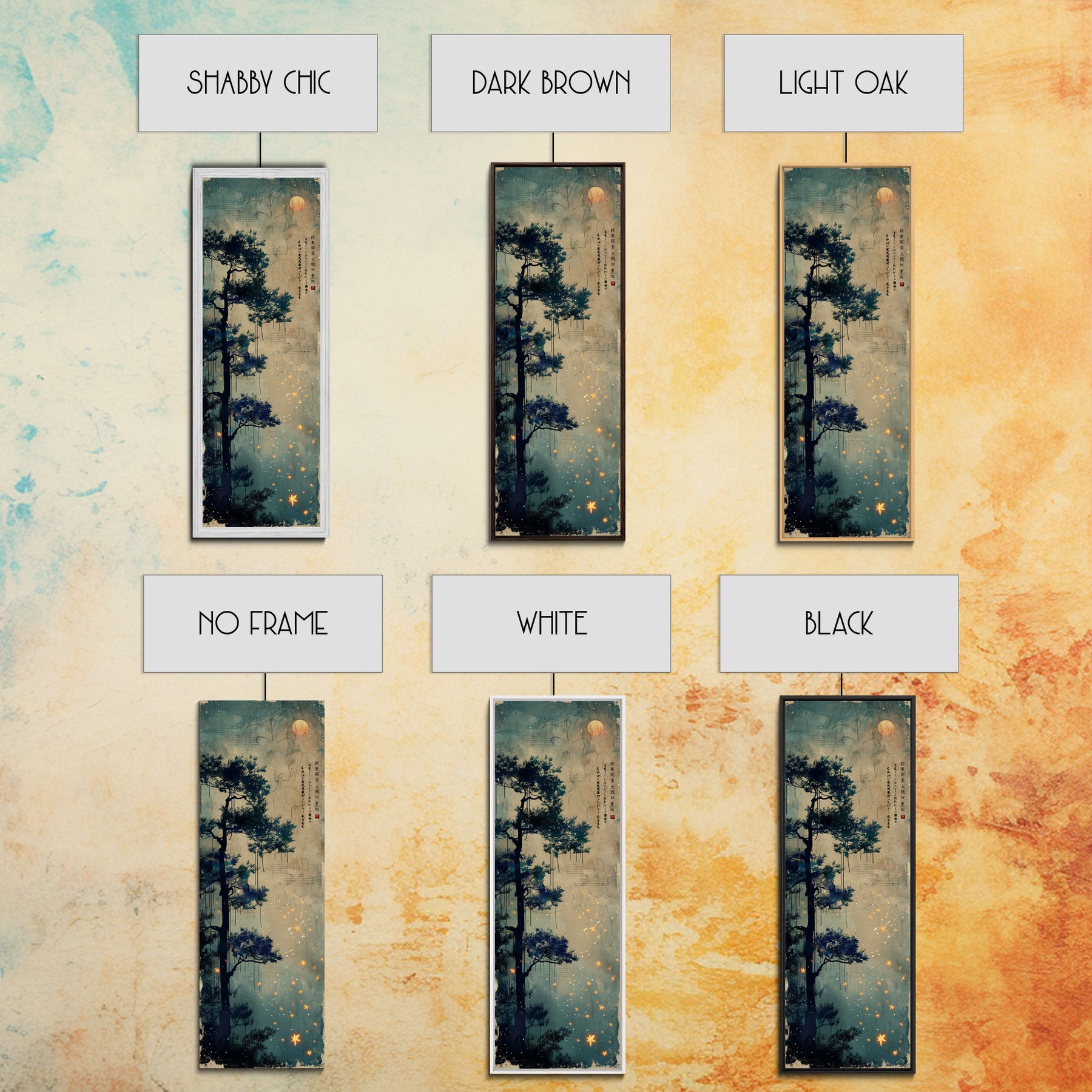 Pine Tree, Moonlit Sky, Japanese Art, Skinny Art, Tall Art, Framed Canvas Print, Ukiyo-e Style
