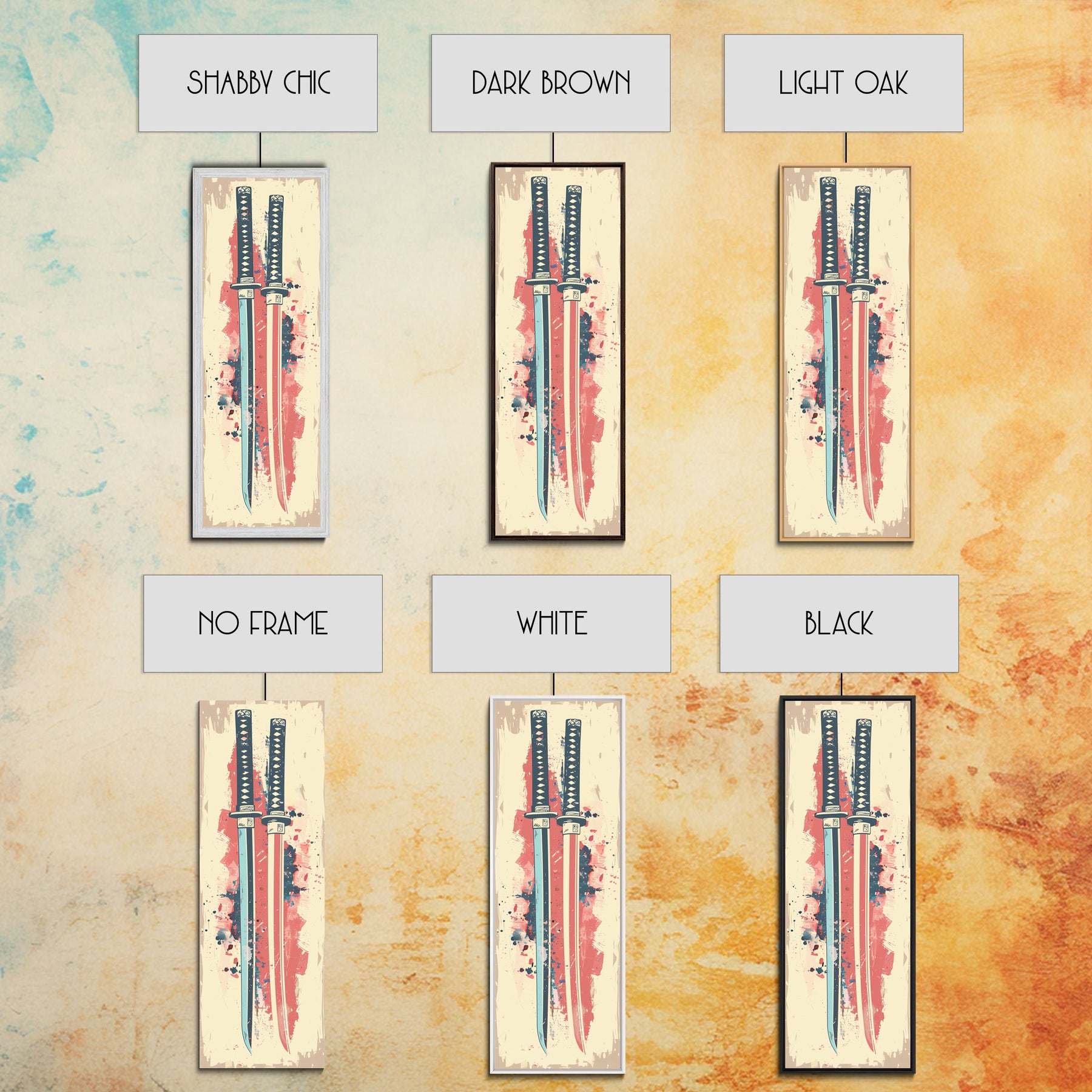 Abstract Samurai Swords Framed Canvas Print Ukiyo-e Art Japanese Style Tall Art Skinny Art Wood Block Print