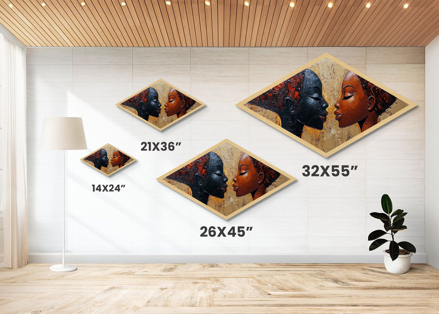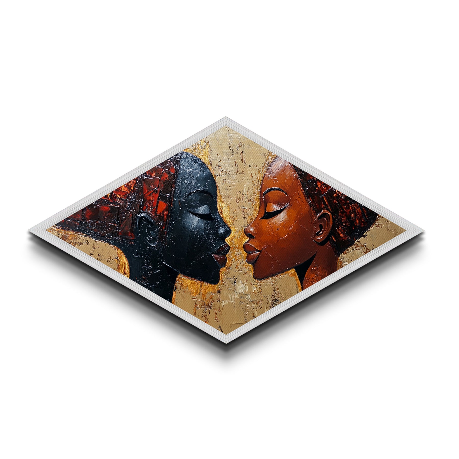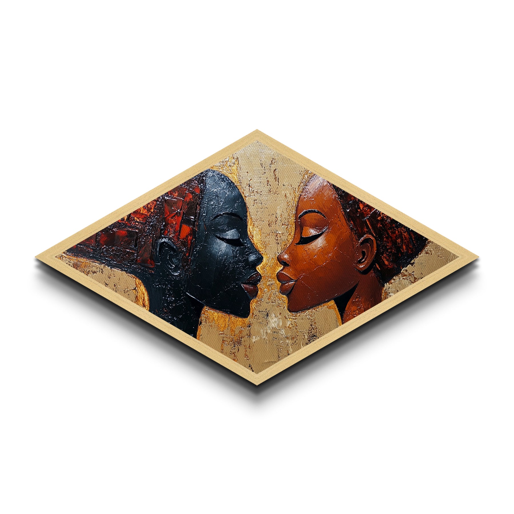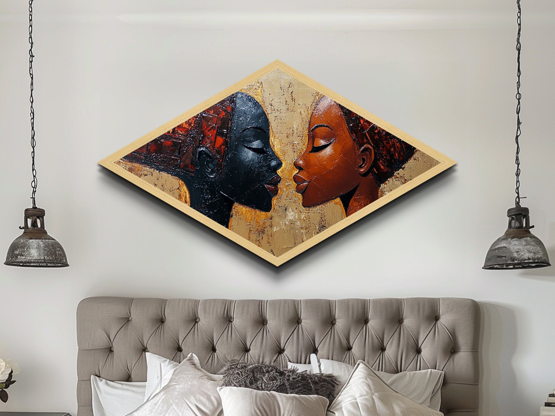 Radiant Unity - Diamond Shaped Canvas Embossed Print Modern Afrocentric Art Bedroom Wall Decor Couple Gift Bold Abstract Expression
