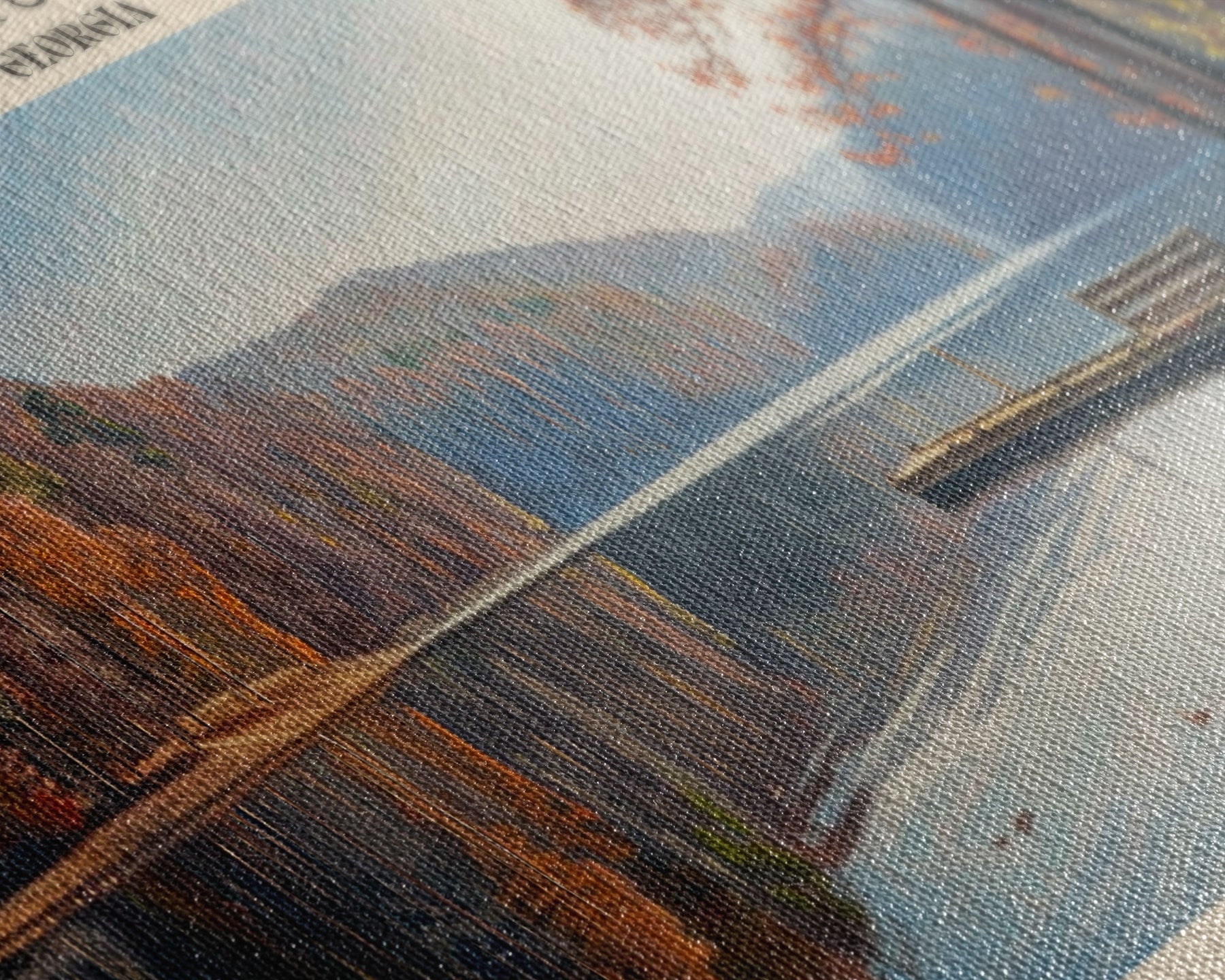 Most of our canvases are made in the USA, with the exception of canvases ordered with the light oak unstained frames, and any large canvases (24x48, 30x60, 16x48 and 20x60) ordered WITH a frame. These are temporarily made in and shipped from Europe, while we try to find a more consistent supplier in the USA.