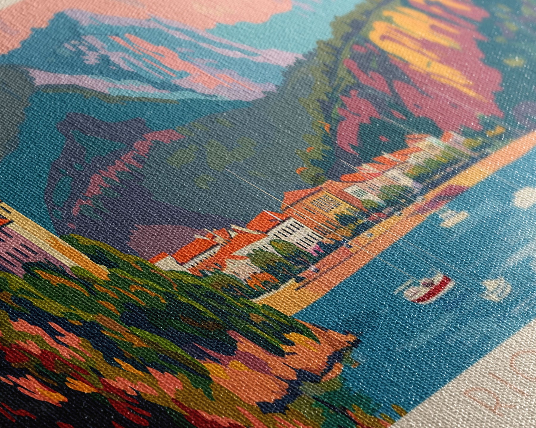 Most of our canvases are made in the USA, with the exception of canvases ordered with the light oak unstained frames, and any large canvases (24x48, 30x60, 16x48 and 20x60) ordered WITH a frame. These are temporarily made in and shipped from Europe, while we try to find a more consistent supplier in the USA.