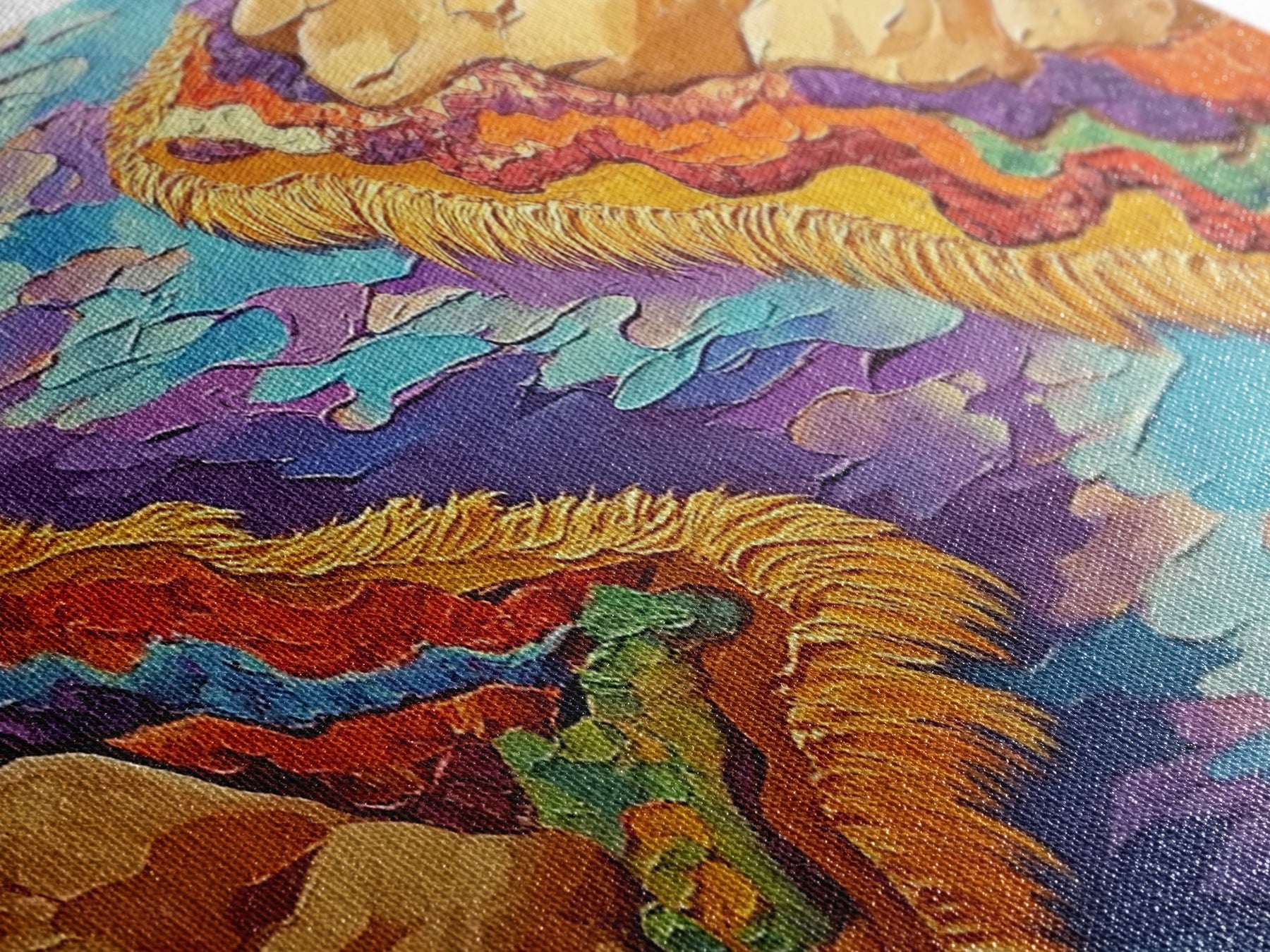 Hello and thank you for taking the time to view our modern high quality giclée artwork! We offer both posters and stretched canvas prints. Our posters are printed on Ultra Matte 60 lb / 230 GSM high quality photo paper, with a thickness of 10 mil. Our canvases are printed on museum grade 350 GSM canvas material with ECO friendly archival grade ink, then hand stretched and stapled over premium, FSC certified and shrink resistant frames. Designed and built to last a lifetime.