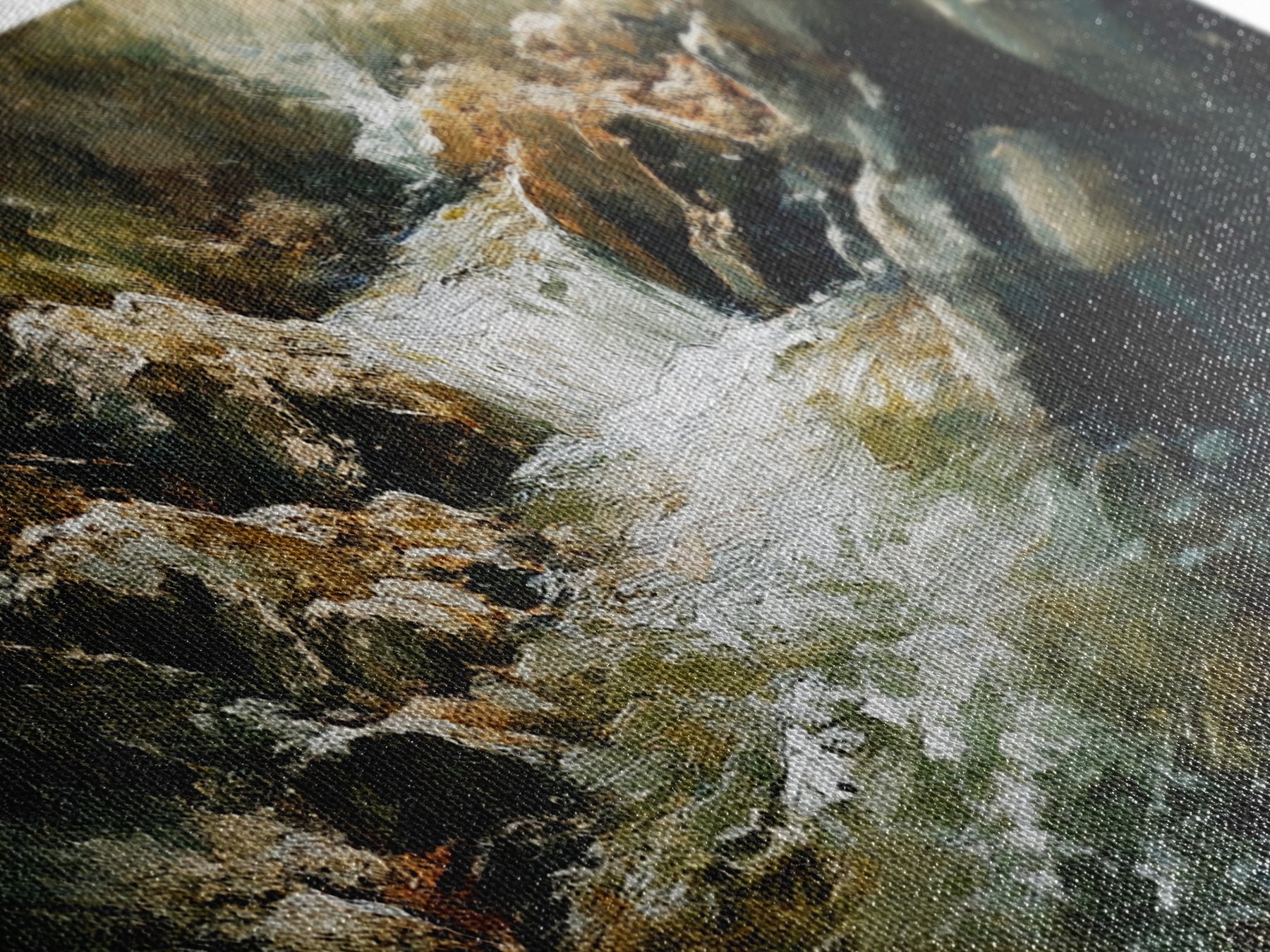 Most of our canvases are made in the USA, with the exception of canvases ordered with the light oak unstained frames, and any large canvases (24x48, 30x60, 16x48 and 20x60) ordered WITH a frame. These are temporarily made in and shipped from Europe, while we try to find a more consistent supplier in the USA.
