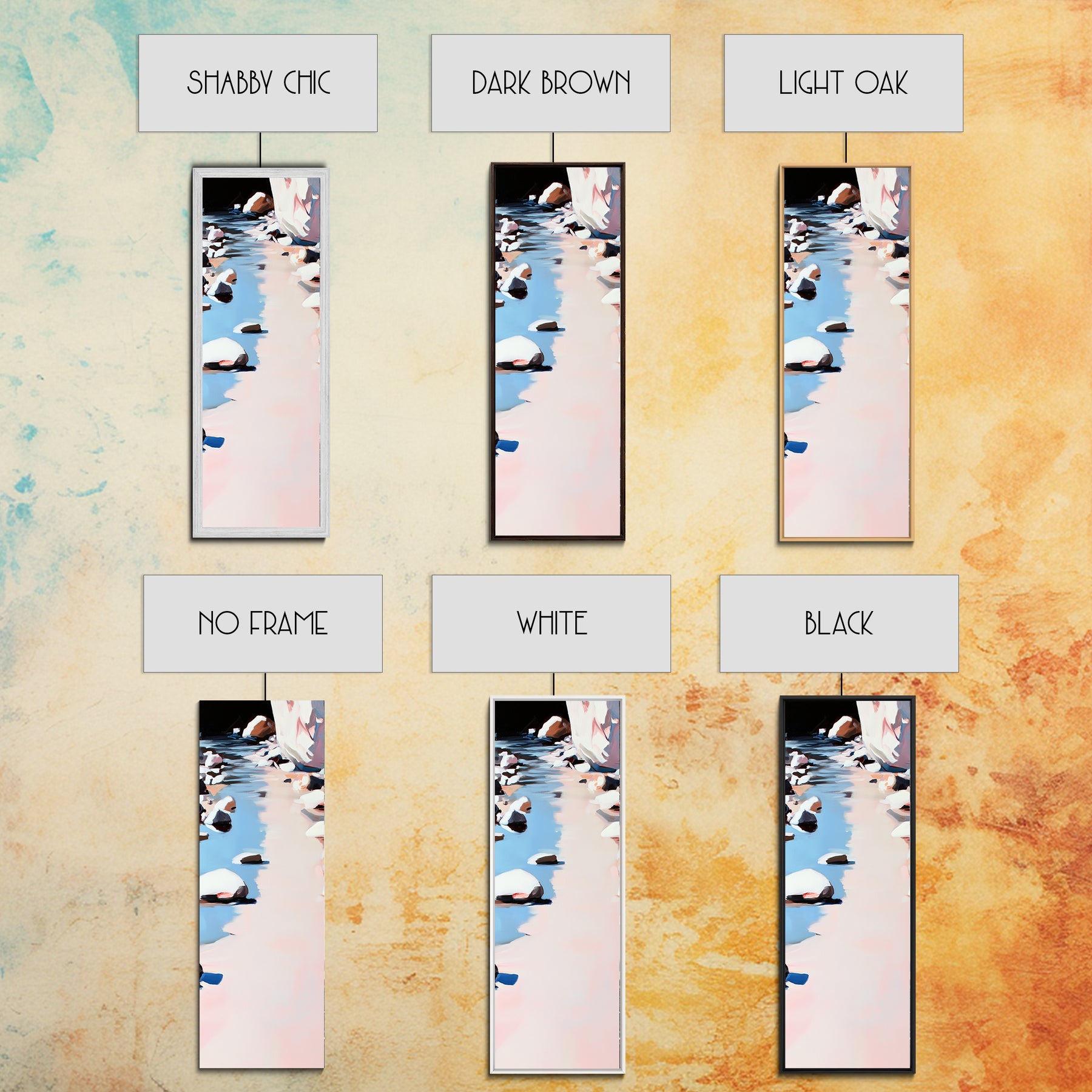 *Optional frames add a total of 1.5 inches to each dimension, for example a 10x20 canvas with a frame will be 11.5 by 21.5 inches total. All framed canvas are 1.5" total depth.