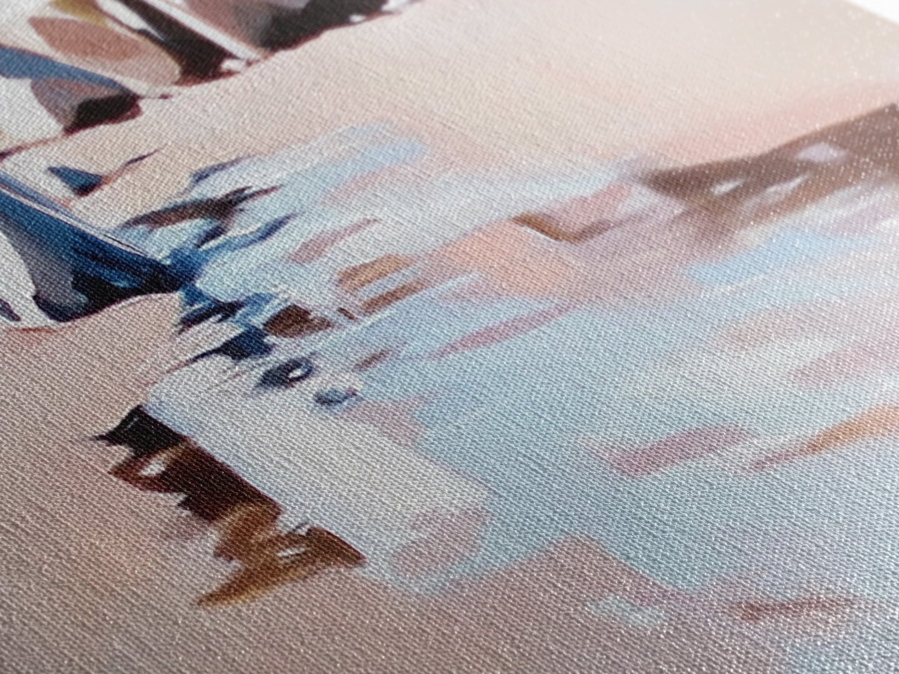 Most of our canvases are made in the USA, with the exception of canvases ordered with the light oak unstained frames, and any large canvases (24x48, 30x60, 16x48 and 20x60) ordered WITH a frame. These are temporarily made in and shipped from Europe, while we try to find a more consistent supplier in the USA.