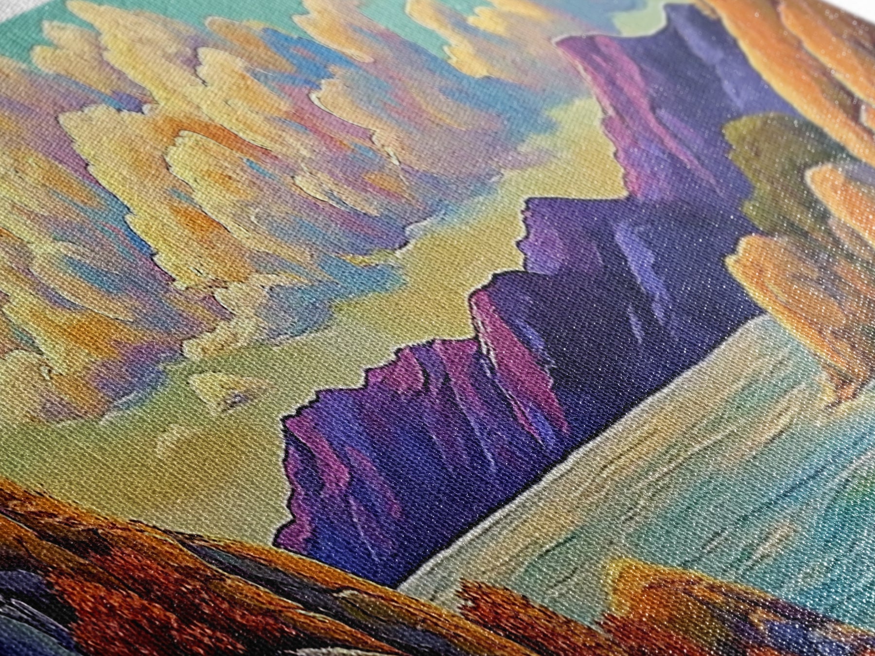 Most of our canvases are made in the USA, with the exception of canvases ordered with the light oak unstained frames, and any large canvases (24x48, 30x60, 16x48 and 20x60) ordered WITH a frame. These are temporarily made in and shipped from Europe, while we try to find a more consistent supplier in the USA.