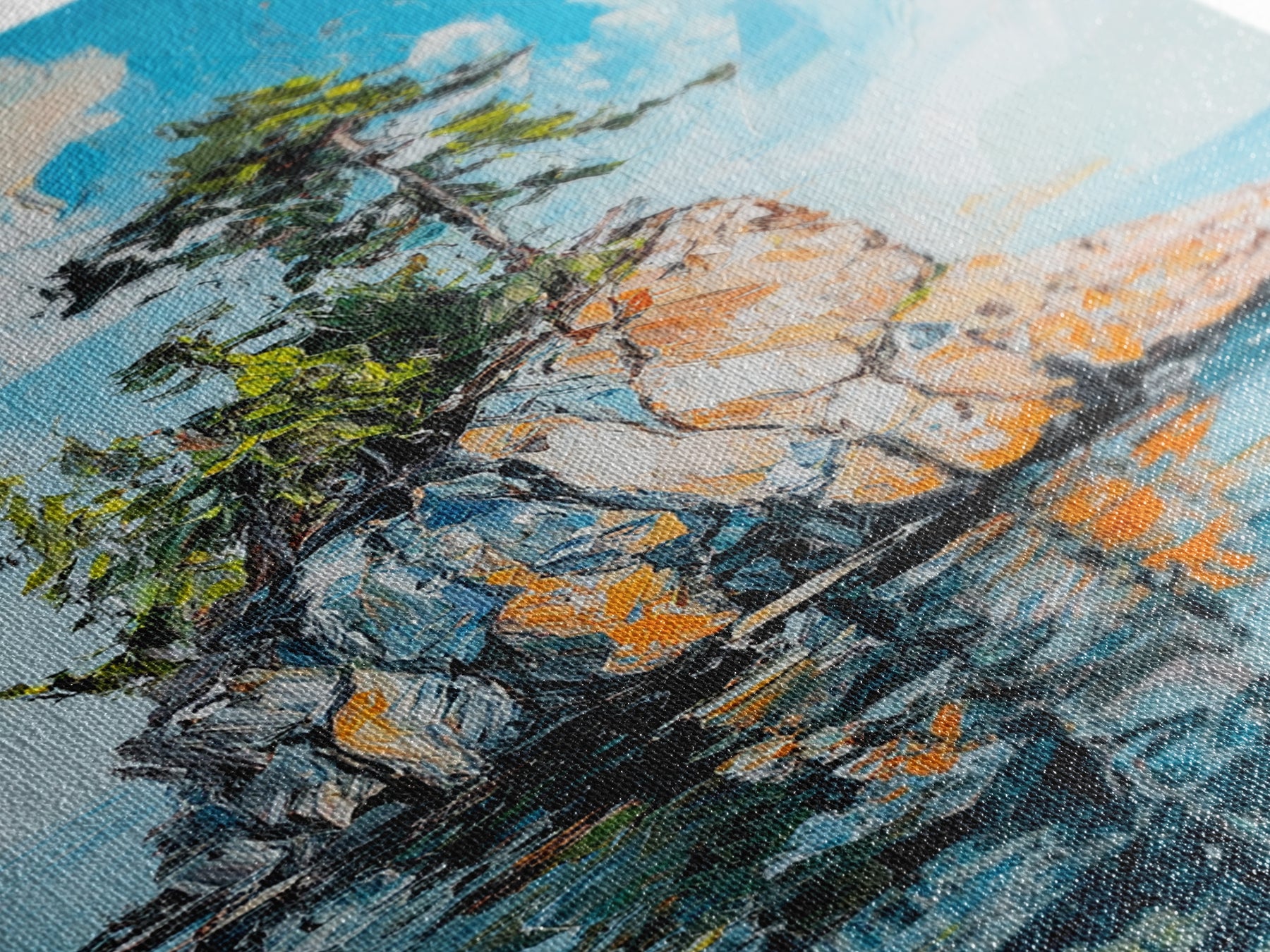 Most of our canvases are made in the USA, with the exception of canvases ordered with the light oak unstained frames, and any large canvases (24x48, 30x60, 16x48 and 20x60) ordered WITH a frame. These are temporarily made in and shipped from Europe, while we try to find a more consistent supplier in the USA.