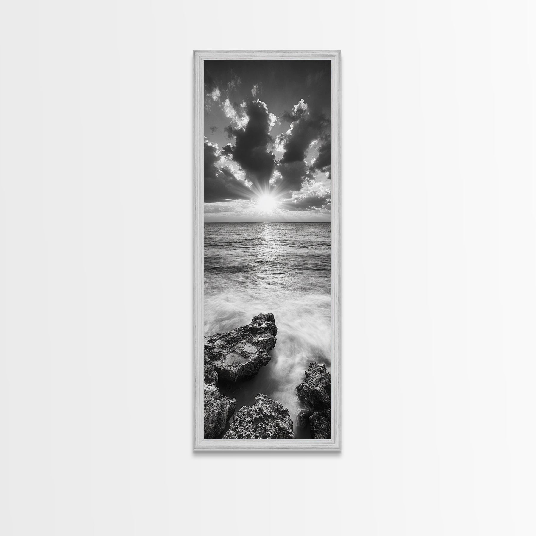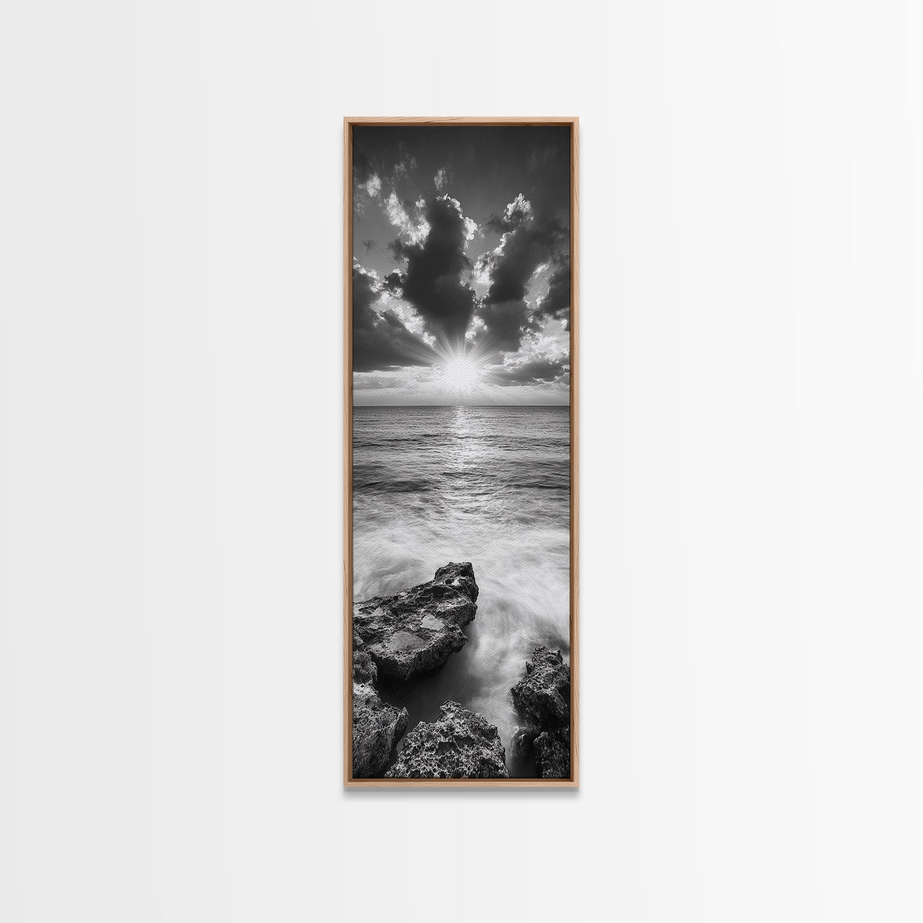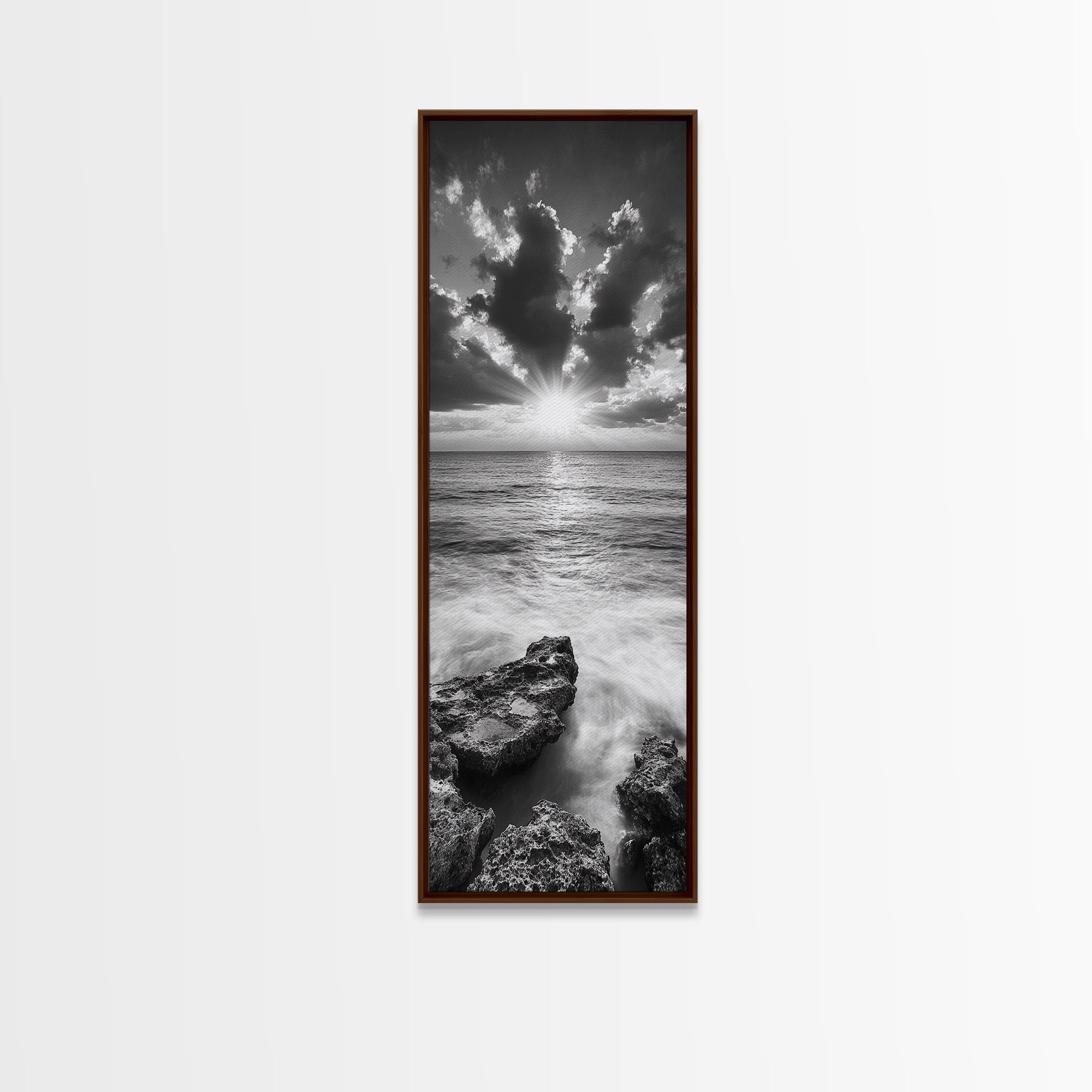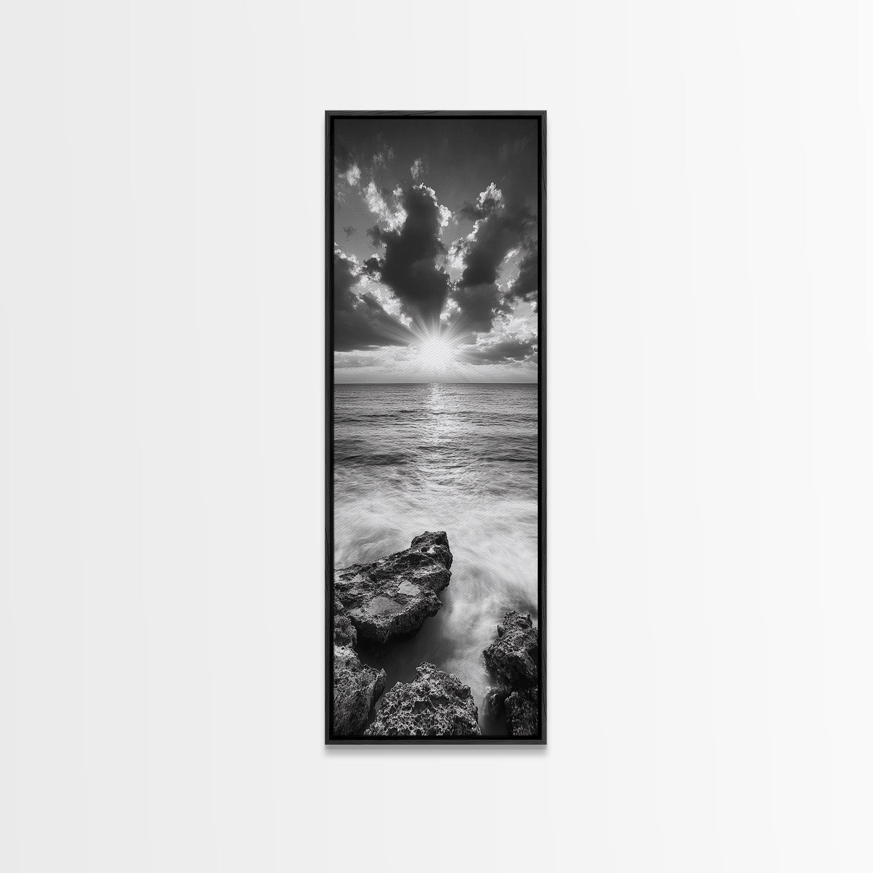 Rocky Sea, Glowing Horizon, Soft Waves, Twilight Sky, Canvas Print, Coastal Art, Living Room Wall Art, Seaside Modern Decor