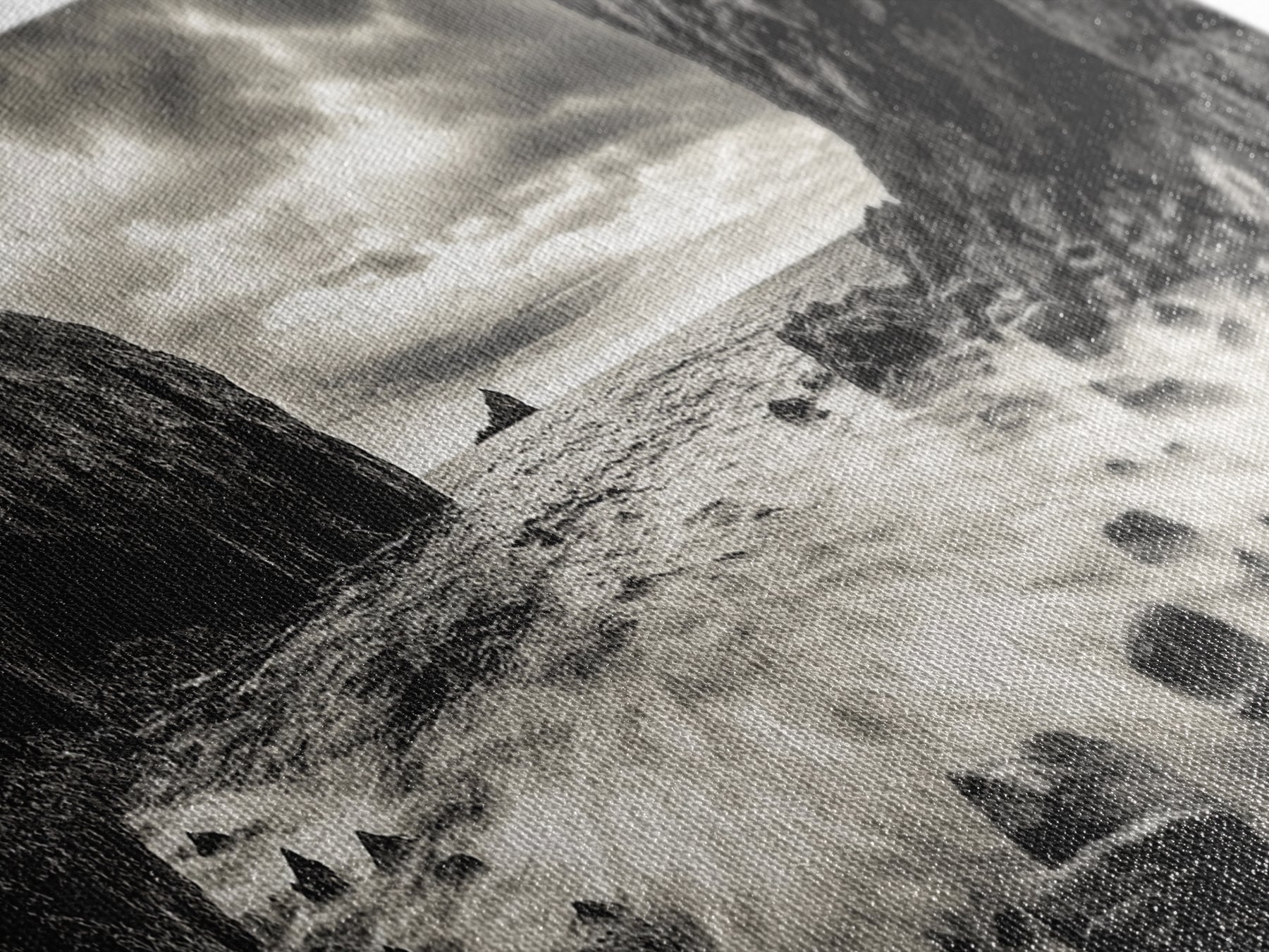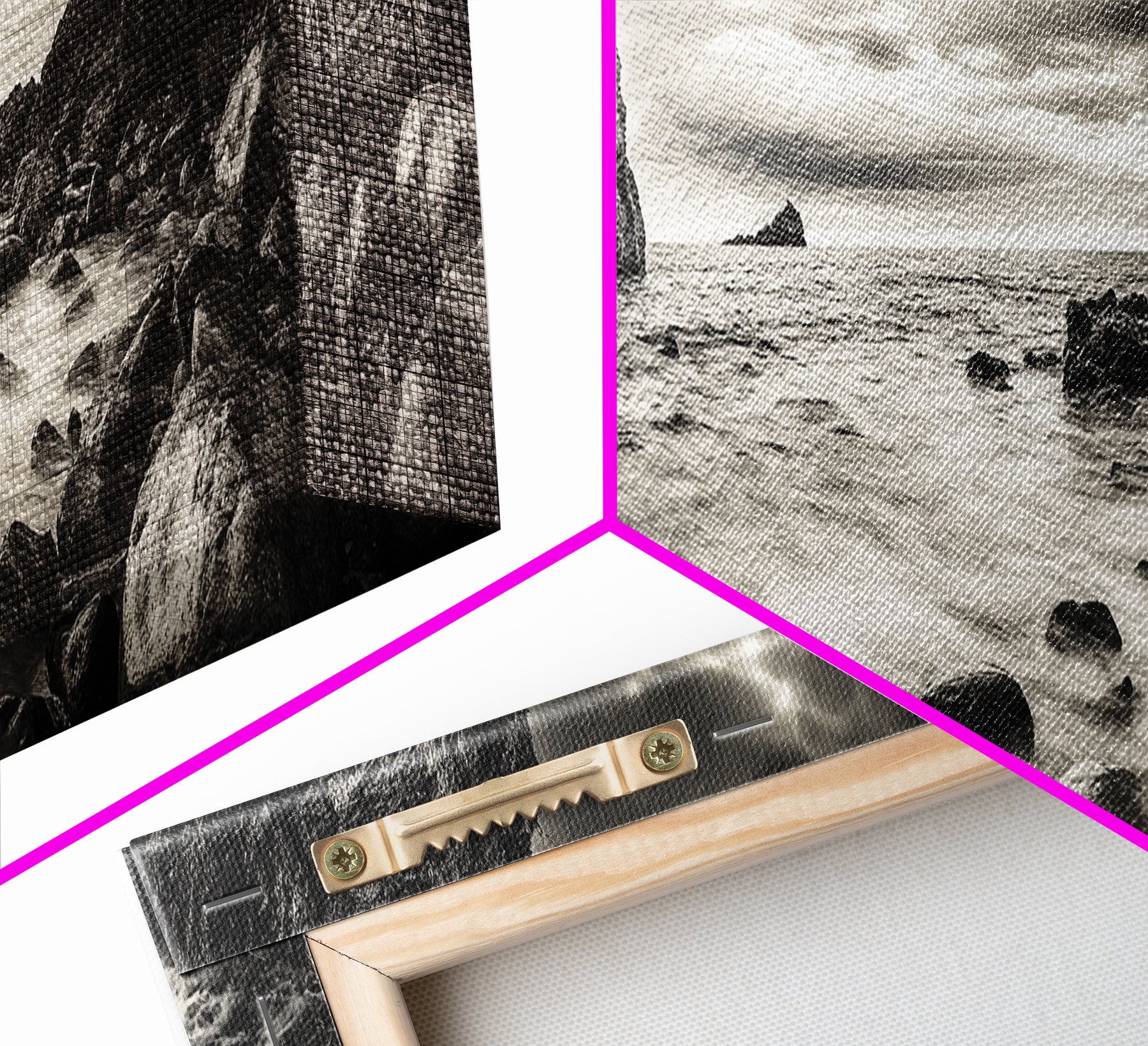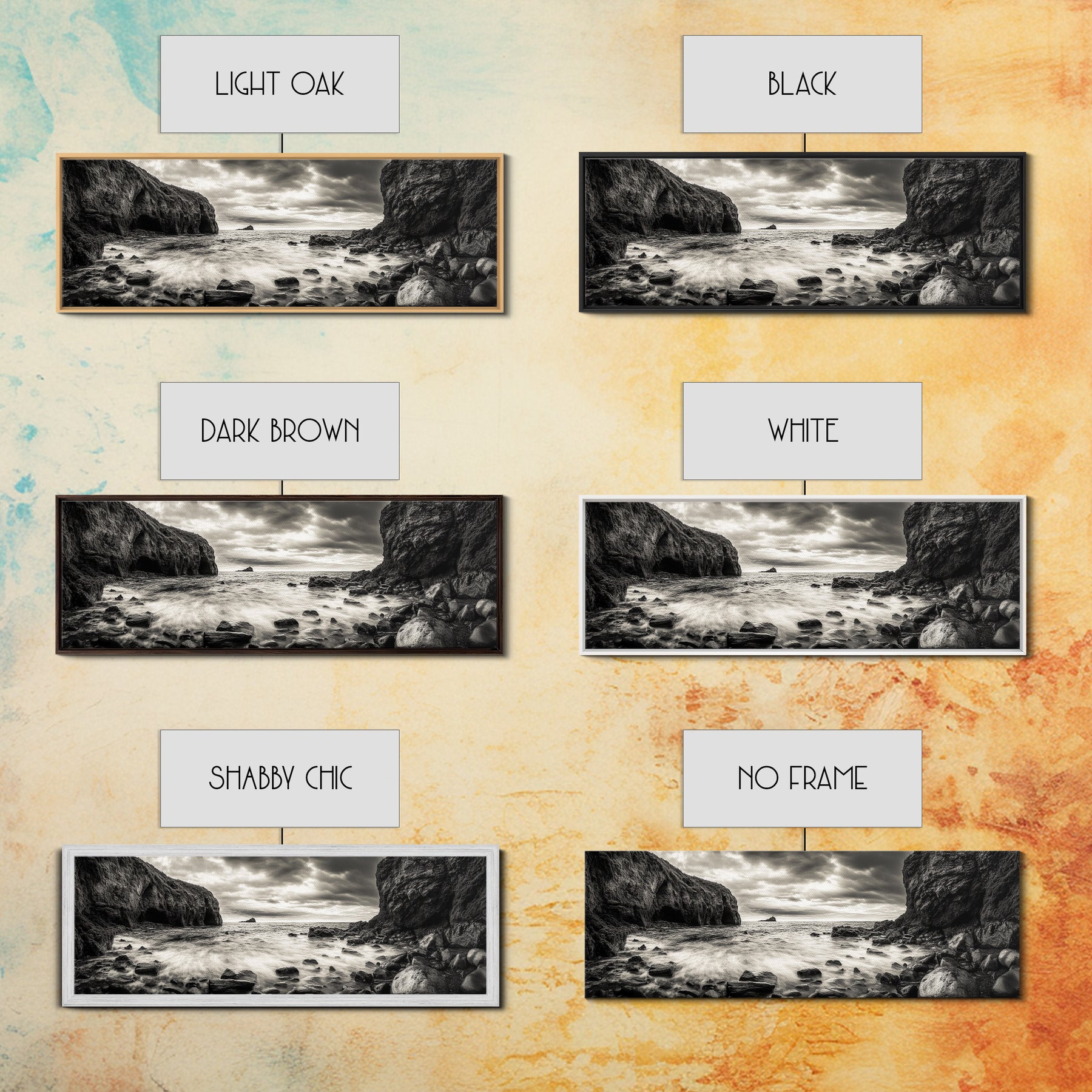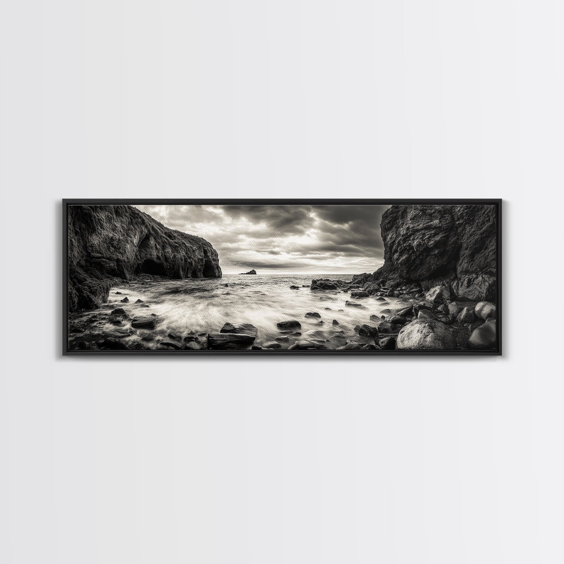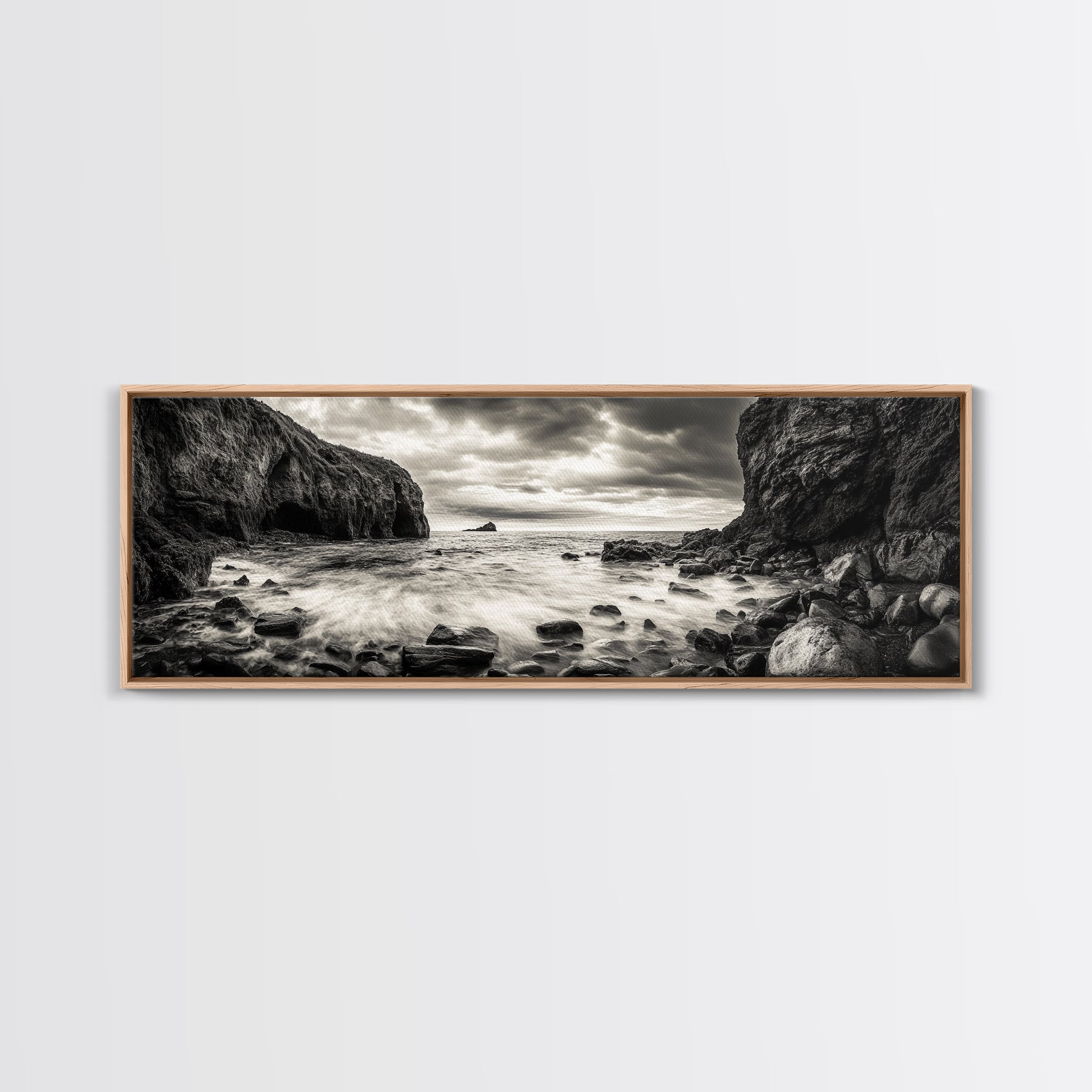 Rocky Shore Escape, Ocean Cliffside, Wild Coast, Moody Sky, Framed Canvas Print, Modern Bathroom Art, Nature Lover Decor