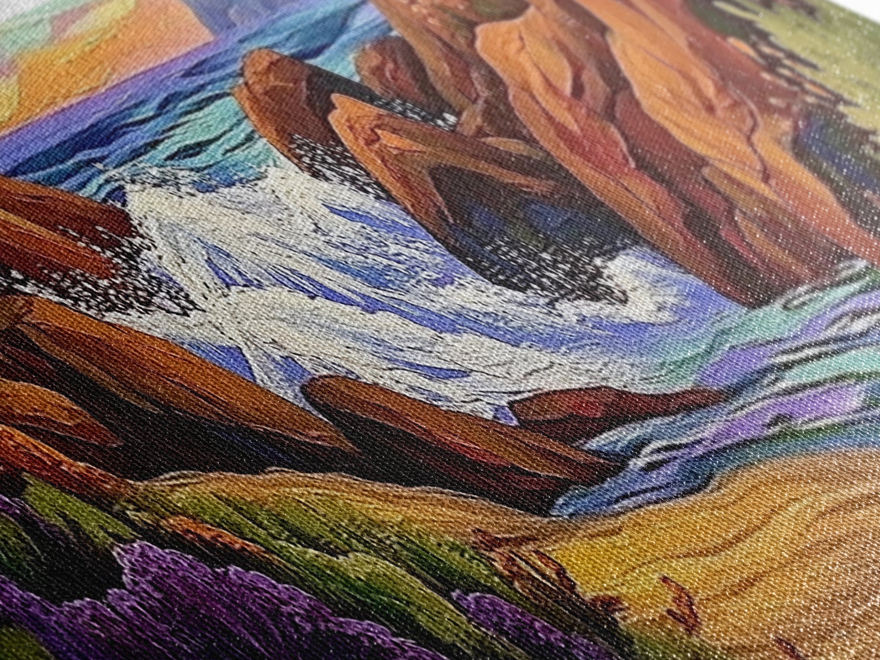 Most of our canvases are made in the USA, with the exception of canvases ordered with the light oak unstained frames, and any large canvases (24x48, 30x60, 16x48 and 20x60) ordered WITH a frame. These are temporarily made in and shipped from Europe, while we try to find a more consistent supplier in the USA.
