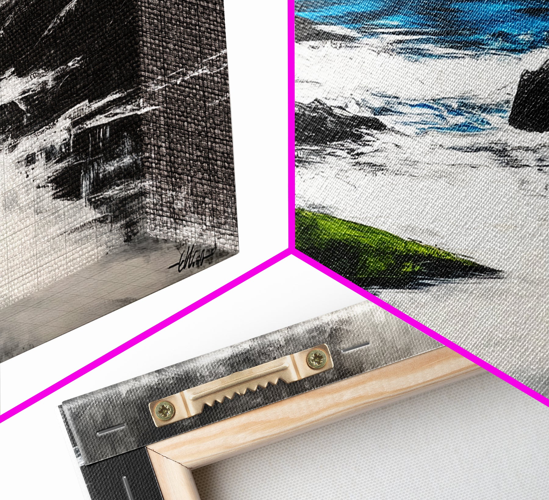 Hello and thank you for taking the time to view our modern high quality giclée artwork! We offer both posters and stretched canvas prints. Our posters are printed on Ultra Matte 60 lb / 230 GSM high quality photo paper, with a thickness of 10 mil. Our canvases are printed on museum grade 350 GSM canvas material with ECO friendly archival grade ink, then hand stretched and stapled over premium, FSC certified and shrink resistant frames. Designed and built to last a lifetime.
