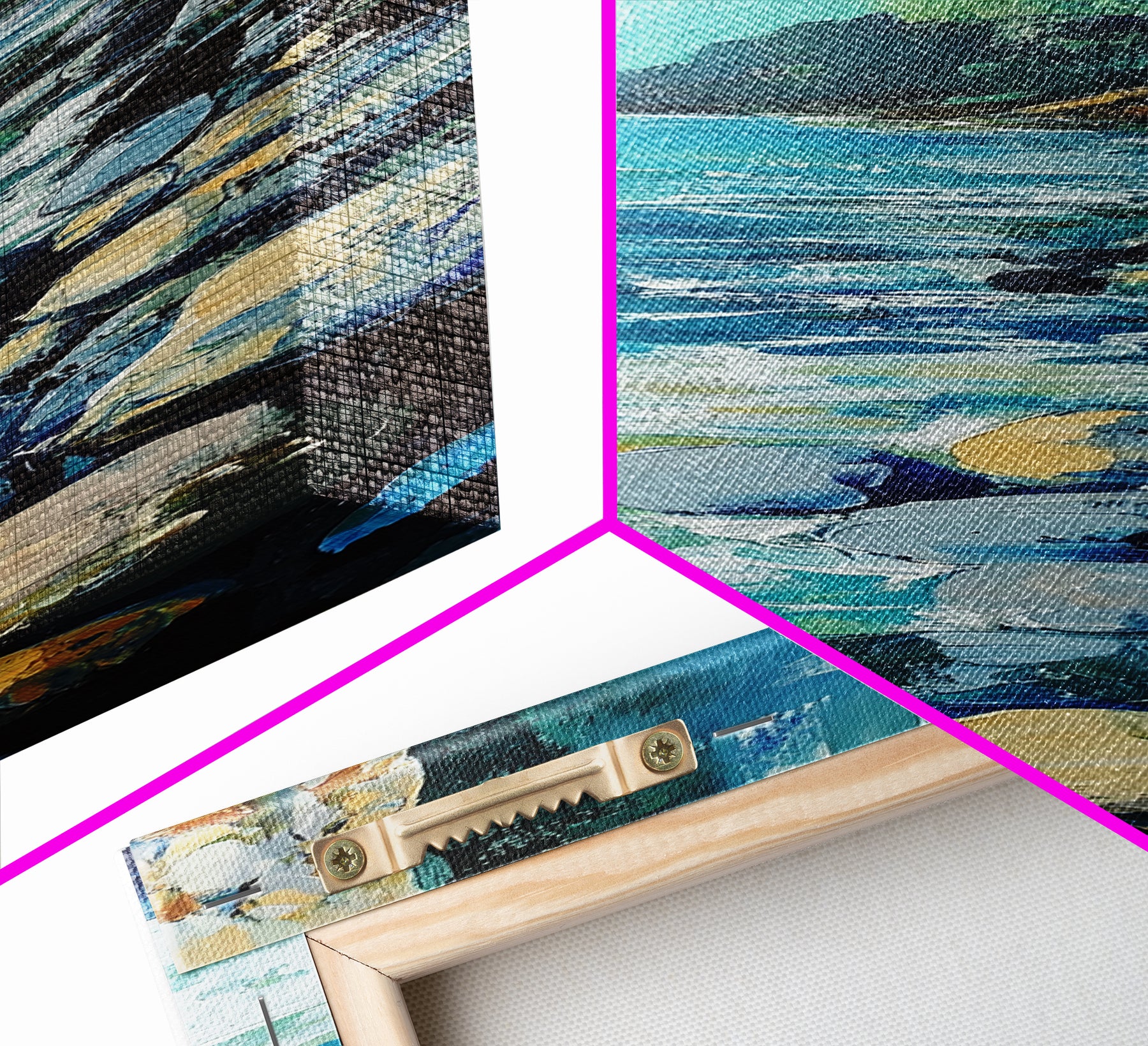 *SHIPPING: Every canvas is carefully wrapped in bubble wrap and foam corner protectors, and shipped fully assembled and ready to hang with sawtooth hangers in a flat box. All you need is a hammer!