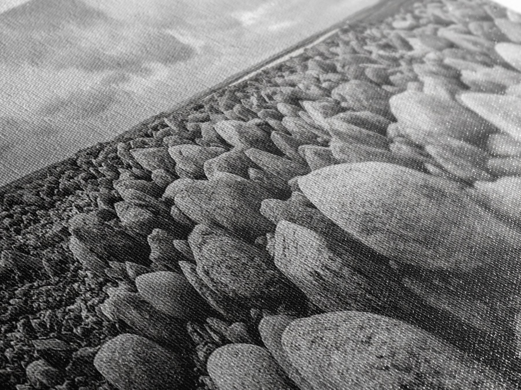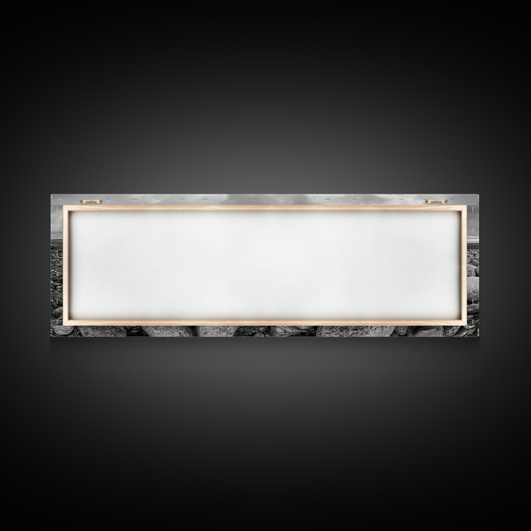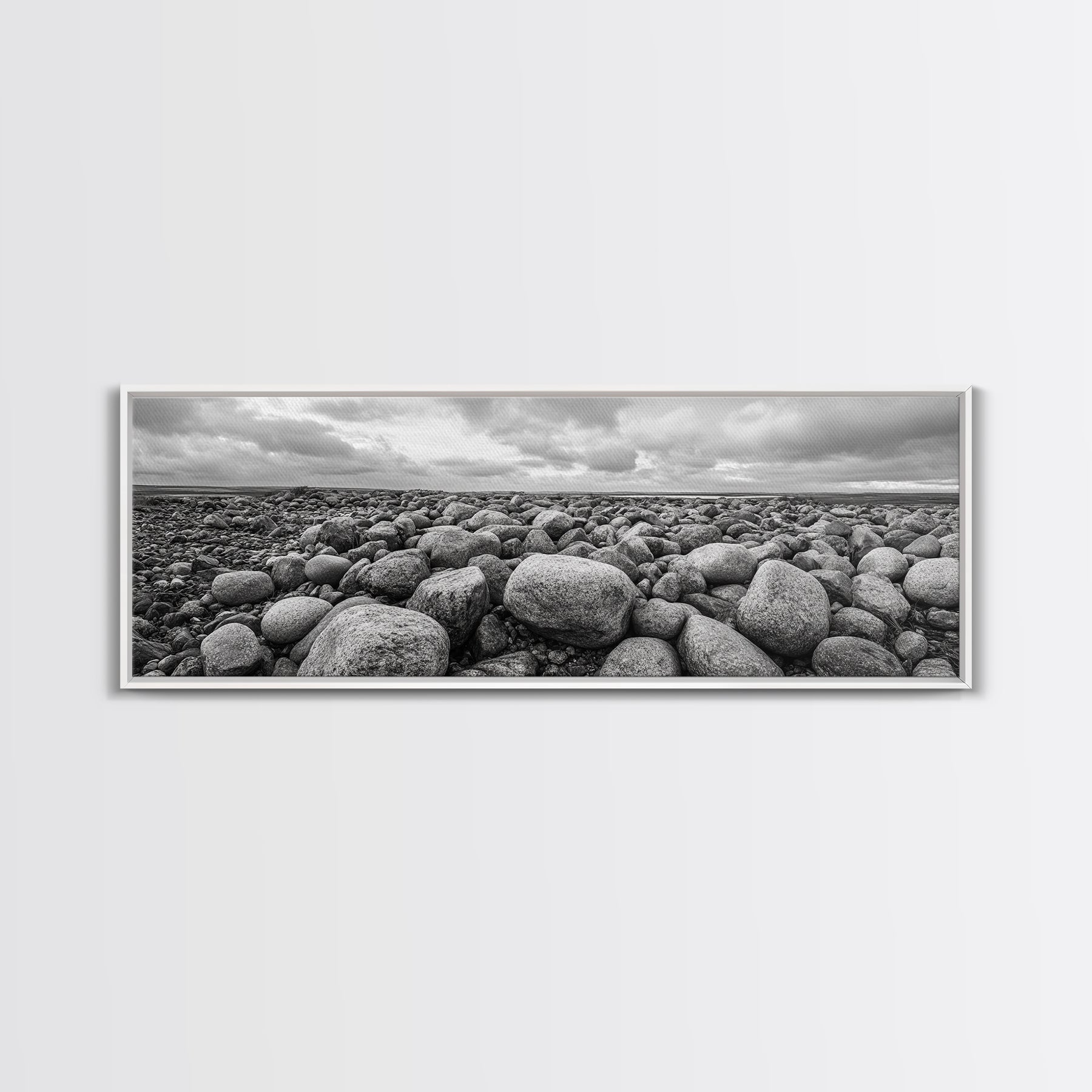 Rocky terrain, minimalist art, wabi sabi art, panoramic art, extra wide art, landscape painting, framed canvas print, moody art, rustic decor