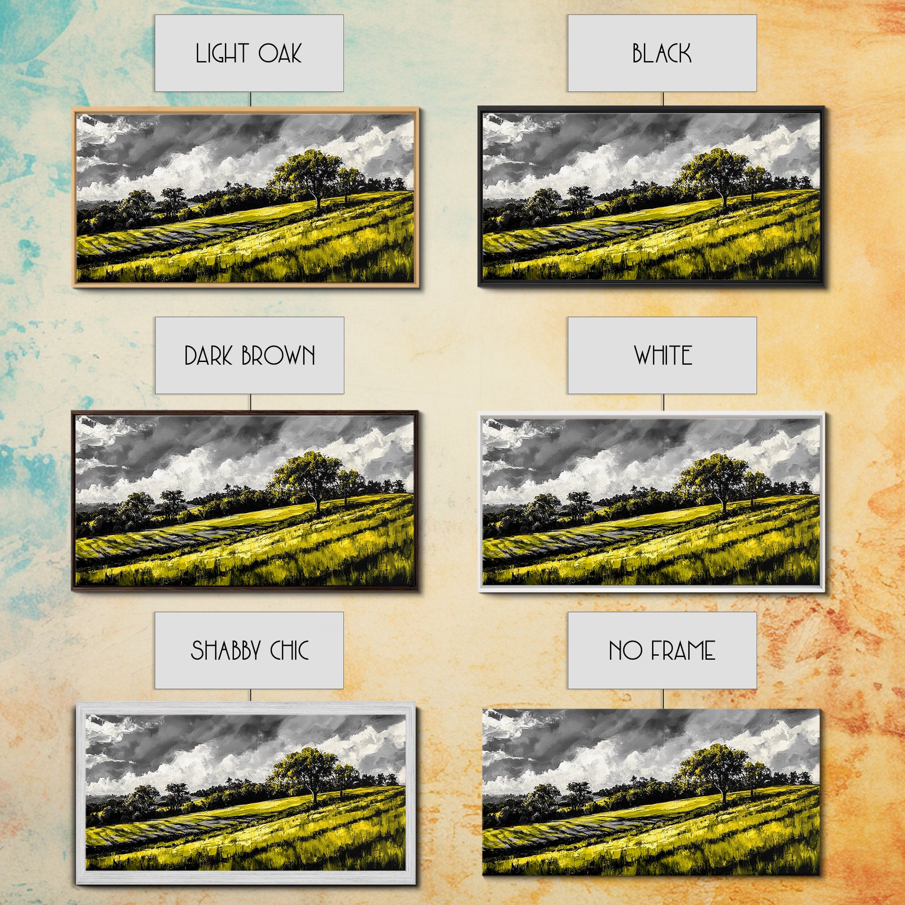 Rolling Hills Landscape, Peaceful Countryside Art, Green Field Painting, Rustic Home Decor, Framed Canvas Print, Serene Wall Accent