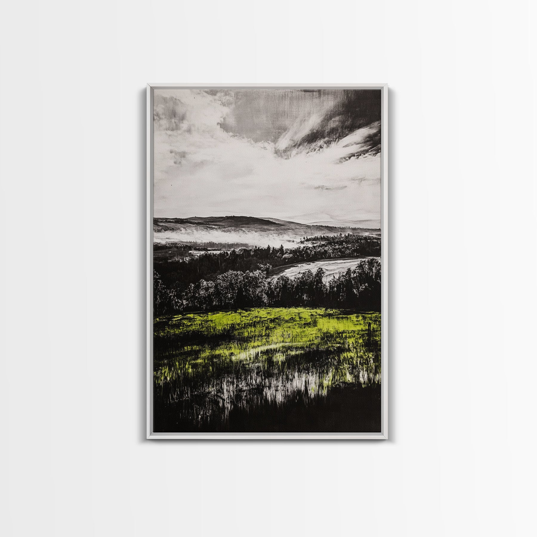 Rolling Hills, Nature Landscape, Canvas Print, Black White Green Art, Farmhouse Decor, Rustic Wall Art, Bedroom Decor, Fall Home Art
