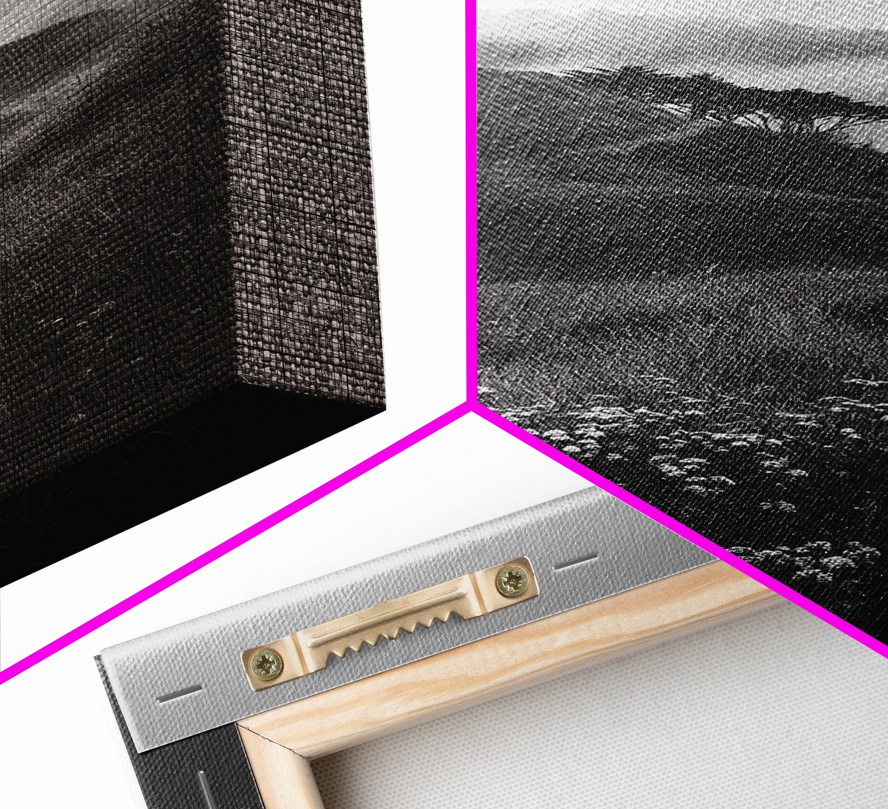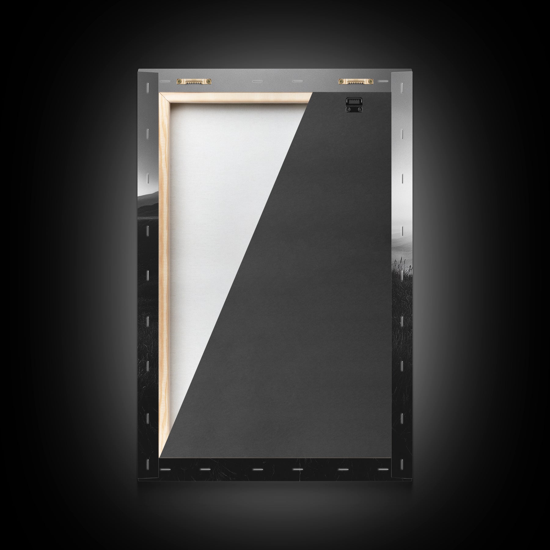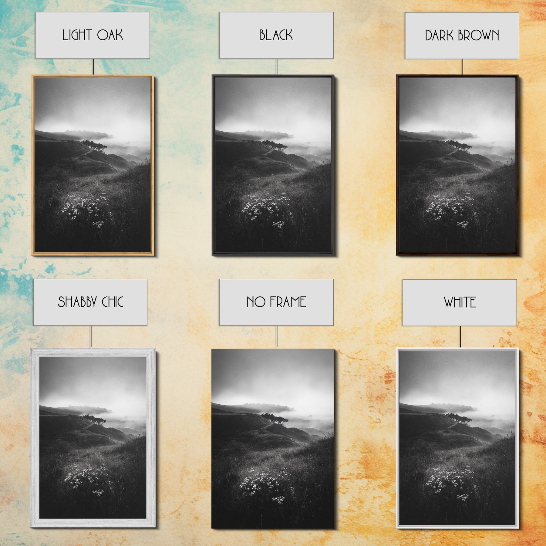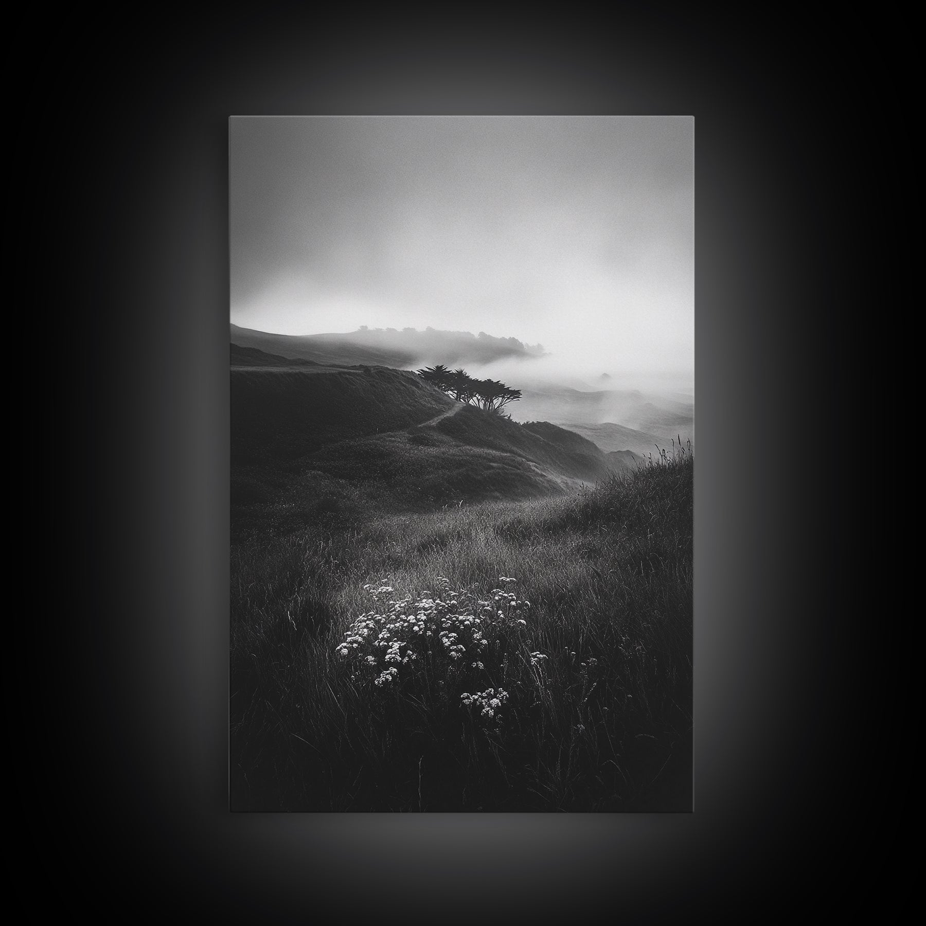 Rolling Mist Hills, Dreamy Countryside, Framed Canvas Print, Black and White Wall Art, Bedroom Calm Decor, Nature Landscape